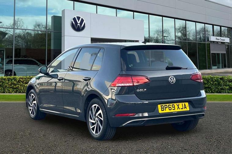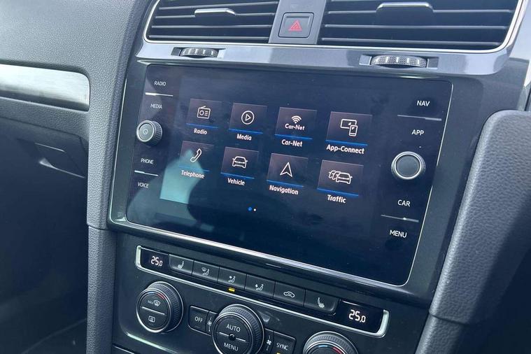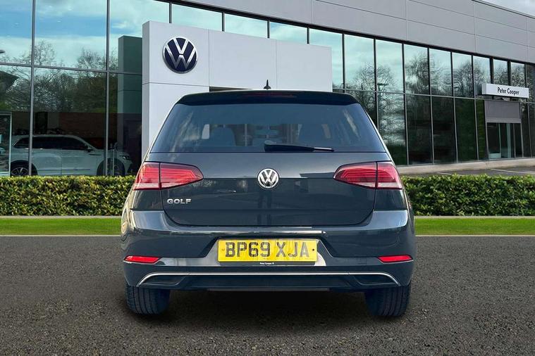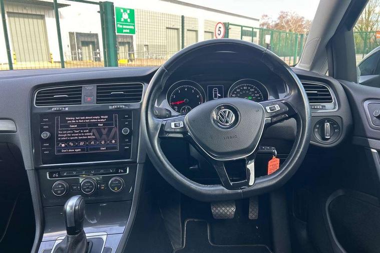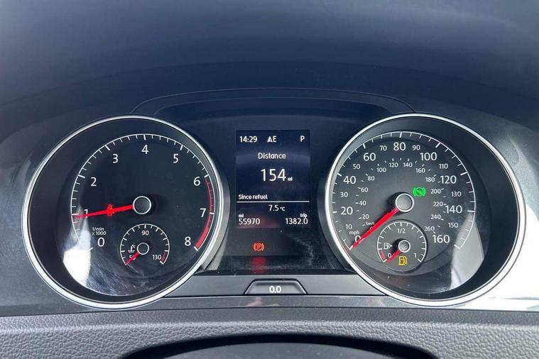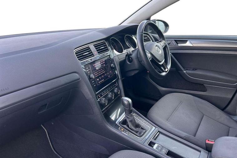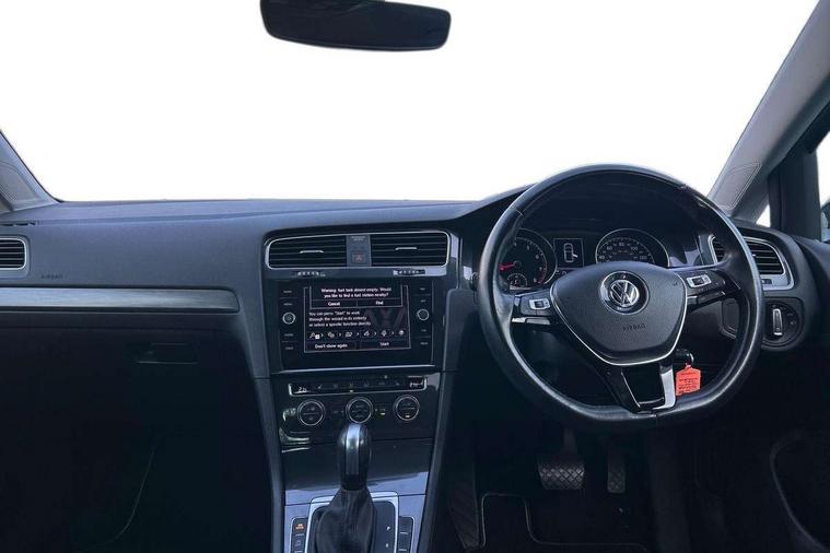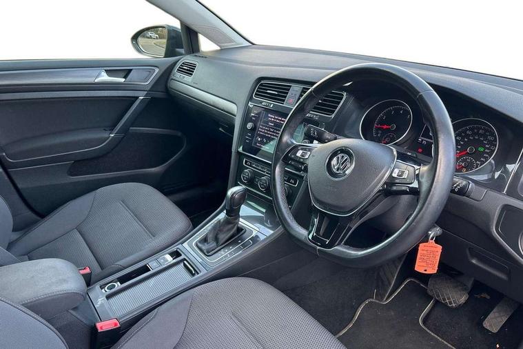 'Lights On' Reminder warning buzzer, ACC - Adaptive cruise control with front assist, forward collision warning, distance monitoring, city emergency brake and speed limiter, Bluetooth telephone and audio connection for compatible devices, Brake pad wear indicator warning light, Driver alert system, Driving Mode Selection with four preset modes - Eco, normal, sport or individual modes, Multifunction computer with visual gear change recommendation for fuel consumption, Power assisted speed sensitive electro-mechanical steering, Push tank flap, Speed limit display, Speedo, rev counter, electronic odometer, trip, service interval display, exterior temperature and fuel gauge, Stop/start system, Think blue trainer driver tips and journey analysis, Warning buzzer and light for front seatbelts unfastened, Battery regeneration during braking, XDS electronic differential lock, Composition media system, DAB Digital radio receiver, Driver Personalisation profile selection, MP3/WMA compatability, Multi device interface (MDI) via USB connection, Premium USB cable in choice of either Apple or Android smartphone compatibility, SMS Functionality, Title and cover art display, USB and SD card connectivity, Volkswagen media control, Black front air intake and radiator grille with chrome insert, Black rear diffuser, Body colour bumpers, Body colour door handles, Body colour door mirrors with integrated indicators, Dusk sensor + automatic driving lights, Electric front windows, Electric rear windows, Electrically adjustable and heated door mirrors, Fully galvanised body, Heated rear windscreen, High level 3rd brake light incorporating LED Technology, LED front fog lights with static cornering light function, Range adjustable headlights via infotainment system with LED daytime running lights, Rear fog lamp, Rear number plate lights incorporating LED technology, Rear tinted glass 65% light absorbing from B pillar backwards, Rear window aerial, Rear window wash/wipe with intermittent wipe, Reflectors in all doors, Tailgate with integrated rear roof spoiler, Windscreen wipers/ intermittent wipe + 4 position delay, 12V socket in luggage compartment, 3 rear headrests, 4 load lashing points in luggage compartment, 60/40 split folding rear seat backrest, Bag hook in luggage compartment x 2, Climate control - 2 zone electronic air conditioning with automatic air recirculation and allergy filter, Cooled glovebox, Cover for storage compartment in centre, Dust/pollen filter, Front and rear reading lights X 2, Front centre armrest with storage compartment and two rear air vents, Front seat back storage pockets, Grab handles front x 2, rear x 2 with integrated coat hooks, Height and reach adjustable steering wheel, Illuminated vanity mirrors, Instrument lighting white adjustable panel illumination, Interior light delay, Isofix preparation for 2 rear child seats, Load through provision with rear centre armrest and cupholders x2, Luggage compartment lighting, Overhead storage box, Pearl grey headlining, Storage box in luggage compartment, Storage compartment in roof console with cover, Storage compartments in centre console, Storage compartments in front doors, Storage compartments in rear doors, Stowable luggage compartment cover, Sun visors, Variable boot floor, height adjustable and removable, Convenience Pack - Golf, Mirror pack - Golf, Winter pack - Golf, 3 rear three point seatbelts, Airbags - Driver's and front passenger's, curtain airbag, Driver's knee, front side impact and passenger's airbag deactivation switch, Anti-lock Braking System (ABS) with Hydraulic Brake Assist (HBA), Automatic post collision braking system, Child locks on rear doors, Driver/Passenger optimised head restraints, Electronic parking brake with auto hold, Electronic stability control (ESC) including Electronic differential lock (EDL) and ASR (Traction control) with deactivation via infotainment system, Front ventilated disc brakes and rear disc brakes, Pre crash preventive occupant protection, Three point height adjustable front seatbelts with tensioners, Tyre pressure loss indicator, Alarm with interior protection and deactivation via infotainment system, Electronic engine immobiliser, Brushed dark silver decorative inserts in dash and door panels, Chrome plated air vent surround, Chrome-plated light switch surround, Polar night black decorative inserts in centre console, Steel space saver spare wheel,