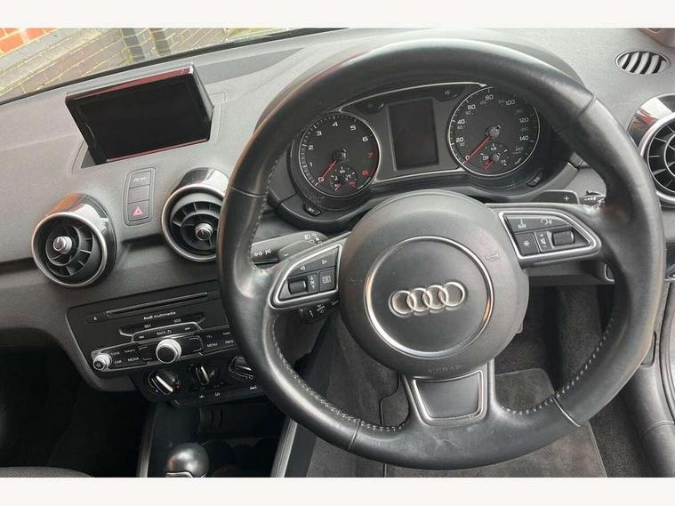 Audi drive select, Electro-mechanical PAS, Low washer fluid indicator, Service interval indicator, Voice control system, Additional SD card reader, Audi music interface, Bluetooth audio streaming, DAB Digital radio, Adaptive brake lights, Electric adjustable door mirrors, Electric front windows, Electric rear windows, Front fog lights, Heat insulating glass, Heated door mirrors, Heated rear windscreen, Rear wiper, 12V Accessory socket in centre console, 3 spoke leather multi-function sport steering wheel including paddle shift, Adjustable rear head restraints, Cupholders in centre console, Door sills trims with aluminium inlays, Front floor mats, Front head restraints, Front sports seats, Height adjustable front seats, Illuminated glovebox, Isofix attachments on outer rear seats, Jack and tool kit, Leather gear knob, Leather handbrake, Lumbar adjustment for front seats, Rake/reach adjustable steering wheel, Split folding rear seats, Connectivity pack - A1, ABS/EBD, Brake assist function, Driver and passenger side airbags, Driver/Front Passenger airbags, EDL, ESP with ASR, First aid kit, Front and rear seatbelt reminder, Front passenger airbag deactivation, Head airbags, Height adjustable front seatbelts, Hill hold assist, Tyre pressure monitor, Warning triangle, Locking wheel bolts, Remote control central locking, Thatcham category 1 alarm + immobiliser, Tyre repair kit,
