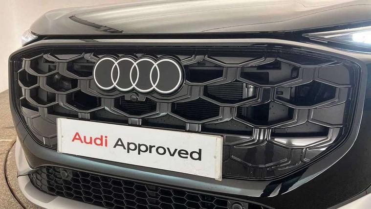 Adaptive cruise control, Audi connect emergency call and service, Audi connect remote and controls, Audi drive select (Balanced/Individual, effeciency, comfort and dynamic), Audi virtual cockpit plus - 11.9" display, Bluetooth interface, Camera based traffic sign recognition, Driver attention and fatigue monitor with driver monitoring, Front cross traffic assist, Lane departure warning with emergency assist, Panoramic curved display with 12.8" MMI navigation plus and MMI touch, Park assist plus with parking system and 360 display, Phonebox light with wireless charging, Reversing camera, Smartphone interface includes wireless Apple carplay/Android Auto, Start/stop system, Swerve assist and turn assist, Traffic sign based speed limiter, Voice control system with natural language interaction, 3 pin 10 amp domestic charging cable, Charging socket CCS type 2, Comfort suspension, Compact charging system, Industrial connector CEE 32A, 230V, Mode 3 charging cable for public charging, 22 KW (AC), Petrol Particulate Filter, 2 USB-C ports with charge and data functions, Audi sound system with 10 loudspeakers, subwoofer, 8 channel amplifier with 260 watts, DAB digital radio module, Acoustic glass for front door windows, Acoustic windscreen, Aluminium roof rails, Aluminium window trim, Audi Q3 lettering on the B-pillars, Auto dimming door mirrors, Auto dimming rear view mirror, Body colour door mirrors, Contrasting finish in volcano grey, Electrically folding, adjustable and heated door mirrors with integrated LED side indicators and kerb view function for passenger side, Full paint finish, Illuminated door sills with aluminium inserts at the front with S logo, LED daytime running lights, LED headlights plus with LED rear lights pro with continous light strip, illuminated Audi rings, rear, LED third brake light, Loading sill protector in stainless steel, Main beam assist, Privacy glass - dark tinted rear window, rear door and side windows, Projection light in the exterior mirrors - Projects a graphic element onto the ground, Q3 badging on the rear, Rain and light sensors, Rear side wing doors, Rear window, rear door windows and rear side windows in clear glass, Rear wiper, Sports bumpers, 3 seat bench in 2nd row, 3 spoke flat top and bottomed leather multi function sport steering wheel with gear shift paddles and "S" badging, 3-zone deluxe automatic air conditioning, 4 way lumbar support for the front seats - electric with horizontal and vertical adjustment in four directions, Black cloth headlining, Convenience auxiliary air conditioning, Front and rear floor mats, Front and rear headrests, Front centre armrest, Heated front seats, Height and reach adjustable steering wheel, Interior storage compartment, Leather/artificial leather upholstery combination with S emblem + front sports seats, Luggage compartment lid, electrically opening and closing, Manual front seats with height adjustment, Rear seat bench plus with split folded 40:20:40, Single front passenger seat, Stainless steel pedals, Steering wheel operating unit, gloss black, Storage compartment in front centre console, Ambient lighting package pro - Q3, S line exterior styling pack - Q3, 3x3 point rear seatbelts, Acoustic vehicle alerting system, Convenience key with safelock, Driver and front passenger airbag with passenger airbag deactivation, Electromechanical parking brake, Electronic stabilisation control including ABS, ASR and EDL, First aid kit with warning triangle and high visibility vests, Front emergency brake assist, Hill hold assist, i - Size child seat mounting on the front passenger side and i - Size and top tether on the outer rear seats, Power operated child locks, Seatbelt monitoring, Three point automatic belts with belt tensioner and height adjustment, Tyre pressure loss indicator, Anti theft wheel bolts, Remote central locking, Thatcham approved category 1 anti theft alarm, Dark aluminium divergence inlay, Interior elements in dinamica microfibre, Interior trims in aluminium look, Tool kit and Jack, Tyre repair kit,