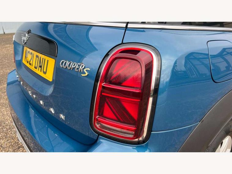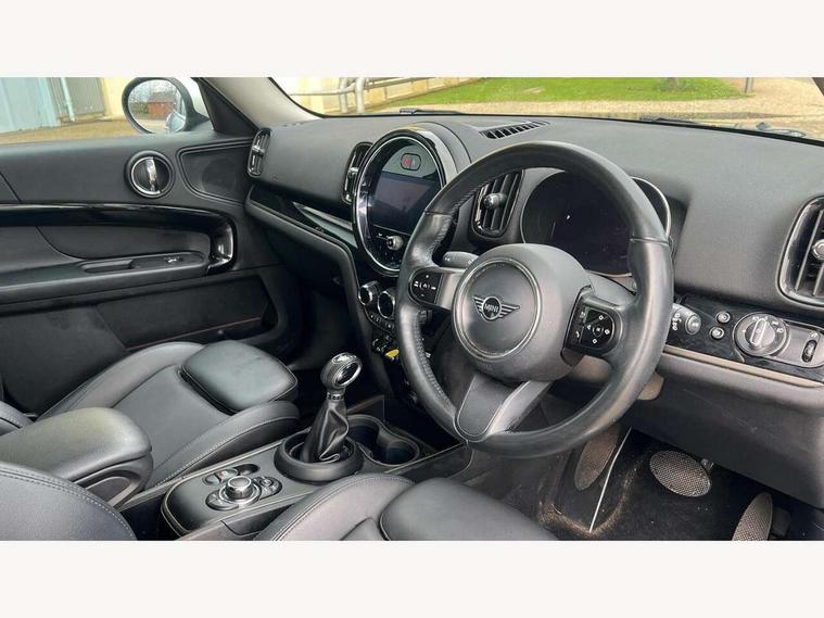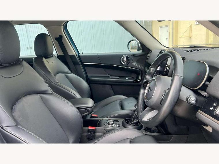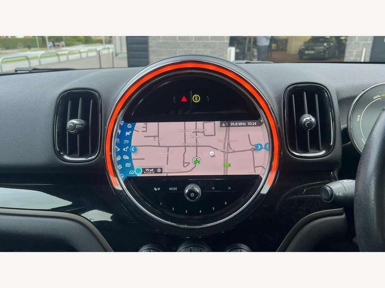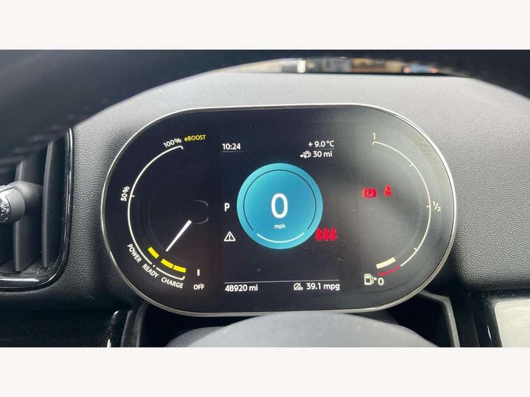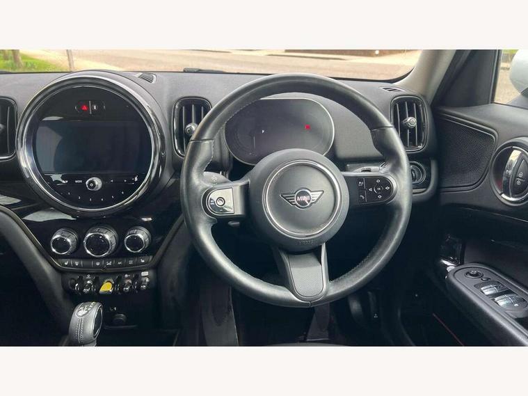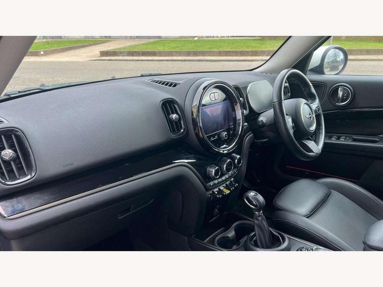 Active Guard incl speed limiting and lane departure functions with auto steering, and front collision warning with brake intervention, Automatic start/stop function with brake energy recuperation, Compatible mobile phone bluetooth with audio streaming, eDrive button, Electro-mechanical speed dependant steering assistance, Instrument cluster, On board computer, Rear parking distance control, 36L fuel tank, Automatic transmission, Charging flap on front left lower A-panel, Double Vanos system, Fully variable valve control, High precision injection, Home charging cable, Performance Control, Public charging cable, 6 speakers, FM tuner and DAB digital radio, Bonnet scoop, Chrome border honeycomb structure radiator grille with S badge, Chrome fuel filler cap, Day time driving lights, Dynamic brake lights, Electric windows, Heated rear window, Heated windscreen washer jets, LED fog lights, LED Headlights, Metal door sill strips with Cooper S imprint, Model logo, Model logo on Tailgate, Rain sensor with auto headlights, Rear fog lights, Rear window wiper, Side scuttle panel with integrated indicator, Split rear doors, Sun/heat protection glass, Twin exhaust tailpipe, White indicator lenses, 12V socket in centre console, 3 spoke sport leather steering wheel + limiter function and audio controls, 360L luggage compartment capacity, 4 lashing eyes in luggage compartment, 40:20:40 split folding rear seats, Chrome interior highlights, Colour line - Carbon black, Cupholders, English handbook, Floor mats, Front headrests, Glove compartment, Headliner with grab handles and clothes hooks, Height and length steering column adjustment, Interior lighting with 12 basic colours selectable via toggle switch in roof, Isofix rear child seat preparation, Leather gearshift lever and handbrake gaiters, LED reading lights, vanity mirror lights, front foot well light and spotlight on front seats, Manual air conditioning, Mechanical seat adjustment, driver seat height adjust, forward/back and front seats backrest, Multifunction steering wheel, Passenger seat height adjuster, Rear headrests, Storage compartments in doors, Sunvisors with vanity mirrors, Tool kit, Excitement pack - Countryman, Navigation pack - Countryman, 2 tone horn, 3 point seatbelts on all seats, 6 Airbags - front, side, head and seat belt tensioners, Acoustic pedestrian protection, Anti-lock braking system (ABS), DSC - Dynamic Stability Control, Electronic handbrake, Front and rear disc brakes, Hill start assist, Tyre pressure monitoring system, Alarm system with tilt sensor, monitoring doors, bonnet interior and tailgate, Auto drive away locking, Deadlocking function, Electronic vehicle immobiliser, Locking wheel bolts, Start/stop toggle with keyless go, Piano black interior trim,