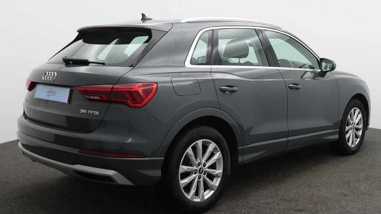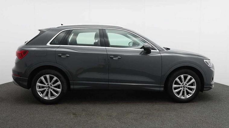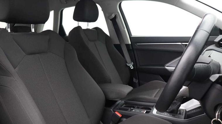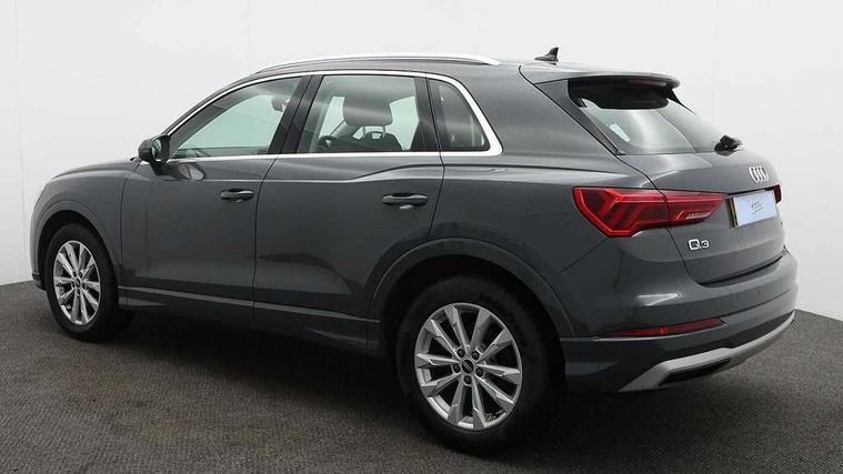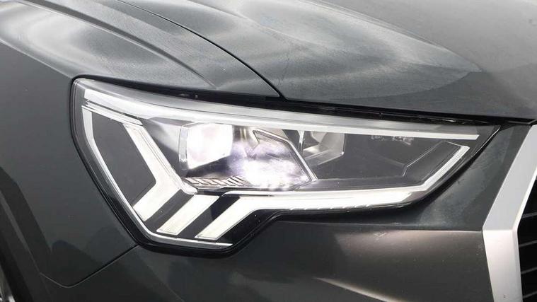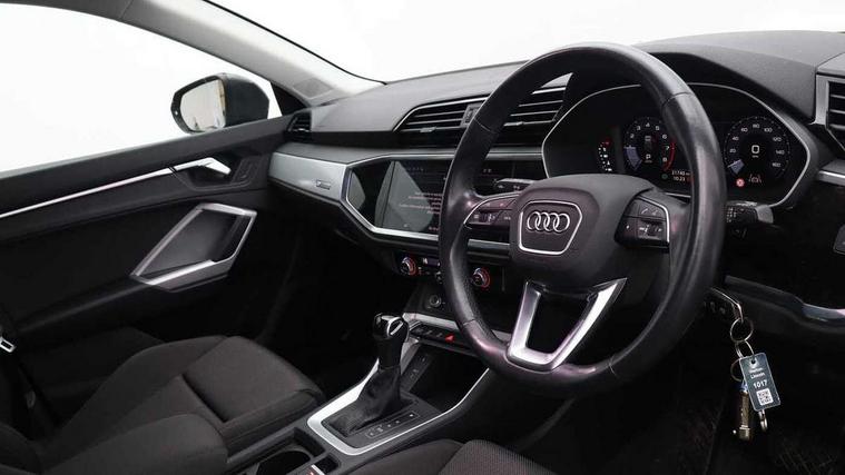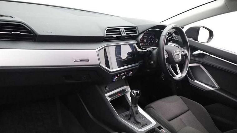 Audi connect safety and service (e-call), Audi drive select, Audi lane departure warning, Audi smartphone interface includes wireless Apple carplay/Android Auto, Audi Virtual Cockpit - 10.25" display, Bluetooth interface, Camera based traffic sign recognition, MMI Navigation Plus with high resolution 10.1 inch touchscreen colour display, Power operated tailgate, Progressive steering, Service interval indicator, Start stop system with recuperation, Voice control system with natural language interaction, 48V Mild hybrid technology, Standard suspension, 2 USB-C ports with charge and data functions, 6 passive loudspeakers, DAB digital radio module, Acoustic windscreen, Aluminium roof rails, Aluminium window trim, Auto dimming frameless rear view mirror, Body coloured bumpers, Electrically folding, adjustable and heated door mirrors with integrated LED side indicators and kerb view function for passenger side, Front and rear electric windows, Front fog lights, Front side air inlets in matt selenite silver, Front spoiler in matt selenite silver, Grille vertical bars in aluminium silver/Matt, High gloss black finish B and C pillars, LED headlights with LED daytime running lights and dynamic rear indicator, LED rear lights, Rain and light sensors, Rear diffuser strip in matt selenite silver, Silver chrome grille surround, Titanium black radiator grille, 12V socket in rear centre console, 3 spoke multi-function leather steering wheel, 40:20:40 folding with manual adjustment for 60:40 forwards/backwards position and backrest angle, Adjustable rear seat bench/backrest, Aluminium door sill trims, Dual zone electronic climate control, Front and rear floor mats, Front and rear headrests, Front and rear roof module including reading lights, Front centre armrest, Glove compartment lighting, Height and reach adjustable steering wheel, ISOFIX child seat mounting for front passenger with airbag deactivation and outer rear seat including top tether attachment point for outer rear seats, Luggage compartment light, Lunar silver cloth headlining, Manual front seats with height adjustment, Stainless steel luggage compartment sill finisher, Tool kit, Non smoking pack - Q3, 3x3 point rear seatbelts, 6 airbags - Driver, front passenger, curtain and side windows, Audi pre-sense front with pedestrain and cyclist recognition, Electrically operated child locks on rear doors, Electromechanical parking brake, Electronic stabilisation control including ABS, ASR and EDL, Hill descent control, Hill hold assist, Pre sense basic, Seatbelt monitoring, Tyre pressure warning, Warning triangle and first aid kit, Anti theft alarm, Anti theft wheel bolts, Remote central locking, Detail dashboard around MMI touch colour display in glass look, black with surround in aluminium look, Micrometallic silver inlay, Tyre repair kit,