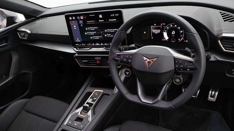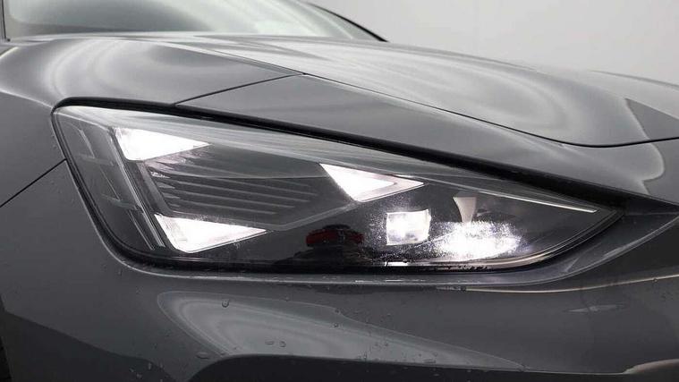 Adaptive cruise control with follow-to-stop and speed limiter, CUPRA drive profile selection with (Comfort/Sport/Individual), throttle response and gearshift mode, Digital cockpit, Dynamic road sign display, E-call, Four x USB Type C ports (2 in front and 2 in rear), Front and rear parking sensors, Front assist with forward collision warning braking reaction to vehicles, pedestrians and cyclists, Full link smartphone integration with Mirror Link, wireless Apple CarPlay and wired Google Android Auto, Lane assist, Lockable tailgate, PAS, RPM, trip computer, outside temp gauge, instrument light brightness, low fuel warning light, lights on reminder, gearshift indicator, Service interval indicator, Start/stop system with regenerative braking, Wireless phone charger, 7 speakers, Auxiliary input socket, Auto dimming rear view mirror, Body colour door handles, Body coloured bumpers, Cupra sports bumpers, Dark tinted rear windows, Electric front/rear windows, Electrically adjustable, heated and folding door mirrors, High beam assist, LED front fog lamps with cornering function, LED headlights with dynamic turn signals, tail lights, rear fog lights with rear coast to coast lighting, LED rear fog lamp, Rain sensing wipers, Rear side wing doors, Rear wash/wipe, Separate daytime running light with automatic headlight control and coming home feature, Third brake light, Welcome light with logo projector in door mirrors, 12v power supply in centre console, 3 seat bench in 2nd row, 5 headrests, 60/40 split rear bench seat with armrest, Ambient lighting with glovebox, footwell and single monocolour, Black headlining, Cloth/PVC upholstery, Cupra sports pedals, CUPRA Supersports, heated steering wheel with satellite buttons, Driver and passenger seat with manual height and lumbar adjustment, Folding boot cover, Front and rear reading lights X 4, Front centre armrest, Height/reach adjust steering wheel, Illuminated interior front door sills, ISOFIX points in outer rear seats with top tether anchorage points, Single front passenger seat, Storage pockets on rear of front seats, Sunvisors with illuminated mirror, Three zone climate control, Media system plus with 12.9" display + navigation pack - Leon Cupra, 3 point seatbelts on all rear seats, ABS, Brake control system - ESC and brake booster, Child proof door locks, Cupra black brake calipers, Driver and front passenger airbags with front passenger airbag de-activation, front side and curtain airbags, Electronic parking brake, Hill hold control, Rear disc brakes, Seat belt reminder for front and rear seats, Tiredness recognition system, Tyre pressure monitoring system, Anti theft alarm system with interior monitoring in cab, backup horn and towing protection, Central locking system Keyless Go, Locking wheel bolts, Chrome and copper interior detailing, 18" Windstorm machined sport black matt and silver alloy wheel with 92Y XL tyres, Tool kit,