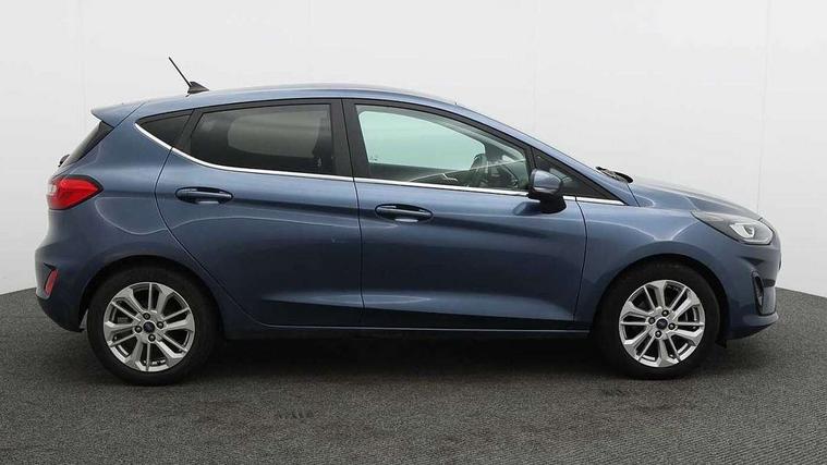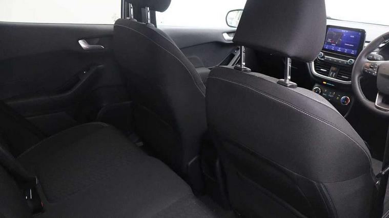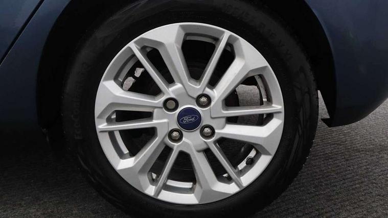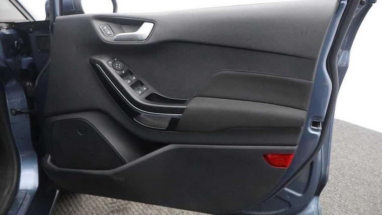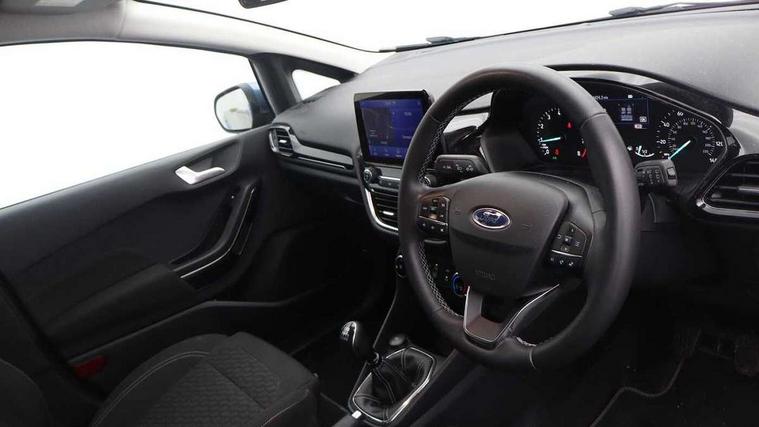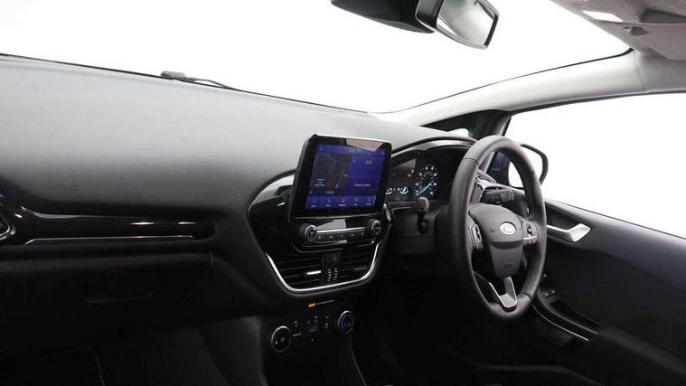 Bluetooth system, Electric power steering, Ford easy fuel, Ford SYNC 3 Navigation system incl 8" touchscreen, 7 speakers, FordPass connect, Apple carplay, android auto, voice control and emergency assistance, Rear parking distance sensors, Selectable drive modes (Normal, Sport, Track), Trip computer, 2 USB ports, Auxiliary input socket, DAB Digital radio, Steering wheel mounted controls, Body colour bumpers, Body colour door handles, Body colour rear spoiler, Body coloured electrically operated and heated door mirrors with side indicators, Chrome beltline trim, Chrome front grille, Chrome lower window surround, Cornering front fog lights, Electric front windows/one touch facility, Electric rear windows, Quickclear heated windscreen, Rain sensing wipers and auto dimming rear view mirror, Rear privacy glass, Rear wiper, 3 spoke leather trimmed steering wheel with audio control, 60/40 split folding rear seat, Adjustable head restraints, Boot carpet, Centre console with opening armrest, 2x cupholders, 12v and USB, Chrome inner door handles, Cloth upholstery, Footwell illumination, Front floor mats in velour, Front map reading lights, Front seat and rear pockets, Illuminated glovebox, Leather gaiter, Load area light, Luxury woven headliner, Manual 2 way passenger seat adjust, Manual 4-way driver seat adjust, Manual air conditioning, Overhead console with sunglasses holder, Pollen filter, Rake/reach adjustable steering wheel, Sensico wrapped steering wheel, NCAP Pack - Fiesta, 3 point seatbelts on all rear seats, ABS+EBA, Curtain airbags, Driver and passenger airbags, Drivers knee airbag, Electronic stability control with hill start assist, Front passenger airbag deactivation, Front side airbags, Seatbelt warning, Two tone horn, Tyre pressure monitoring system, Keyless start with 'Ford Power' starter button, MyKey system, Remote central locking & engine immobiliser, Thatcham Cat.1 alarm, 16" 10 spoke alloy wheels,