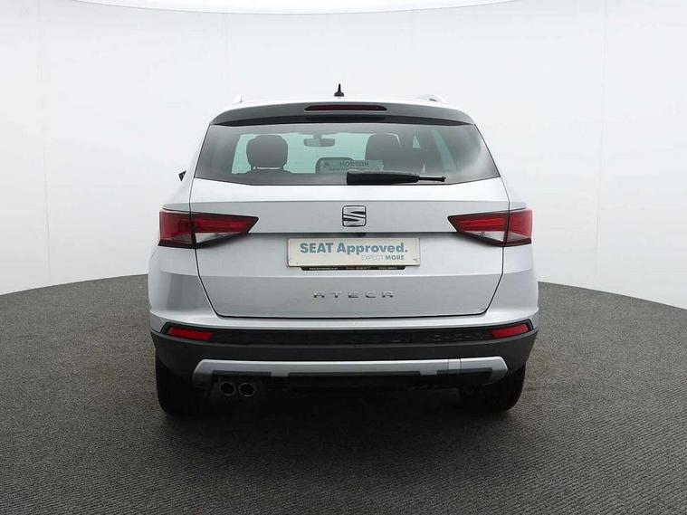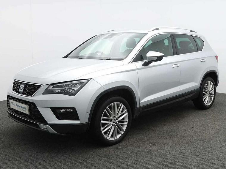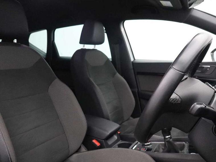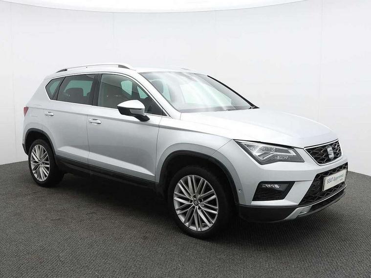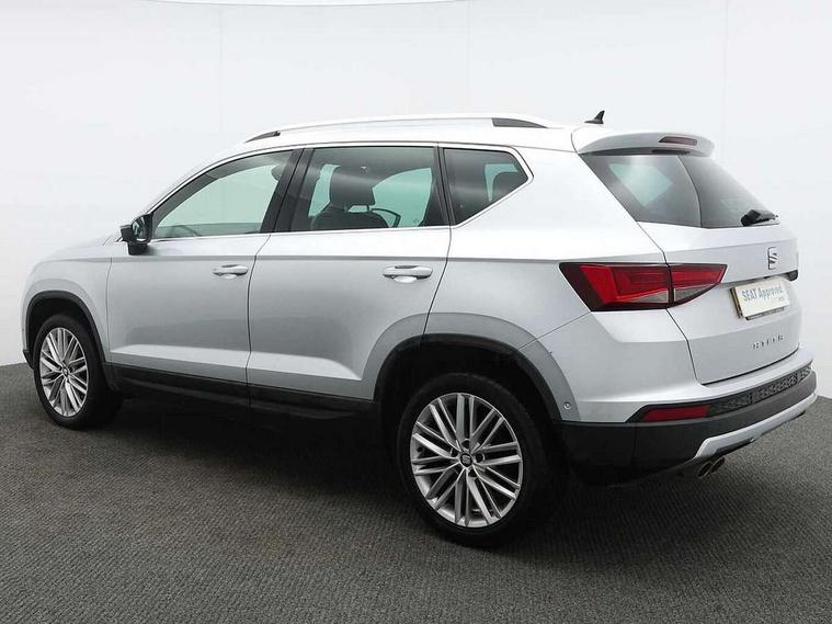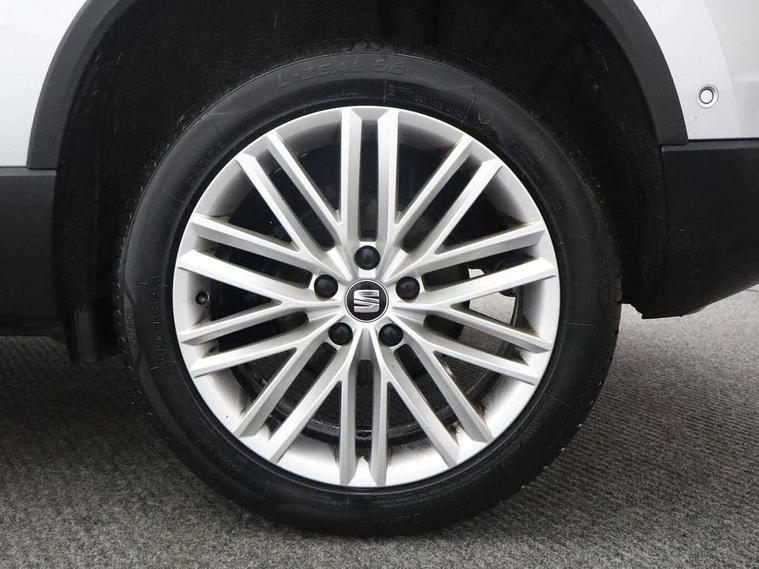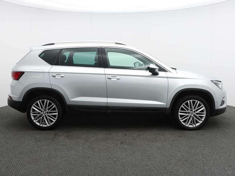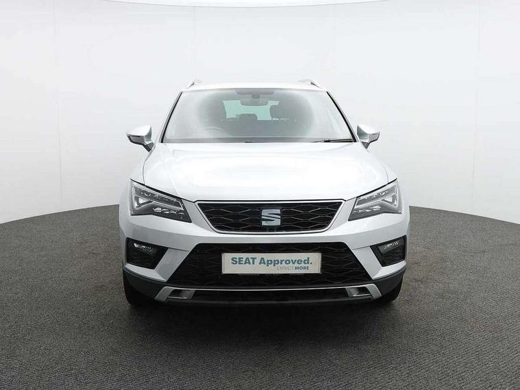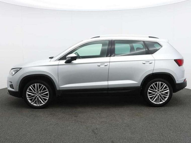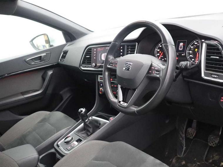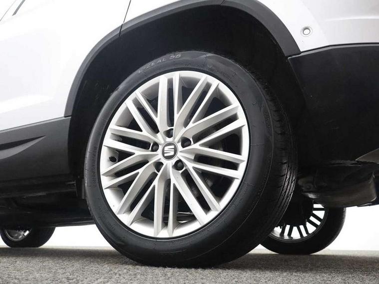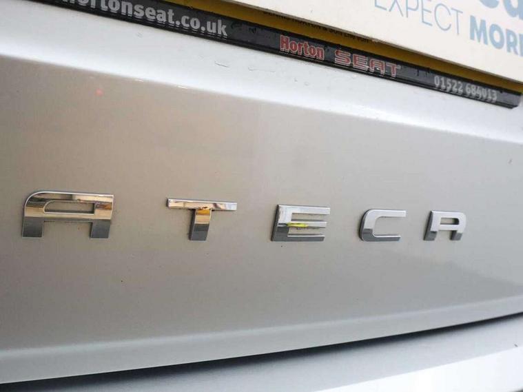 'Lights On' Reminder warning buzzer, 3.5" driver's display, 8.0" colour touchscreen with proximity sensor, Adaptive cruise control, Digital clock, Driver alert system, Front assist city emergency braking and pedestrian protection, Full Link Smartphone Integration with Mirror Link, Apple Car Play, Google Android Auto, Low fuel warning light, Multi function display, Outside temperature gauge, Rear view camera, Remote fuel flap release, RPM counter, Satellite navigation system, SEAT drive profile with driving experience button, SEAT logo boot release, Self parking functionality (includes front and rear parking sensors), Trip computer, Voice control system, Comfort suspension, XDS electronic differential lock, 2 USB ports, 8 Speakers, AM/FM radio, DAB digital audio broadcast, High resolution colour driver display, SD card slot, SEAT USB media cable, Steering wheel mounted audio/phone controls, Aluminium front door sills, Armrest with air outlet in rear, Auto dimming rear view mirror, Auto headlights with automatic coming and leaving home function, Black wheel arch extensions, Body colour bumpers, Body colour door handles, Body colour door mirrors, Chrome front grille frame, Chrome roof rails, Chrome side window trim, Dark tinted rear windows, Door mirrors with welcome light silhouette, Electric adjustable/heated/folding door mirrors, Frameless interior mirror, Front and rear electric windows, Front grille in glossy black, Full LED headlights, Heated windscreen, Illuminated aluminium front door sill with trim logo, LED daytime running lights, LED front fog lights, Rear fog lights, Rear LED tail lights, Rear wash/wipe, Twin chromed exhaust pipes, Visible dual exhaust pipes, 12V socket in front, 4 Lashing eyes in boot, 60/40 split folding rear seat, Adjustable front armrest with storage compartment, Ambient spot lighting and front footwell illumination, Black roof lining, Driver and passenger seats, height-adjustable, with lumbar adjustment and height-adjustable headrests, Driver and passenger sun visor, covered and illuminated mirror, driver sun visor with card holder, Dual zone climate control, Front courtesy lights, Front cupholders, Front reading lights, Front seat back storage pockets, Gear shift indicator, Illuminated boot, Illuminated glovebox, Instrument lighting with brightness control, ISOFIX points in outer rear seats with top tether anchorage points, Leather steering wheel and gear knob, Microsuede upholstery with front comfort seats, Multicoloured ambient lighting with LED interior illumination, Rear armrest and easy back seat release mechanism from boot, Rear reading lights, Storage box under drivers seat, Convenience pack - Ateca, Navigation system pack - Ateca, 3x3 point rear seatbelts, ABS, Active front headrests, Automatic post collision braking, Driver/Front Passenger airbags, Drivers knee airbag, Electronic parking brake with auto hold, Electronic stability control, ESP+EBA, Front and rear seatbelt reminder, Front passenger airbag deactivation, Front side airbags, Hill hold control, Tiredness recognition system, Traction control, Twin curtain airbags, Tyre pressure monitoring system, 2 folding remote keys with window open/close function, Immobiliser, Keyless entry and go and connectivity hub with wireless charger, Locking wheel bolts, Remote central locking, Volumetric alarm with back up horn, Chrome interior detailing, 18" Performance alloy wheels,