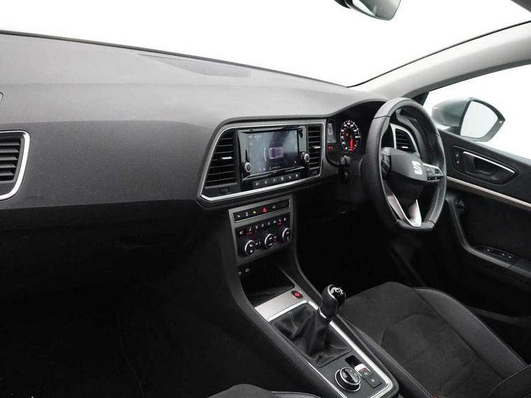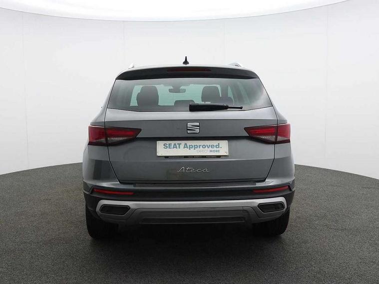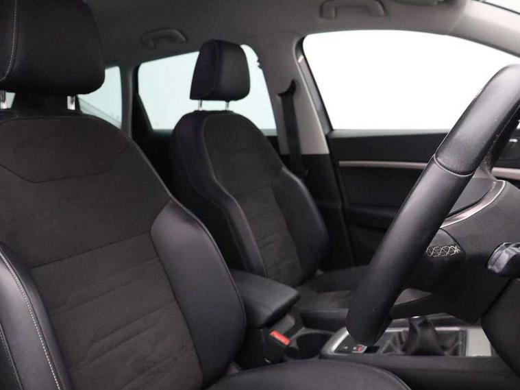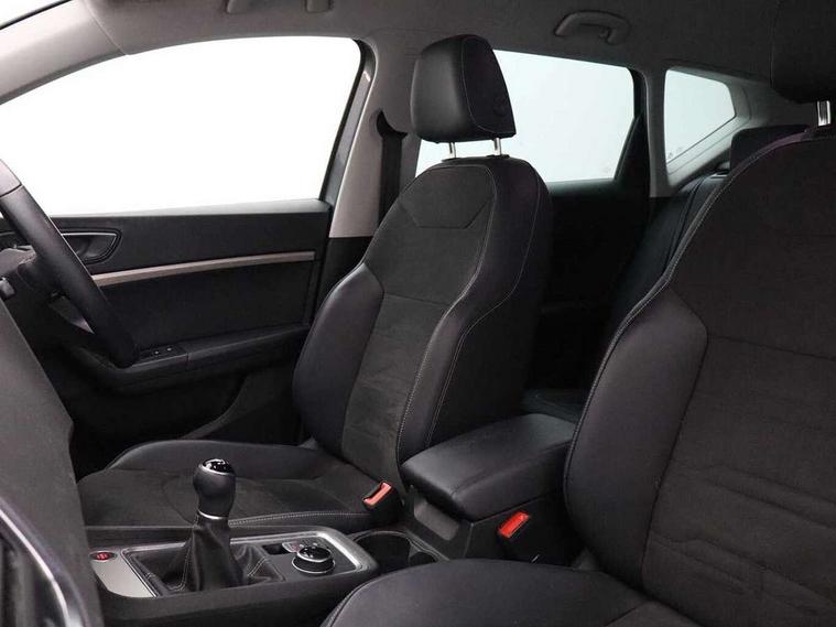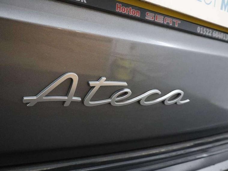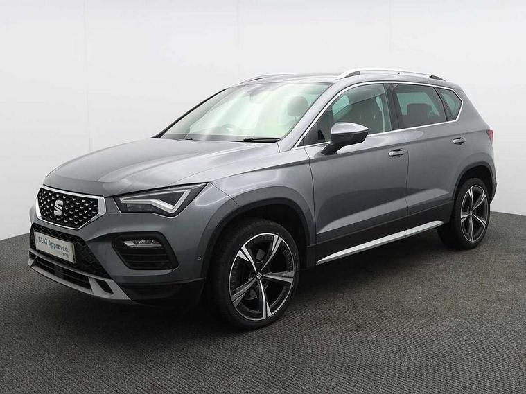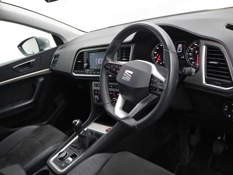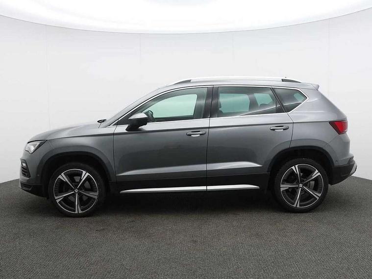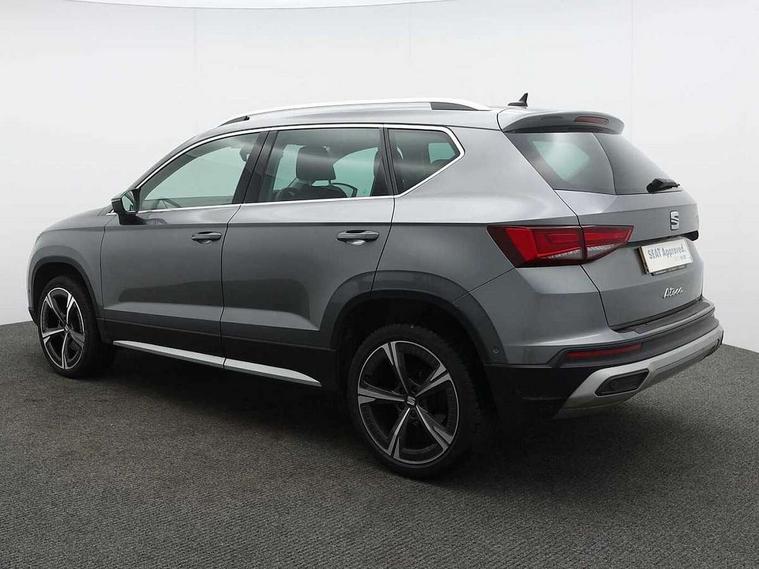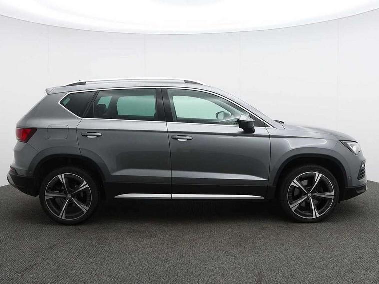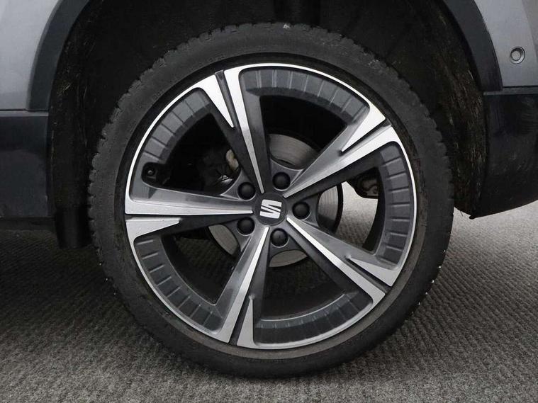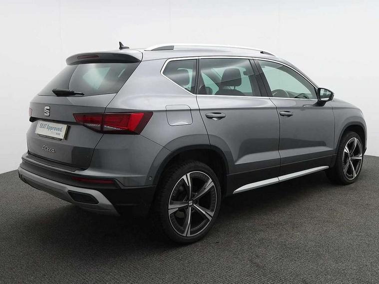 8" Digital cockpit, Colour multi-function on board computer display, E-call, Electric tailgate closing, Outside temperature gauge, Progressive power assisted steering, Rear view camera, SEAT drive profile with driving experience button - Normal, Sport, Eco and Individual mode, steering and throttle response, Self parking functionality (includes front and rear parking sensors), Start/stop system, Tailgate, Trip computer, Wired Full Link, Wireless phone charger, Steering wheel mounted audio/phone controls, Black simulated exhaust pipes, Black wheel arch surrounds, Body colour bumpers, Chrome front grille frame, Chrome roof rails, Chrome side window trim, Dark tinted rear windows, Daytime running lights, Door mirrors with welcome light silhouette, Dynamic headlight range control with self adjusting whilst driving, Electric adjustable/heated/folding door mirrors, Front and rear electric windows, Front grille hot stamping, Full LED headlamps with lens and LED front fog lamps with cornering function, Heated windscreen, Illuminated aluminium front door sill, LED rear tail lights with dynamic indicators, Rear fog lights, Rear side wing doors, Rear wash/wipe, Reflex silver side mouldings, Roof spoiler, Third brake light, Variable front intermittent wipers, 12V socket in front, 3 seat bench in 2nd row, 60/40 split folding rear seat, Drawer under right front seat, Dual zone climate control, Front and rear head restraints, Front centre armrest, Front seat back storage pockets, Height adjustable driver and passenger seat with lumbar adjustment, ISOFIX points in outer rear seats with top tether anchorage points, Leather steering wheel and gear knob, Microsuede upholstery with front comfort seats, Rear armrest and easy back seat release mechanism from boot, Single front passenger seat, Convenience pack - Ateca, Interior lighting pack - Ateca, Media system plus pack - Ateca, Safe and driving pack - Ateca, 3x3 point rear seatbelts, ABS, Traction control system (TCS), Electronic stability control (ESC) and Electronic differential lock system (XDS), Airbags - Driver and front passenger airbag with deactivation, front side, two curtain and driver's knee airbags, Electric parking brake with auto hold function, Front and rear seatbelt reminder, Hill hold control, Manual rear child locks, Single tone horn, Tiredness recognition system, Traction control, Tyre pressure monitoring system, Alarm, Keyless entry, Locking wheel bolts, Remote central locking, Chrome interior detailing, 19" Exclusive 36/5 Machined Aerowheels in Nuclear Grey,