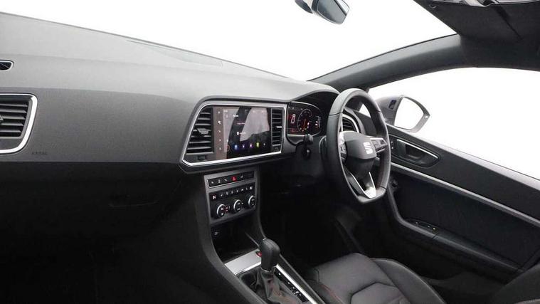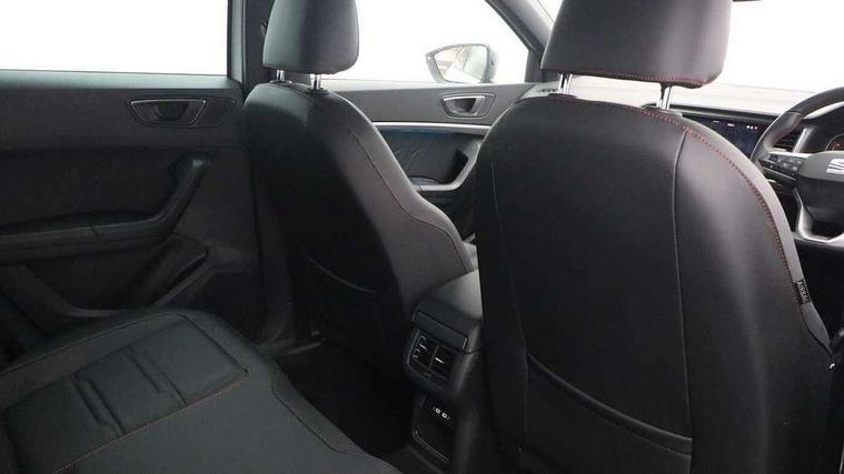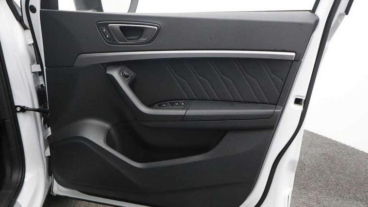 10" Digital cockpit, Bluetooth audio streaming with handsfree system, E-call, Electric tailgate with virtual pedal, Outside temperature gauge, Progressive power assisted steering, SEAT drive profile with driving experience button - Normal, Sport, Eco and Individual mode, gearshift, steering and throttle response, Self parking functionality (includes front and rear parking sensors), Speed limiter, Start/stop system, Top view camera with rear view camera, Trip computer, wired and wireless full link smartphone integration, Wireless phone charger, Steering wheel mounted audio/phone controls, Black roof rails, Black side window trim, Body colour bumpers, Body coloured wheel arch surrounds, Chrome front grille frame, Dark tinted rear windows, Daytime running lights, Door mirrors with welcome light silhouette, Dynamic headlight range control with self adjusting whilst driving, Electric adjustable/heated/folding door mirrors, Front and rear electric windows, Illuminated aluminium front door sill, LED 3rd brake light, LED headlamps with lens and LED front fog lamps with cornering function, LED rear tail lights with dynamic indicators, Rear exhaust tailpipe, Rear fog lights, Rear side wing doors, Rear spoiler, Rear wash/wipe, Variable front intermittent wipers, 12v socket in front, 3 seat bench in 2nd row, 60/40 split folding rear seat, Aluminium pedals, Black greenhouse interior roof, Dual zone climate control, Electric adjustable driver seat with memory function, Front and rear head restraints, Front centre armrest, Front seat back storage pockets, Heated front seats, Height adjustable passenger seats with lumbar adjustment, ISOFIX points in outer rear seats with top tether anchorage points, Leather sports steering wheel and gear knob, Leather upholstery with front comfort seats, Rear armrest and easy back seat release mechanism from boot, Single front passenger seat, Steering wheel mounted gearshift paddles, Convenience pack - Ateca, Interior lighting pack - Ateca, Navigation system pack with DAB - Ateca, Safety and driving pack (L) - Ateca, Safety and driving pack with attention and drowsiness assist - Ateca, 3x3 point rear seatbelts, ABS, Traction control system (TCS), Electronic stability control (ESC) and Electronic differential lock system (XDS), Airbags - Driver and front passenger airbag with deactivation, front side, two curtain and driver's knee airbags, Electric parking brake with auto hold function, Front and rear seatbelt reminder, Hill hold control, Manual rear child locks, Single tone horn, Tyre pressure monitoring system, Alarm, Keyless entry, Locking wheel bolts, Remote central locking, Chrome interior detailing, 19" Exclusive alloy whelels 36/10 in glossy black, Tool kit,