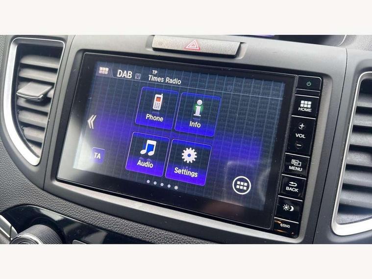 Bluetooth hands free telephone connection, Connect with 7" touchscreen, Digital Radio, Mp3, Aha app integration, internet browsing, Cruise control, Electric power steering, Front and rear parking sensors, Intelligent multi info display, Rear view camera, Service interval indicator, Speed limiter, Vehicle stability assist, 6 speakers, Steering wheel mounted controls, USB/iPod connection, Aspheric door mirrors, Auto dimming rear view mirror, Automatic headlights with dusk sensor, Body colour bumpers, Body colour door handles, Chrome rear garnish, Daytime running lights, Door mirrors tilt when reversing, Electric front windows/one touch facility, Electric rear windows + one touch facility, Electrically adjustable and heated door mirrors, Electrically retractable door mirrors, Front fog lights, Privacy glass, Rain sensor, Rear wiper, Shark fin roof aerial, Silver roof rails, Trailer stability assist, Welcome home function, 60/40 split folding rear seat, Accessory sockets, Ambient interior lighting, Boot light, Cargo hooks, Chrome interior door handles, Cloth upholstery, Courtesy lights, Driver's electric adjustable lumbar support, Driver/passenger sunvisors with illuminated vanity mirrors, Dual zone automatic climate control, Front centre armrest, Front map lights, Front seatback pockets, Height adjustable driver's seat, Illuminated glovebox, Illuminated ignition switch, Isofix child seat preparation, Leather steering wheel and gear knob, Rear air vents, Rear centre armrest, Rear headrests, Rear seat conversation mirror, Sunglasses holder, Tilt/telescopic adjustable steering wheel, Tonneau cover, 5 x 3 point seatbelts, ABS/EBD, Anti-whiplash front headrests, Brake assist function, City safety braking system, Deflation detection system, Dual front SRS airbags, Front and rear curtain airbags, Front side airbags, Hill start assist, Passenger airbag deactivate switch, Seatbelt warning, Honda super locks, Immobiliser, Remote central locking with 2 remote folding keys, Security alarm, Brushed alloy inlays, Temporary spare wheel,