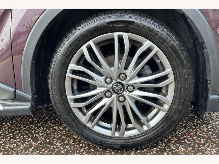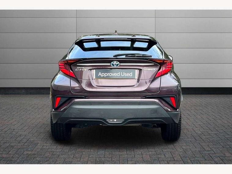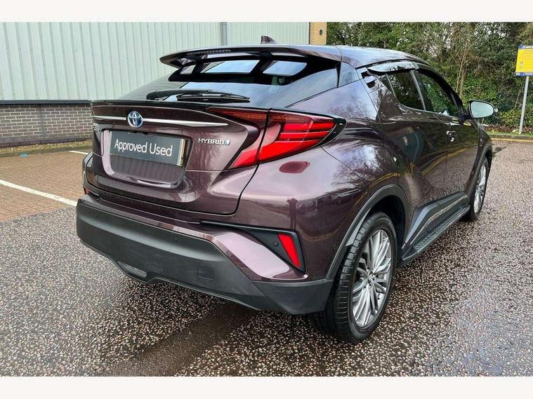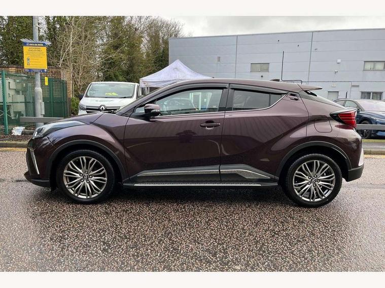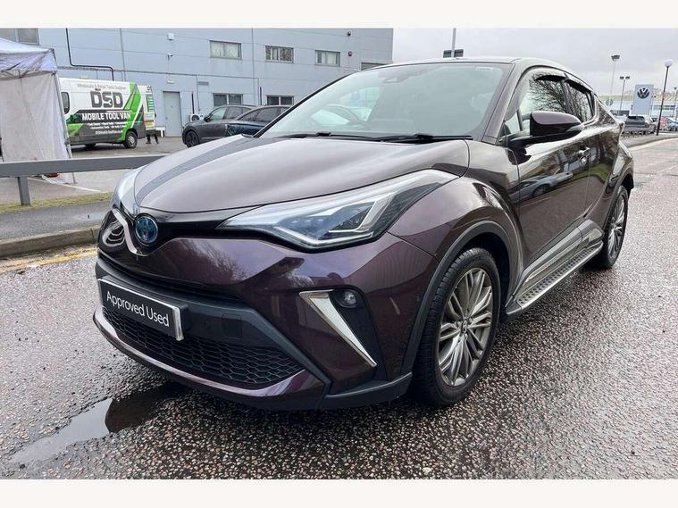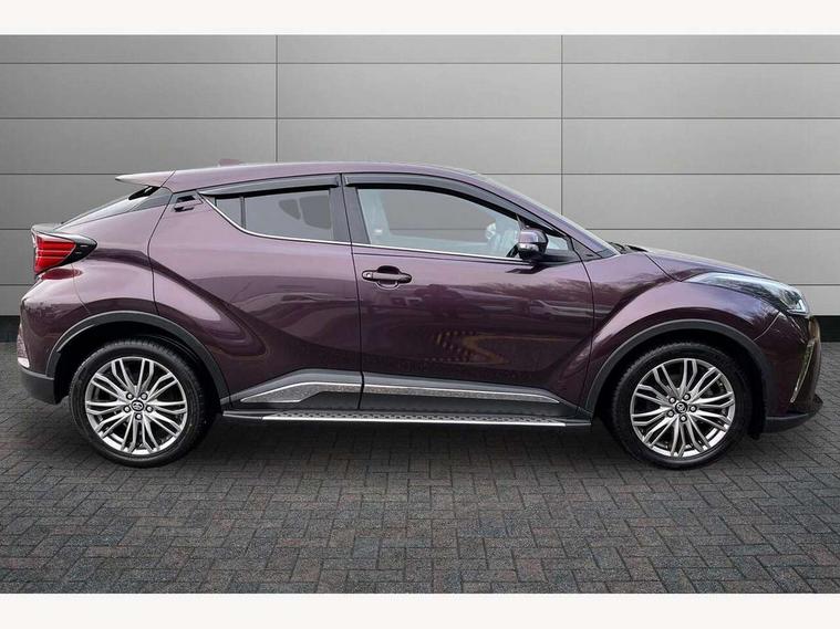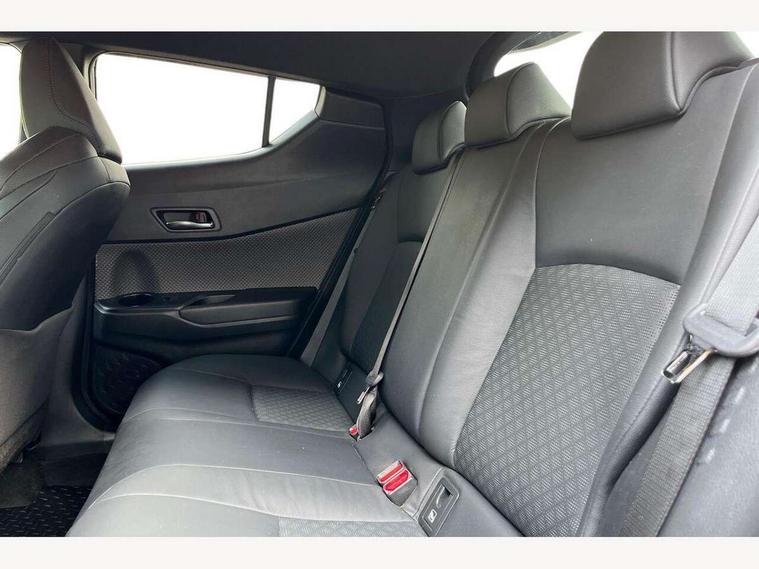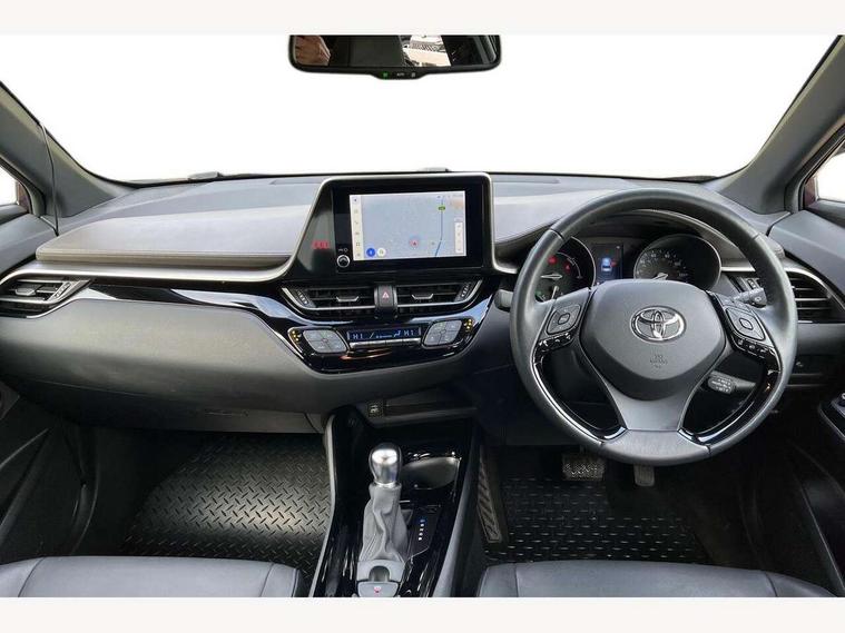 4.2" coloured TFT screen for multi-information display, Adaptive cruise control, Apple car play and Android auto, Bluetooth connectivity, E-call, Electric power steering, Hybrid system indicator, Lane departure alert with steering control, Lane trace assist, Push button tailgate release, Remote boot door release in cabin, Remote boot door release in key, Reversing camera, Road sign assist - RSA, Simple Intelligent parking assist, Smart voice assist, Touch 2 Go navigation system, Trip computer, Voice recognition, Wireless smartphone integration, Vehicle Stability Control (VSC), 6 speakers, AM/FM radio, DAB Radio (Digital Audio Broadcasting), Toyota touch 2 multimedia system with 8" display, USB connector, Wi-fi connectivity, Adaptive front light system, Adaptive LED Headlights, Anti-jam protection on power windows, Auto high beam, Auto up and down function on all power windows, Automatic headlight levelling, Automatic headlights, Automatic headlights cut-off, Black and body coloured rear bumper, Black lower front grille, Black upper front grille, Body colour door handles, Body colour door mirrors, Body colour front spoiler lip, Body coloured front bumper, Boot door release with push button, Electric heated door mirrors, Follow me home headlights, Front and rear power windows, Headlight cut off reminder, Honeycomb lower front grille, LED daytime running lights, LED fog lights, LED front light guide, LED High mounted stop light, LED rear brake lights, LED rear combination lights, Noise reduction layer on front windows and windscreen, Power adjustable door mirrors, Privacy glass, Rain sensor, Rear sequential indicators, Rear side wing doors, Rear spoiler, Rear tailgate, Rear window defogger, Rear window wiper, Shark fin antenna, UV-filter on driver and passenger windows, UV-filter on rear windows, Variable front intermittent wipers, 12v power outlet - front, 3 rear headrests, 3 seat bench in 2nd row, 3 spoke leather steering wheel, 60/40 split folding 2nd row rear seats, Adjustable rear headrests, Adjustable speed limiter switch on steering wheel, Assist grips front and centre pillar, Audio and telephone switches on steering wheel, Black front door assist grips, Blue ambient lighting on front cup holders, Blue ambient lighting on front doors, Boot light, Chrome interior door handles, Driver and front passenger personal light, Driver and front passenger Whiplash Injury Lessening seats, Driver and passenger seatback pockets, Dual zone automatic air conditioning, Floor mats, Front cupholders, Front head restraints, Front sports seats, Glovebox with internal light, Hard tonneau cover, Heated driver and front passenger seats, Heated steering wheel, Hooks for luggage holding net, Humidifying Nanoe air purifier, Illuminated entry system, Isofix attachments on outer rear seats, Leather gearshift, Light on driver sun visor, Light on passenger sun visor, Manual telescopic steering wheel, Manual tilt steering wheel, Microphone on front personal light, Mirror on driver sun visor, Mirror on passenger sun visor, Multimedia switches on steering wheel, Pollen filter, Power adjustable lumbar support on driver seat, Power tilting cushion on driver seat, Shopping bag hooks, Single front passenger seat, Slow opening on lower glovebox, Voice recognition switch on steering wheel, Leather pack - C-HR, Tech with parking sensor pack - C-HR, 16 Disk front wheel brake, 3x3 point rear seatbelts, ABS+EBD+Brake assist, Electronic parking brake, Front and rear seatbelt reminder, Front passenger airbag on/off switch, Hill start assist control (HAC), Pre collision system with pedestrian detection, Pre-tensioners and force limiters, Rear door child safety locks, SRS Airbags - Driver + Front passenger, front side, front and rear curtain and driver's knee airbags, Toyota safety sense, Tyre pressure monitoring system, Tyre pressure warning system, Acoustic vehicle alert system (AVAS), Glass-breaking alarm sensors, Immobiliser, Intrusion alarm, Intrusion sensor, Motion sensor alarm, Power door locks, Power passenger window lock, Remote central locking, Black lower dashboard, Dark brown upper dashboard, Piano black console, Silver deco line on upper dashboard, Tyre repair kit,