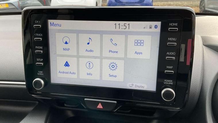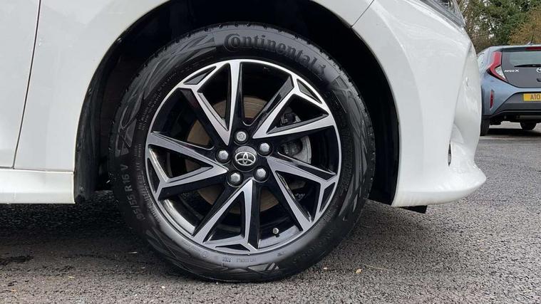 Adaptive cruise control, Adjustable speed limit with speed warning, Bluetooth connectivity, Colour binocular inspired displays with digital speedometer, E-call, Electric power steering, Hybrid energy display, Multi information display switches on steering wheel, Reversing camera, Smartphone integration with Apple CarPlay and Android auto, Tailgate, Voice recognition, Vehicle Stability Control (VSC), 4 speakers, 8" Multimedia display touch screen, USB connection, Acoustic windscreen glass, Auto windscreen wipers, Automatic headlights, Body coloured door mirrors, Electric adjustable heated door mirrors, Follow me home headlights, Front auto power windows with anti jam protection, Full LED rear lights, LED daytime running lights, LED front fog lights, LED front light guide, LED Headlights, LED High mounted stop lamp, LED Indicators, LED rear light guide, Manual headlight levelling, Painted chequered front grille, Rain sensor, Rear auto power windows with anti jam protection, Rear privacy glass, Rear side wing doors, Rear spoiler, Rear wiper, Shark fin antenna, Turning signal integrated indicators in door mirrors, Variable front intermittent wipers, 3 adjustable rear headrests, 3 spoke leather steering wheel, 60/40 split folding rear seat, Active headrests, Adjustable boot height, Auto air conditioning, Coat hooks in rear grab handles, Cup holders (2 front & door), Data Communication Module (DCM) connected services, Fabric upholstery, Front armrest, Glovebox, Grey roof lining, Height adjustable driver's seat, Isofix seat fixing, Leather gearshift, Pollen filter, Shopping bag hooks, Single front passenger seat, Tilt/telescopic steering column, 3 point seatbelts on all rear seats, ABS+EBD+Brake assist, Electronic parking brake, Emergency brake light system (EBS), Front passenger airbag on/off switch, Front seatbelt reminder, Hill start assist control (HAC), Rear child proof door locks, Rear seat belt reminder, Supplemental Restraint System (SRS) 8 airbags: Driver & passenger's airbags, dual side curtain airbags, side impact airbags, front centre airbag, Toyota Safety Sense 2, Precollison + Night time Pedestrian & Cyclist Detection, Lane Trace Assist, Auto High Beam, Intelligent ACC & Road Sign Assist, Tyre pressure warning system, 2x Master key, Alarm/immobiliser, Remote powered central double locking doors, Soft touch instrument panel, Space saver spare wheel,