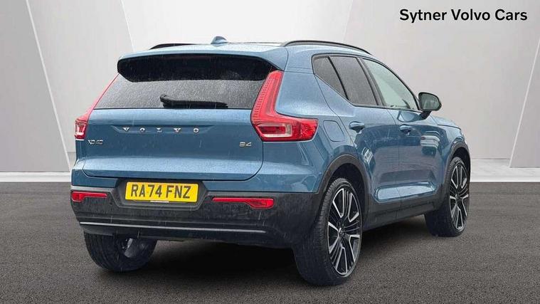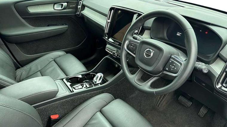 12.3" Progressive Driver Display, 360 degree surround view parking camera with side proximity sensors, 9" centre console portrait touch screen, Adjustable steering wheel force, Android auto (Wired), Apple carplay (wired), Bluetooth handsfree system, Driver alert control, Driver assistance (pilot assist and adaptive cruise control), Driver awareness - Blind spot information system with steer assist, cross traffic alert with autobrake and rear collision warning and mitigation, E-call, Front park assist, Google automotive services - Enabled entertainment apps, navigation with google maps, voice recognition with google assistant, Hands free power tailgate, Intelligent speed assistance, Lane keeping aid, Oncoming Lane Mitigation, Rear park assist, Speed sensitive steering, Volvo cars services with app - Driving journal, emergency and breakdown call, engine remote start, remote door locking/unlocking and vehicle dashboard, Wireless/Inductive Mobile Phone Charging, Automatic transmission with start/stop and manual change functions, Dynamic chassis, DAB Digital radio, Premium Sound by Harman Kardon, Dolby Pro Logic II Surround Sound, Dirac Unison, 12 speakers/600W and subwoofer, Steering wheel mounted remote controls, Active bending pixel LED headlights with adaptive shadow technology, Active high beam incorporating daytime running lights, Adaptive brake lights with high level LED brake lights, Auto dimming feature for exterior door mirrors, Auto dimming interior mirror, Automatic headlamp levelling, Dark tinted windows - rear side windows and rear screen, Front aluminium tread plates, Front and rear electric windows, Headlight cleaning system, High gloss black front and rear skid plate, High gloss black front bumper deco, High gloss black mesh front grille with high gloss black surround, High gloss black window trim, Home safe and approach lighting, Integrated roof rails in high gloss black, LED front fog lights with cornering function, Power glass tilt and slide panoramic sunroof with sun curtain, Puddle lights, Rain sensor with automatic windscreen wiper activation, Rear side wing doors, Rear wiper, Roof antenna, Roof spoiler, Visible VIN plate, 12V socket in front tunnel console and luggage compartment, 2-Zone electronic climate control with CleanZone air quality system and pollen filter, 3 seat bench in 2nd row, 3 Spoke tailored steering wheel with chrome trim, 60/40 versatile split folding rear seat, Centre console cupholders and storage, Flexible load floor and grocery bag holder, Floor mats, Front cabin courtesy lights, Front door pocket, front cupholder, ambient front door, rear reading, rear courtesy, instrument panel and tailgate lighting, Front footwell illumination, Front headrests, Front reading lights, Front seat cushion extensions, Front side step illumination (under door), Glovebox bag hook, Heated front seats, Height/reach adjustable steering column, High gloss centre tunnel deco, Illuminated glovebox, Illuminated luggage compartment, Illuminated vanity mirrors + ticket holder, Integrated waste bin, Isofix attachments on outer rear seats, Load cover, Load protection net, Multi directional lumbar support for driver and passenger seat, Power driver seat with memory + exterior mirrors memory, Power folding rear headrests, Power passenger seat, Rear armrest with cupholders, Single front passenger seat, Underfloor cargo storage, Climate pack without heated front seats - XC40, 3x3 point rear seatbelts, City safety with steering support with Pedestrian + cyclist + front collision warning with full auto brake and rear auto brake, Driver and passenger airbags, Drivers knee airbag, Electronic parking brake with auto hold, First aid kit, Front and outer rear seatbelt reminder and pretensioners, Front seats SIPS airbags, Hill descent control, Hill start assist, Inflatable curtain, Passenger airbag cut-off device, Power child locks on rear doors, Road sign information display, Run off Road Protection, SIPS (Side Impact Protection System), Slippery road and hazard light alert, Stability and Traction Control with Spin control, Engine Drag Control and Corner Traction Control, Tyre pressure monitoring system, Vehicle deceleration control with Anti-lock Brake System, Electronic Brake Distribution and Emergency Brake Assist, Warning triangle, WHIPS whiplash protection system - front, 2 x Key integrated remote control central locking including with deadlocking system and auto open/close windows and sunroof, Anti-theft alarm including immobiliser/volume sensor + level sensor, Keyless drive includes keyless entry and keyless start, Locking wheel nuts,