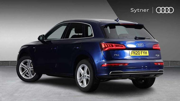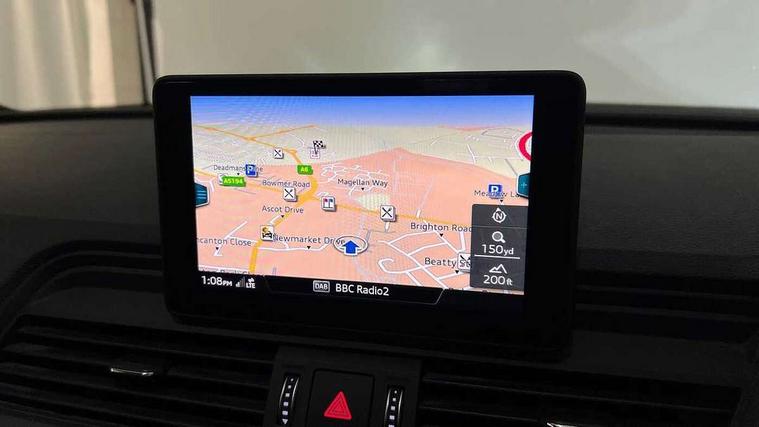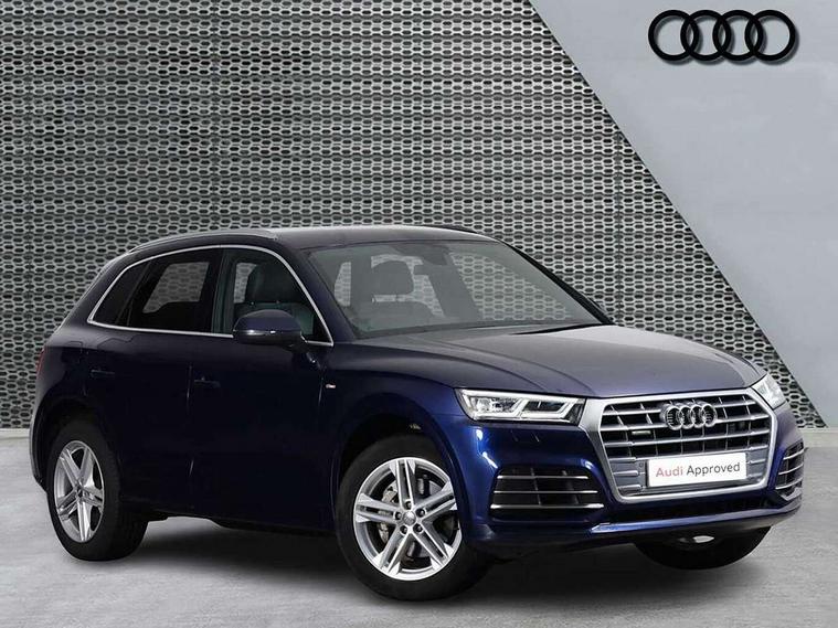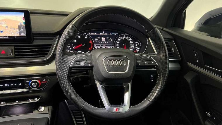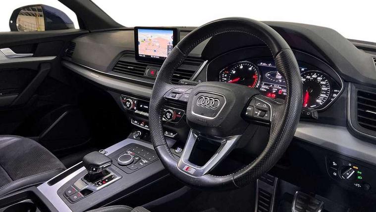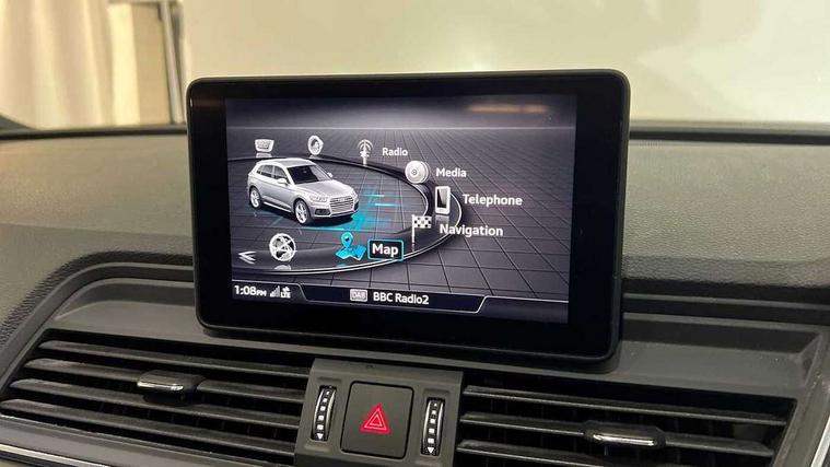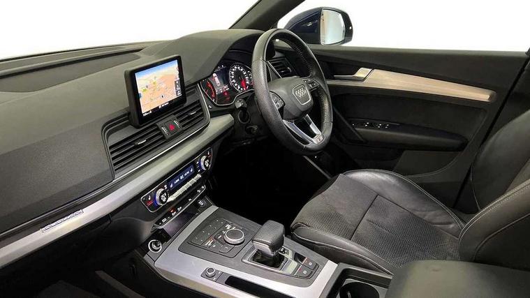 7" Colour driver information system, Audi connect safety and service (e-call), Audi drive select, Audi parking system plus with front and rear sensors, Audi Pre sense collision avoidance, Audi smartphone interface, Automatic start-stop system with coasting functionality and efficiency programme, Cruise control + speed limiter, Electro - mechanical power assisted steering, MMI Navigation, Mobile telephone preparation - bluetooth interface, Power tailgate, Service interval indicator, Voice control system, Diesel particulate filter, Dynamic suspension, Quattro on demand, 2 x USB charging port with aux input socket, 2x SD card slot, CD player, DAB Digital radio, MMI radio plus with 7" colour MMI screen and MMI controller, Acoustic windscreen, Air inlets in matt titanium black with blades in matt aluminium silver, Aluminium roof rails, Auto dimming rear view mirror, Automatic headlight levelling, Body colour bumpers, Body colour door mirrors, Body colour rear diffuser with matt aluminium silver surrounds, Body colour S Line side skirts, Body colour underbody protection, Chrome exhaust tailpipe, Electric adjustable/heated/folding door mirrors, Front and rear electric windows, High beam assistant, LED headlights with LED rear lights + dynamic rear indicators, Light and rain sensor for auto activation of lights and windscreen wipers, Loading sill protector in stainless steel, Privacy glass with front acoustic glazing, Rear wiper, S front and rear bumpers, S Line badges on the front wings, S Line rear spoiler, Twilight grey matt radiator grille with matt aluminium horizontal chrome struts, 3 rear headrests, 40:20:40 split folding rear seat with rear centre armrest, Black cloth headlining, Contrast stitching on seats, steering wheel and gear lever gaiter, Deluxe 3 zone electronic climate control, Front centre armrest, Front sport seats with S embossed logo, Front/rear floor mats, Heated front seats, Height adjustable front head restraints, Height/reach adjustable steering column, Illuminated door sill trims with S logo, ISOFIX child seat mounting and top tether, Luggage compartment carpet, Manual seat adjustment with 4-way electric lumbar support, Perforated leather gearknob, Removable luggage compartment floor, Stainless steel pedals, Sunvisors with vanity mirrors, Trunk roller cover, High gloss pack - Q5, LED interior light pack - Q5, Non Smokers pack, 3 point seatbelts on all seats, 6 airbags - Driver, front passenger, curtain and side airbags, Electromechanical parking brake, Electronic stabilisation control including ABS, ASR and EDL, Front passenger airbag deactivation, Hill descent control, Hill hold assist, Multi collision brake assist, Pop-up bonnet for pedestrian protection, Pre sense city, Seat belt force limiter, Seatbelt monitoring, Tyre pressure warning, Warning triangle and first aid kit, Anti theft alarm, Anti-theft wheel bolts, Keyless Go access/ignition system, Remote central locking, Matt brushed aluminium inlays, Tool kit,