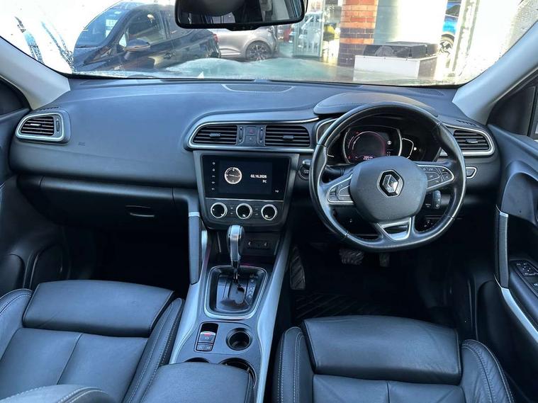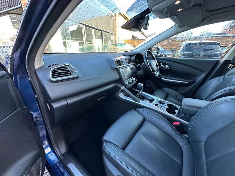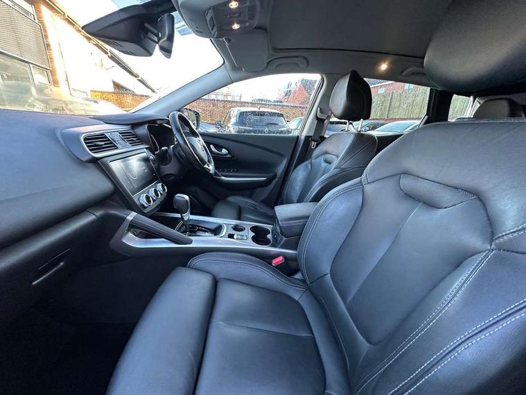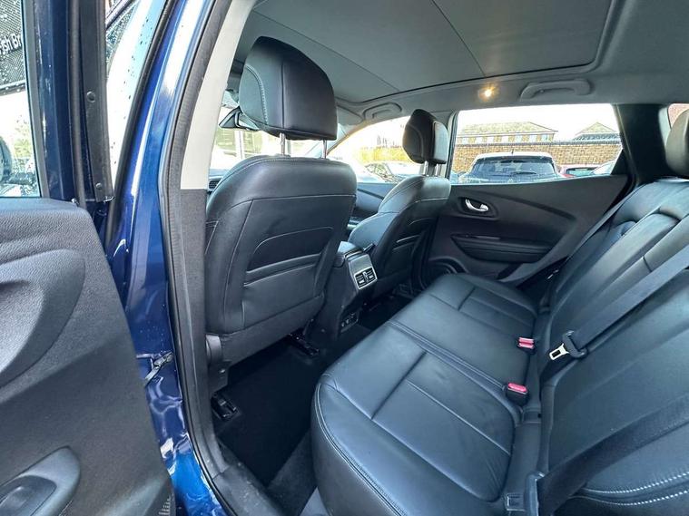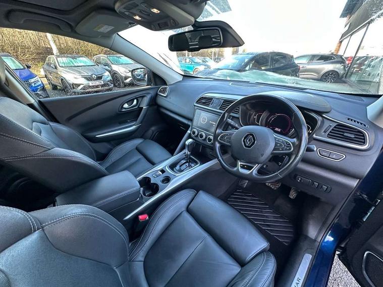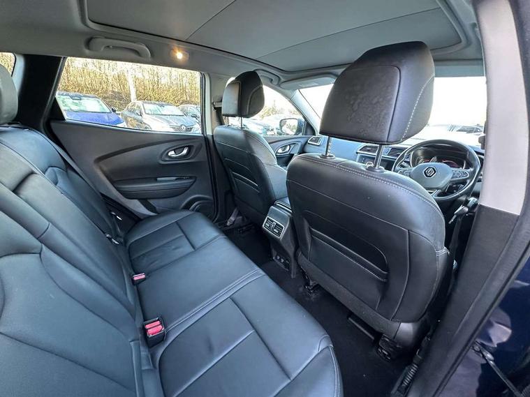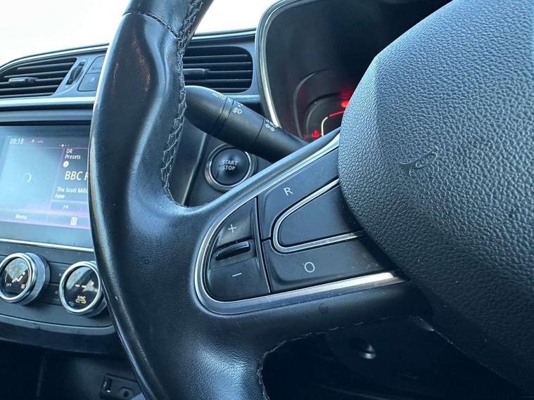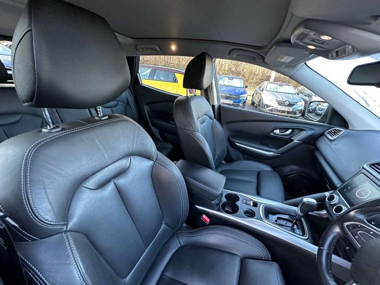 Blind spot warning with lateral sensors, Cruise control + speed limiter, Digital speedometer with 7 TFT screen, Door/boot open warning light, Eco mode, Exterior temperature indicator, Gear change indicator, Hands free parking system with 360 degree parking sensors, Lane departure warning system, Low fuel level warning light, Multi function trip computer, Oil level gauge, Over speed and traffic sign recognition, PAS, R-Link 2 Multimedia system + 7" touchscreen, TomTom + West European Map, DAB/FM/AM radio, bluetooth + hands free, USB/AUX, voice control, Rev counter, Smartphone integration with Apple CarPlay and Android auto, Gasoline particulate filter, Bose sound system with 7 speakers/digital amplifier + 1 Subwoofer, Fingertip controls for audio system, Two rear USB sockets, Adamantium front and rear skid plates, Auto dimming rear view mirror, Automatic headlights, Automatic high/low beam, Automatic windscreen wipers with variable speed adjustment, Body colour door handles, Body coloured bumpers, Body coloured door mirrors, Bodyside mouldings with chrome inserts, Chrome fog light surround, Chrome front grille, Chrome roof rails, Chrome window surround, Electric adjustable/heated/folding door mirrors, Extra tinted glass in rear windows and tailgate, Fixed panoramic glass sunroof, Flank protection, Front and rear electric windows, Front and rear towing rings, Heated rear windscreen, Integrated C shape indicators with side repeaters, Integrated fuel filler cap, LED daytime running lights, LED front fog lamps with cornering function, LED high and low beam headlights with LED turn indicators, LED rear fog light, Puddle lamps, Rear wiper, Shark fin antenna, Side and boot kick plates, 12V socket in front, 3 height adjustable rear headrests, 3 seat rear bench, 60/40 split folding rear seat, Accessory power point, Adjustable dashboard illumination, Air recirculation system, Centre rear armrest with cup holder, Driver and front passenger seat cushion extension, Driver sunblind with illuminated mirror and ticket holder, Driver's seat with lumbar adjustment, Driver/passenger reading lights, Dual zone automatic climate control, Easy life quick folding rear seat, Electric adjust driver's seat, Front courtesy lights, Front footwell illumination, Front/rear floor mats, Heated front seats, Height adjustable front headrests, Height adjustable passenger seat, Height/reach adjust steering wheel, Illuminated boot, Illuminated centre console, ISOFIX child seat anchorage points attached on outer rear seats, Leather steering wheel, Multi positional boot floor, Pollen filter, Rear courtesy lights, Rear passenger air vents, Sliding front centre armrest, Storage glovebox, 3 point inertia reel seatbelts, ABS/EBD, Active emergency braking system, Driver/passenger 2 stage auto adaptive airbags, Electronic parking brake, ESP with ASR and UCL (understeer control logical), Front and rear curtain airbags, Front lateral airbags, Front seat belts warning, Height adjustable front seatbelts with double pretensioners, Hill start assist, Manual passenger airbag deactivation function, Protective rear disc brake, Rear seatbelt warning indicator, Side impact protection, Three point rear center seatbelt, Traction control, Tyre pressure monitor, Deadlocks, Insurance approved Cat 1 alarm system, Insurance Approved Immobiliser, Key card hands free with walk away lock function, RAID (Renault Anti-Intruder Device) with automatic door locking, Remote central locking, 19" Poseidon diamond cut alloy wheels,