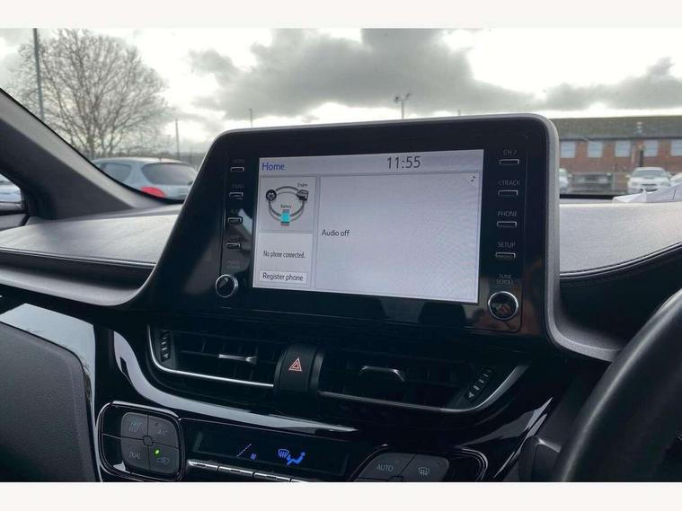 4.2" coloured TFT screen for multi-information display, Adaptive cruise control, Bluetooth connectivity, E-call, Electric power steering, Hybrid system indicator, Lane departure alert with steering control, Lane trace assist, Push button start, Push button tailgate release, Remote boot door release in cabin, Remote boot door release in key, Reversing camera, Road sign assist - RSA, Smart voice assist, Trip computer, Voice recognition, Vehicle Stability Control (VSC), 6 speakers, AM/FM radio, DAB Radio (Digital Audio Broadcasting), Toyota touch 2 multimedia system with 8" display, USB connector, Wi-fi connectivity, Anti-jam protection on power windows, Auto high beam, Auto up and down function on all power windows, Automatic headlights, Automatic headlights cut-off, Black and body coloured rear bumper, Black lower front grille, Black upper front grille, Body colour door handles, Body colour door mirrors, Body colour front spoiler lip, Body coloured front bumper, Boot door release with push button, Electric heated door mirrors, Follow me home headlights, Front and rear power windows, Front fog lights, Headlight cut off reminder, Honeycomb lower front grille, LED daytime running lights, LED High mounted stop light, LED rear brake lights, LED rear combination lights, Manual headlight levelling, Manually retractable door mirrors, Noise reduction layer on front windows and windscreen, Power adjustable door mirrors, Rear side wing doors, Rear spoiler, Rear tailgate, Rear window defogger, Rear window wiper, Reflective LED headlights, Shark fin antenna, UV-filter on driver and passenger windows, UV-filter on rear windows, 12v power outlet - front, 3 rear headrests, 3 seat bench in 2nd row, 3 spoke leather steering wheel, 60/40 split folding rear seat, Adjustable rear headrests, Adjustable speed limiter switch on steering wheel, Assist grips front and centre pillar, Audio and telephone switches on steering wheel, Black front door assist grips, Boot light, Chrome interior door handles, Cloth upholstery, Driver and front passenger personal light, Driver and front passenger Whiplash Injury Lessening seats, Dual zone automatic air conditioning, Floor mats, Front cupholders, Front head restraints, Front sports seats, Glovebox with internal light, Hard tonneau cover, Hooks for luggage holding net, Humidifying Nanoe air purifier, Illuminated entry system, Isofix attachments on outer rear seats, Leather gearshift, Light on driver sun visor, Light on passenger sun visor, Manual telescopic steering wheel, Manual tilt steering wheel, Manually adjustable lumbar support on driver seat, Manually height adjustable driver seat, Manually height adjustable front passenger seat, Manually reclining driver seat, Manually reclining front passenger seat, Manually sliding driver seat, Manually sliding front passenger seat, Microphone on front personal light, Mirror on driver sun visor, Mirror on passenger sun visor, Multimedia switches on steering wheel, Pollen filter, Shopping bag hooks, Single front passenger seat, Slow opening on lower glovebox, Voice recognition switch on steering wheel, 16 Disk front wheel brake, 3x3 point rear seatbelts, ABS+EBD+Brake assist, Electronic parking brake, Front and rear seatbelt reminder, Front passenger airbag on/off switch, Hill start assist control (HAC), Pre collision system with pedestrian detection, Pre-tensioners and force limiters, Rear door child safety locks, SRS Airbags - Driver + Front passenger, front side, front and rear curtain and driver's knee airbags, Toyota safety sense, Tyre pressure monitoring system, Tyre pressure warning system, Acoustic vehicle alert system (AVAS), Glass-breaking alarm sensors, Immobiliser, Intrusion alarm, Intrusion sensor, Motion sensor alarm, Power door locks, Power passenger window lock, Remote central locking, Black lower dashboard, Black upper dashboard, Grey deco line on upper dashboard, Matte black centre console, Tyre repair kit,
