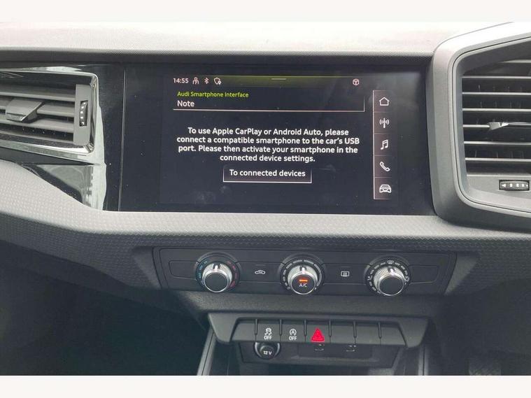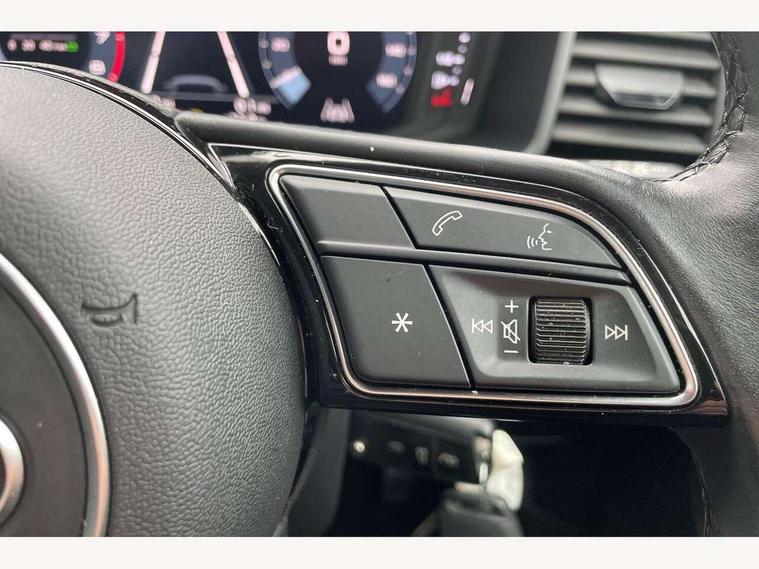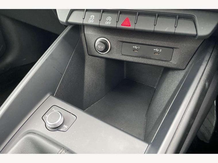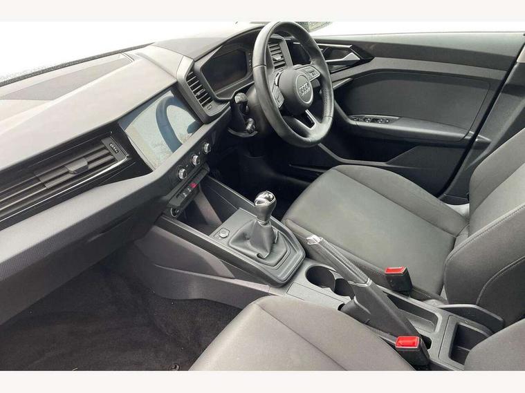 10.25" Digital instrument cluster display classis style instrument dials + speed, odometer, time, outside temperature, telephone menu + fuel level warning, Audi connect safety emergency and service including E-call, Audi smartphone interface with connect compatible smartphone via USB directly MMI display + Nav, music, third party apps controlled via MMI controller, Automatic start/stop system, Bluetooth interface, Driver's information system, Electromechanical power steering, Lane departure warning system, Service interval indicator, Speed limiter, Voice control system, Washer fluid level indicator, Dynamic suspension, 1 x SDXC card reader, 2 x USB type C connection points, 6 passive loudspeakers, DAB Digital radio, MMI radio plus with 8.8" colour MMI display screen and MMI touch, Auto dimming rear view mirror, Body coloured bumpers, Body coloured door mirrors, Electric front and rear windows, Electrically adjustable, heated, folding door mirrors with integrated LED side indicator, Front side air inlets with front spoiler lip and rear diffuser in matt black grained, Heat insulating glass windscreen and side windows, Heated rear windscreen, LED headlights with LED rear lights + dynamic rear indicators + headlight adjustment and high beam, turning light + LED daytime running lights, Radiator grille in matt black, Rain and light sensors, Rear fog lights, Rear wiper, 12V socket in centre console with two cup holders, 3 rear seats with headrests, 3 spoke leather multifunction plus steering wheel, 40:60 Split folding rear seat or folded fully, Air vents, door handle recesses and centre console in black, Delta cloth upholstery, Driver and passenger seat with manual height adjust with forward and backwards adjustment, Front head restraints, Front/rear floor mats, ISOFIX child seat mounting for front passenger and outer rear seats including top tether attachment point of outer rear seats, Leather gear knob with aluminium trim, Leatherette handbrake grip, Luggage compartment light with front and rear reading lights, Manual air conditioning, Titanium grey cloth headlining, Luggage compartment pack - A1, 3x3 point rear seatbelts, Audi pre-sense front with pedestrain and cyclist recognition, Brake assist function, Driver and front passenger airbag with front side and head airbags, Electronic Stability Control including ABS, EBD, ASR and EDL, Front and rear seatbelt reminder, Front passenger airbag deactivation switch, Hill hold assist, Seatbelt height adjustment for front seats, Seatbelt monitoring, Tyre pressure warning light, Warning triangle and first aid kit, Anti theft alarm, Anti theft wheel bolts and loose wheel warning, Immobiliser, Remote central locking with 2 foldaway keys, Black inlays polygon structure, 15" 5 arm design alloy wheels,