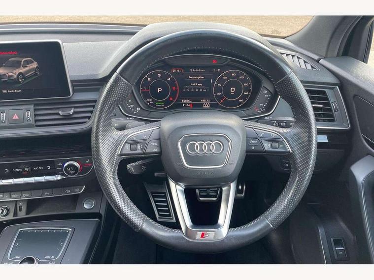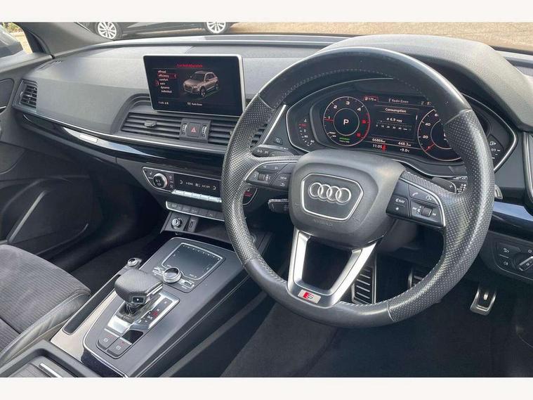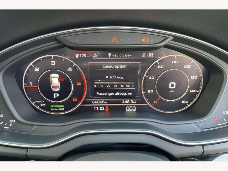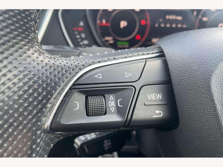 Audi connect, Audi drive select, Audi smartphone interface, Driver information centre with colour display in instrument panel, Electric power steering, Power tailgate, Remote electric boot opening/closing, SD card based MMI navigation, Service interval indicator, Voice control system, Diesel particulate filter, 2 USB ports, Audi sound system, Auxiliary input socket, CD player, DAB Digital radio, MMI radio plus with 7" colour MMI screen and MMI controller, Acoustic windscreen, Aluminium roof rails, Aluminium sill plates, Auto dimming rear view mirror, Black high gloss front air inlet in matt aluminium effect, Body colour bumpers, Body colour door mirrors, Body colour rear diffuser insert, Chrome exhaust tailpipe, Electric headlight adjustment, Electrically adjustable and heated door mirrors, Front and rear electric windows, Front fog lights, Headlight range control, Headlight washers, Honeycomb side air inlet in titan black, Light and rain sensor for auto activation of lights and windscreen wipers, Loading sill protector in stainless steel, Privacy glass with front acoustic glazing, Rear diffuser strip in matt aluminium silver, Rear spoiler, Rear wiper, S Line side skirts, Selenite silver underbody guard, Twilight grey matt radiator grille with matt aluminium horizontal chrome struts, 3 rear headrests, 3 zone climate control, 4 way electric lumbar support for driver and front passenger, 40:20:40 split folding rear bench seat, Black cloth headlining, Front centre armrest with 12v socket, Front sports seats, Front/rear floor mats, Height adjustable driver's seat, Height adjustable front head restraints, Illuminated door sills, Isofix front passenger and rear seat preparation, Jack and tool kit, Load compartment cover, Luggage compartment carpet, Matt selenite silver door inserts, Perforated leather gearknob, Reach + rake adjustable steering column, Removable luggage compartment floor, Removable net partition, Roller blind loadspace cover, Stainless steel pedals, Sunvisors with vanity mirrors, Non Smokers pack, 3 point seatbelts on all seats, ABS, Curtain airbags, Driver and passenger airbags, Driver and passenger side airbags, Electromechanical parking brake, ESC with ASR, ESP, First aid kit, Front passenger airbag deactivation, Hill descent control, Seat belt force limiter, Seatbelt warning lamp, Traction control, Tyre pressure monitor, Warning triangle, Keyless Go access/ignition system, Locking wheel bolts, Remote central locking, Thatcham category 1 alarm + immobiliser, Contrast stitching,