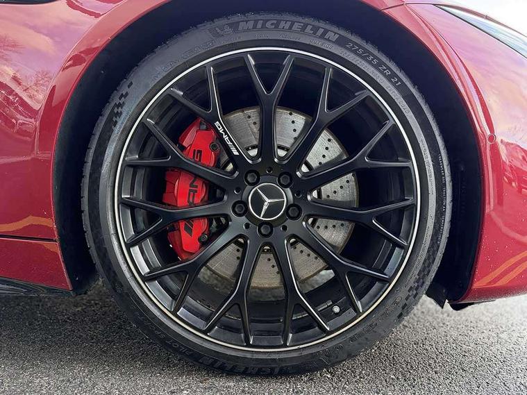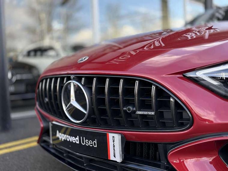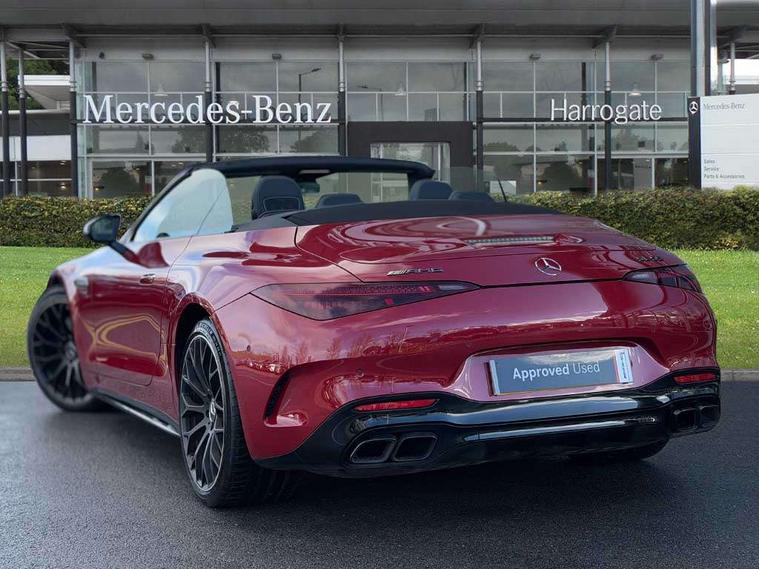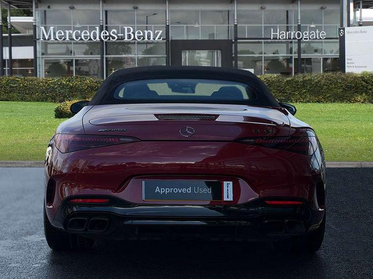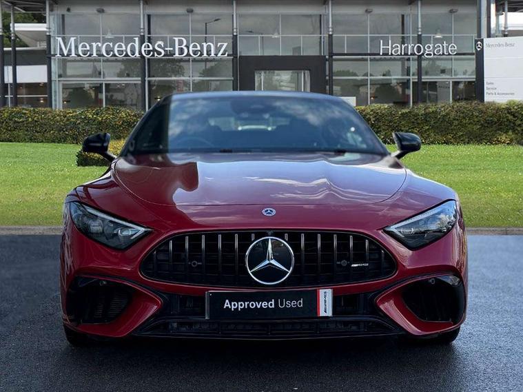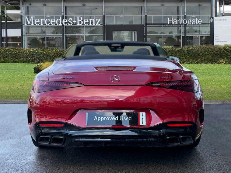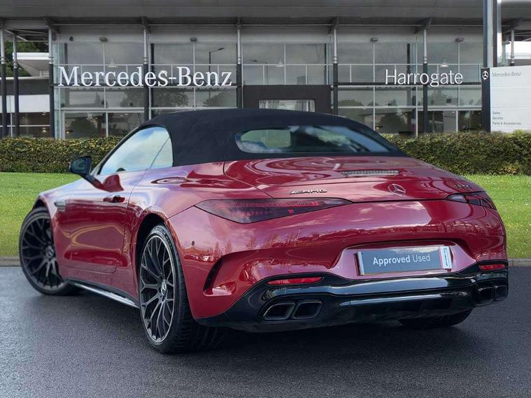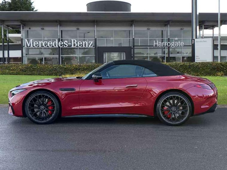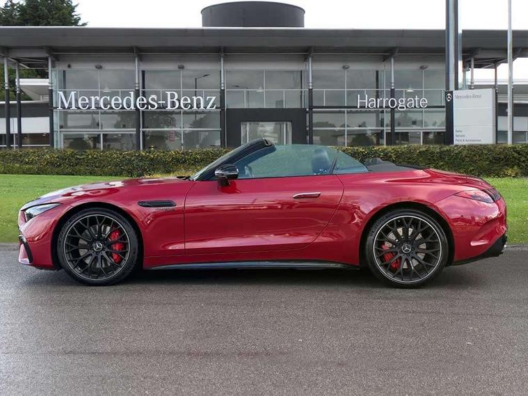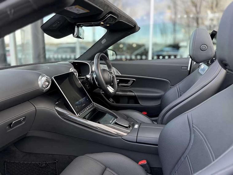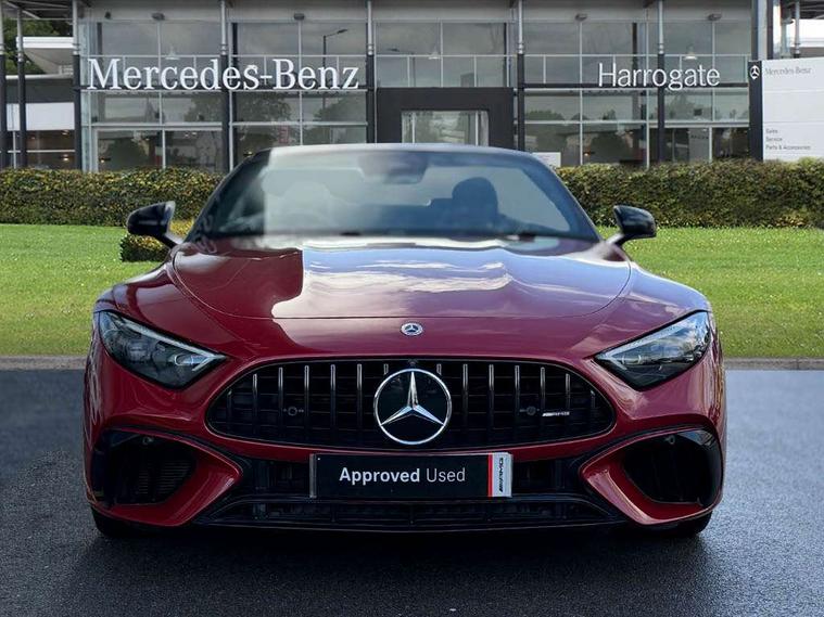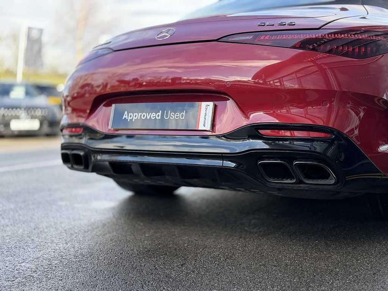 AMG track pace, Attention assist, Bluetooth interface for hands free telephone, Central display, Cruise control, Driver display, Fingerprint scanner, Head up Display, Lane keeping assistant (LKA), MBUX augmented reality for navigation, MBUX Interior assistant, MBUX navigation premium, Mercedes-Benz emergency call system, Outside temperature gauge, PAS, Rear axle steering, Remote Services Premium, Service indicator (ASSYST), Smartphone integration with Apple CarPlay, Traffic sign assist, Trip computer, USB adapter cable, Wireless charging system for mobile devices in the front, AMG Ride Control suspension, AMG SPEEDSHIFT MCT 9-speed automatic sports transmission, Burmester surround sound system, DAB Digital radio, 2 Electric windows, 3rd brake light, Adaptive high beam assist plus, AMG body styling, AMG boot lid spoiler in body colour, AMG illuminated door sills with AMG lettering and with exchangeable cover, AMG Light Display - The projector fitted in the side skirts casts AMG lettering onto the asphalt, AMG Real Performance Sound, AMG spoiler lip, Automatic headlights, Body colour bumpers, Darkened headlamps and tail lights, Digital light headlamps, LED daytime running lights, Magic vision control, Model badge on boot lid and wings in high-gloss black, Radiator fins painted black, Rain sensor windscreen wipers, Rear boot, 2 cup holders in front, 2 individual rear seats, Airscarf - neck level heating, AMG Performance steering wheel in nappa leather, AMG steering wheel buttons, Front gesture control, Heated front seats, Neck-pro front headrests, Single front passenger seat, Steering wheel heating, THERMOTRONIC automatic climate control, AMG Night pack - SL Class, AMG Night pack II - SL Class, Energizing pack plus - SL Class, Load compartment pack - SL Class, Memory package - SL Class, Mirror pack - SL Class, Parking pack - SL Class, USB pack plus - SL Class, ABS, Active pedestrian safety system, AMG high performance compound brake system, Automatic roll over protection, Driver and passenger head and side airbags, Dual stage driver/passenger airbags, Electronic parking brake, ESP with ASR, Hill hold function, Manual passenger airbag deactivation function, Pedestrian protection, Red painted brake calipers, Tyre pressure monitoring system, Warning triangle and first aid kit, Keyless go with seemless door handles, KEYLESS-GO starting function, Remote central locking, Urban guard vehicle protection plus, AMG carbon fibre trim, 21" AMG multi-spoke light alloy wheels painted in matt black, Summer tyres, Tyre sealant kit,