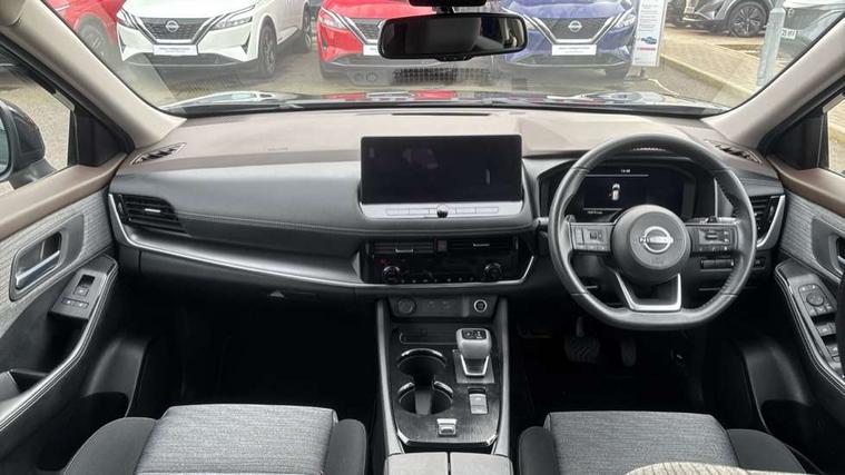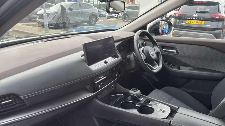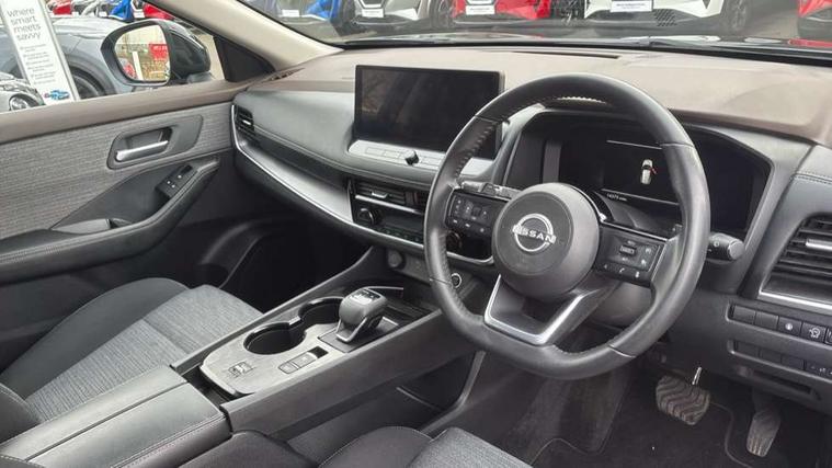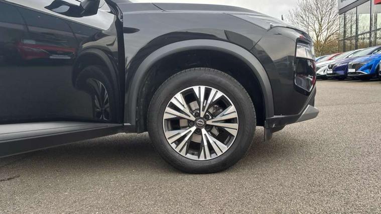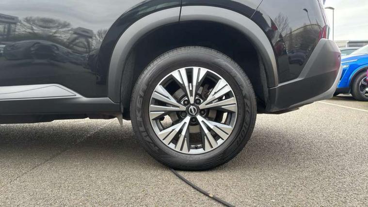 Android auto/Apple CarPlay (Wired), Blind spot warning, Drive modes (sport, normal, eco), Electric speed sensitive power steering, Emergency and breakdown call, Front and rear parking sensors, Full Digital 12.3" TFT Digital Combimeter, Google maps services - search, weather, 3D maps and Google street view, Idle stop/start system, Intelligent around view monitor, Intelligent Cruise control (ICC), Intelligent driver alert system, Intelligent forward collision warning, Intelligent lane departure warning, Intelligent lane intervention, Intelligent lane keep assist, Maximum speed limiter, Moving object detection, Nissan connect 12.3 inch touchscreen infotainment system, Nissan connect nav with TomTom traffic, Push button starter, Rear cross traffic alert, Rear view camera, Remote control services - door locks, lights, horn and car locator, Telematics - notifications and connectivity services, TomTom live traffic services, Traffic sign recognition with legal speed adjustment, Trip computer, Virtual personal assistant and firmware over the air capability, Wireless apple carplay, Wireless charging pad, 6 speakers, AM/FM audio system with DAB, Bluetooth audio streaming, Front USB connections (Type-A and Type-C), Rear USB charging only ports (Type-A and Type-C), 3rd brake light, Auto dimming rear view mirror, Auto rear wiper when reversing, Body colour mirror caps, Body coloured door handles, Bodyside mouldings, Chrome side window finisher, Electric auto folding door mirrors, Electrically adjustable and heated door mirrors, Follow me home headlights, Headlights auto levelling system, High beam assist, Intelligent auto headlights, LED daytime running lights, LED Headlights, LED rear lights, One touch front and rear electric windows with remote opening and closing, Partially body coloured bumpers, Rain sensing wipers, Rear privacy glass, Rear reversing light (bulb lighting), Rear roof spoiler, Rear side wing doors, Rear styling plate, Shark fin antenna, Splash free wipers, Super UV and infrared cut glass, Three blink turn signal, 12v power socket in dashboard and luggage, 3 bench rear seats in 2nd row, 3 rear headrests, 60/40 split folding rear seat bench, Butteryfly console, Chrome interior door handles, Cloth monoform upholstery, Driver and front passenger sunvisors with illuminated vanity mirrors, Driver seat back pocket, Dual zone automatic climate control with pollen filter, Front centre console and armrest, Front cupholders, Front door with bottle holders, Height adjustable driver's seat, Height adjustable front headrests, Height adjustable passenger seat, Leather shift knob, Leather steering wheel, Luggage board system, Luggage space lighting, Multifunction steering wheel, Passenger seat back pocket, Rear armrest with 2 cupholders, Rear door bottle holders, Single front passenger seat, Tilt/telescopic adjustable steering wheel, Two rear isofix child seat anchorage points with top tether, 3x3 point rear seatbelt pretensioners + load limiters, ABS with EBD and brake assist, Active brake limited slip, Auto hold function, Child locks on rear doors, Curtain and front side, far side airbags, Driver and passenger airbags, Driver, passenger and 2nd row rear seat belt reminder, Electronic parking brake, Front seatbelt pretensioners + load limiters, Height adjustable front seatbelts, Hill start assist, Intelligent blind spot intervention, Intelligent front emergency braking with pedestrian, cyclist recognition and junction assist, Intelligent rear automatic braking, Tyre pressure monitoring system, Vehicle dynamic control, Engine immobiliser, Intelligent Key, Remote central door locking with deadlocking, Thatcham Cat.1 alarm, 18" Diamond cut alloy wheels, Tyre puncture repair kit,