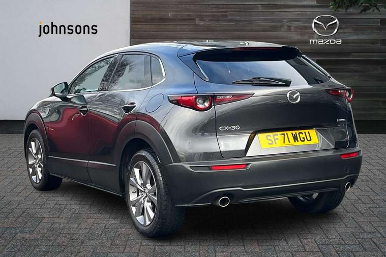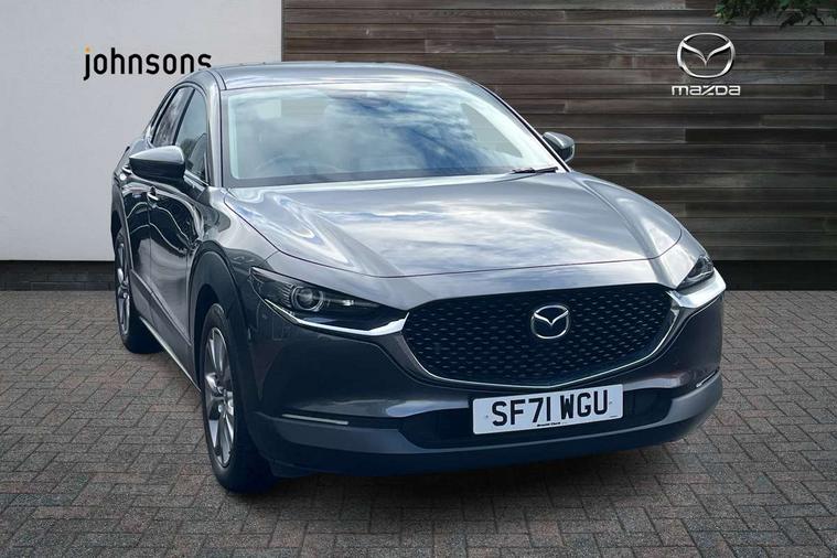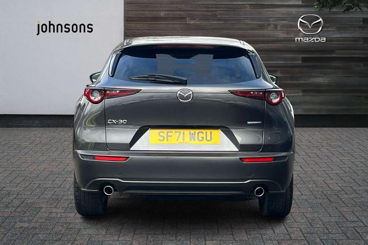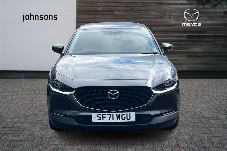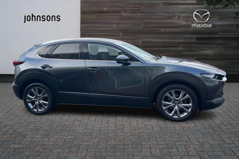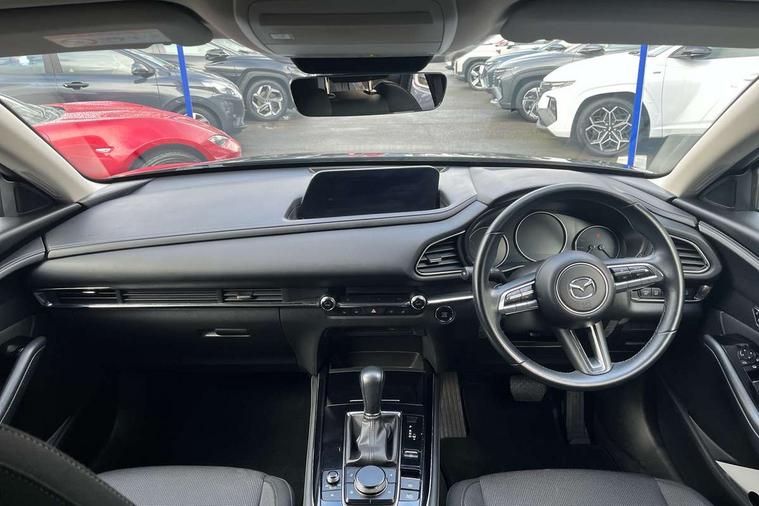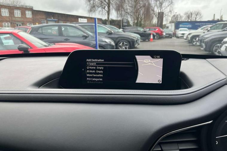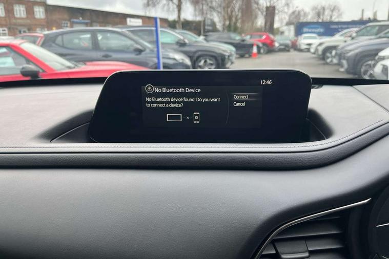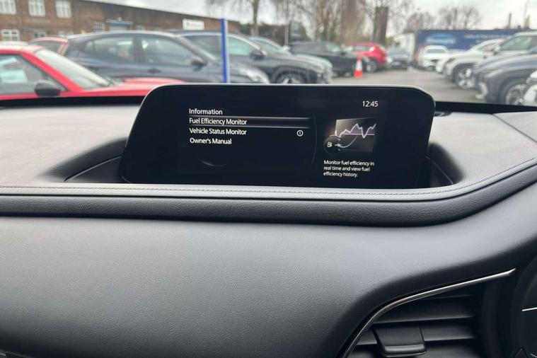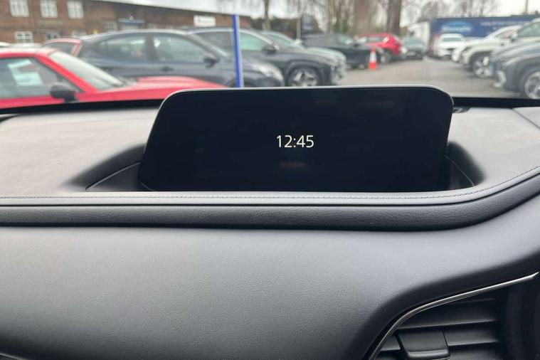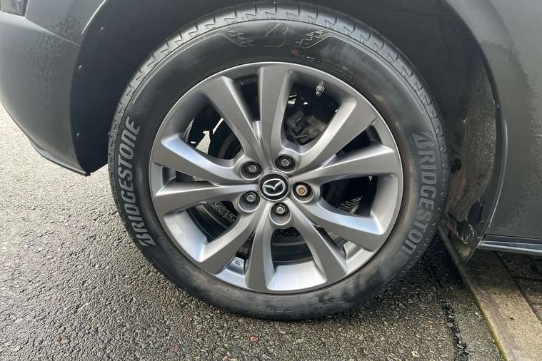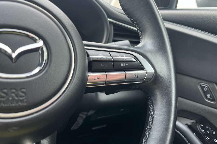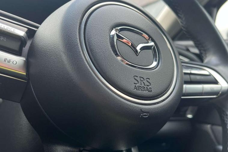 7" TFT Colour driver instrument panel display, 8.8" Colour centre touch screen display with Mazda Connect infotainment, Adaptive cruise control (Mazda radar cruise control) features stop and go, Apple car play/Android Auto, Blind spot monitoring with rear cross traffic alert, Drive mode selector, Driver attention alert system, E-call with GPS, Emergency stop signalling system, Engine start/stop button, Front and rear parking sensors, Integrated bluetooth, Integrated Mazda navigation system, Intelligent speed assist, Lane keep assist system (LAS) with Lane departure warning system (LDWS), Mazda connected services, PAS, Power lift gate, Reversing camera, Service indicator, Traffic sign recognition, Trip computer, Cylinder Deactivation, i-stop, 2 USB charging ports in front inner central armrest, AM / FM / DAB radio with 8 speakers, Multimedia Commander including separate volume dial, Steering wheel mounted audio/bluetooth controls, Adaptive LED Headlights, Auto dimming driver's door mirror, Auto headlight levelling, B-pillar and C-pillar garnishes in piano black finish, Body coloured, electrically adjustable, heated auto power folding door mirrors with integrated indicators, Chrome finish signature wing in front grille, Coming/leaving home lighting function, Dual chrome exhaust, Dusk sensing headlights, Electric front/rear windows with one touch auto up/down, Frameless auto dimming interior rear view mirror, Front kodo turn signal, Gloss black front grille, Gloss black rear roof spoiler, High beam assist, LED signature daytime running lights, Privacy glass (rear side windows and rear screen), Rain sensing front wipers with adjustable speed and intermittent wipe, Rear fog lights, Rear wiper, Signature LED rear combination lights, 12V power outlet in centre console, 60/40 split fold down rear seats, Chrome horn pad ring, Chrome interior trim accents with steering wheel centre bezel, surround of engine start / stop button and glove box handle, Cloth upholstery with interior accents, Dark cloth door panel inserts, Dashboard, door cards and front centre armrest in black cloth, Driver and front passenger visors with covered vanity mirror and driver ticket holder, Driver seat manual slide, recline, height and seat tilt adjust, Driver, front passenger and two rear door storage, Driver, Front passenger and two rear grab handles with coathooks, Dual zone climate control air conditioning with rear air vents, Folding rear centre armrest with two cup holders, Front and rear (x3) head restraints, Front and rear LED lighting, Front armrest, Front centre storage with two cupholders with lid, Front passenger seatback pockets, Front passengers seat manual slide, recline and height adjustment, Glovebox illumination, Heated front seats with 3 stage setting, ISOFIX child seat anchorage points attached on outer rear seats, Leather wrapped gear shift knob, Leather wrapped steering wheel with telescopic and tilt adjustment, LED luggage compartment lighting, Light roof headlining and pillars, Paddle shift controls, Roof mounted sunglasses holder, 3 point ELR front seat belts x2 with pretensioners, 3 point ELR rear seat belts, Anti-lock braking system (ABS), Drivers knee airbag, DSC - Dynamic Stability Control, Electronic parking brake with auto disengage function and auto hold function, Front and rear curtain airbags, Front dual stage driver and single stage front passenger airbags, Front passenger airbag cut-off switch, Front side airbags, Front smart city brake support, G-Vectoring control plus, Hill launch assist, Mild Hybrid system with regenerative braking, Seatbelt reminder for driver/front passenger and rear seats, Traction control system (TCS), Tyre pressure monitoring system (TPMS), Remote central locking with deadlocking and automatic door lock when driving, Smart keyless entry, Thatcham accredited alarm and immobiliser, 18" Silver alloy wheels, Emergency tyre repair kit,