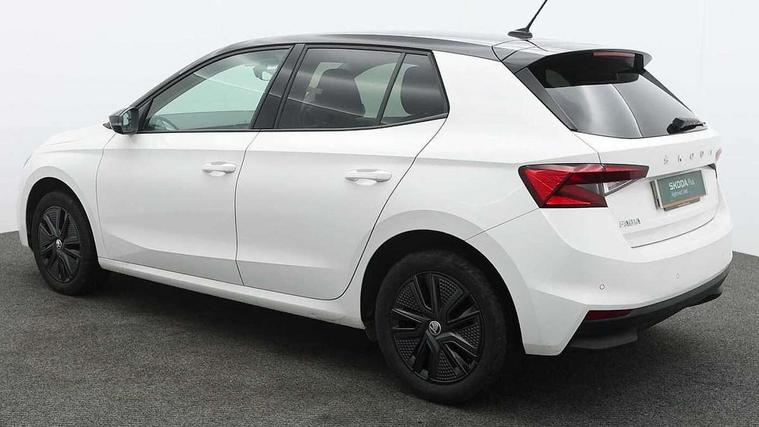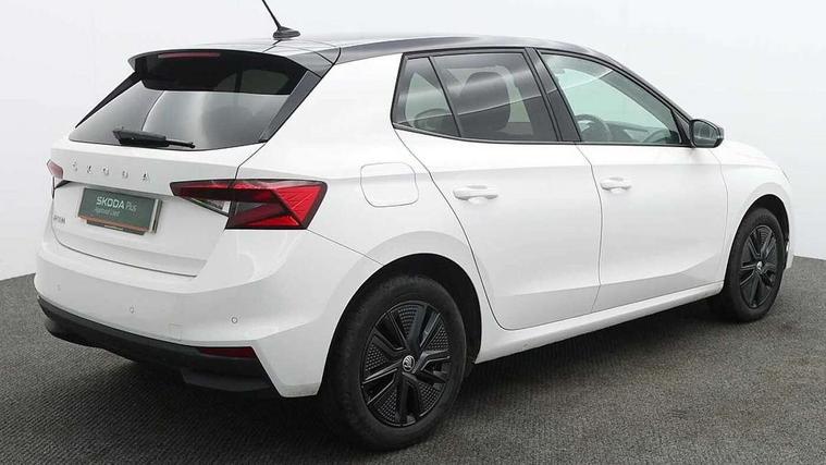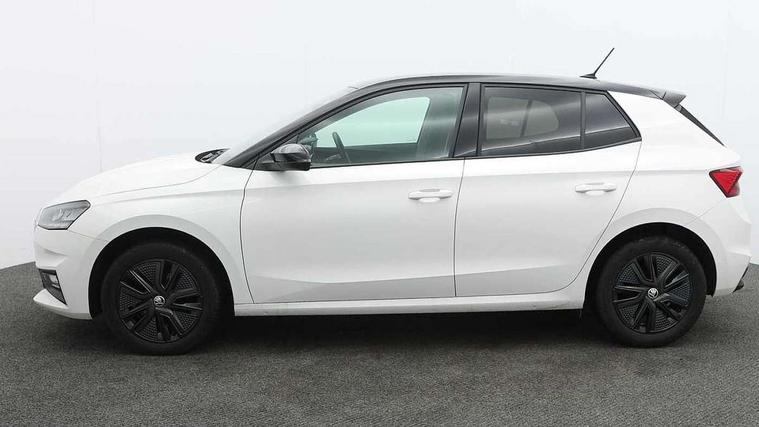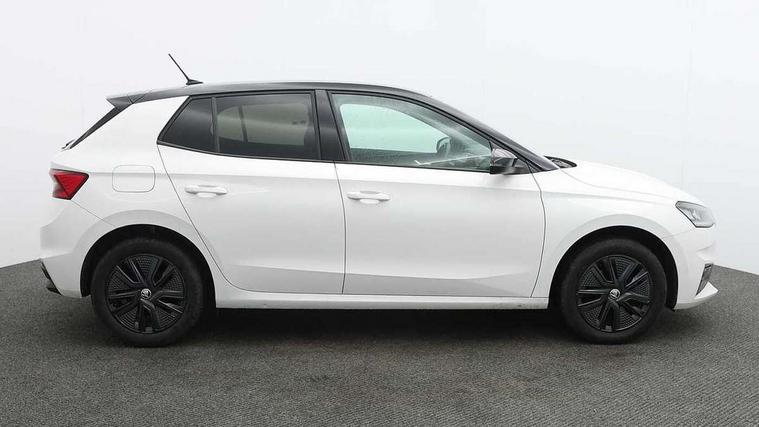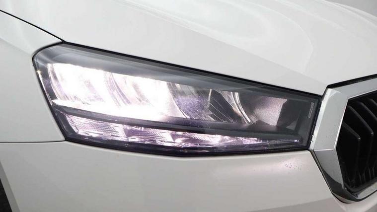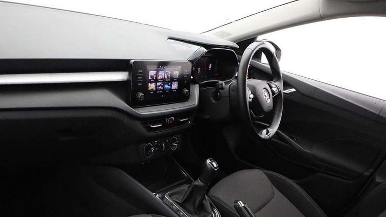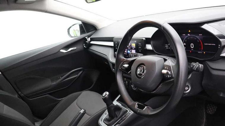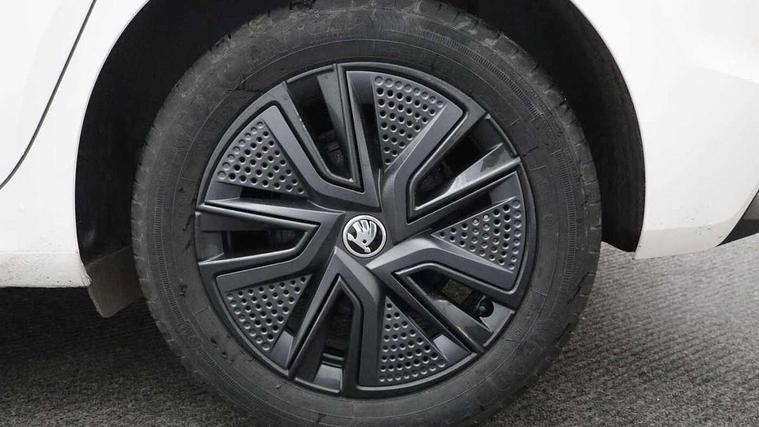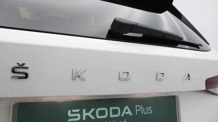 Bluetooth connection, Driver alert system - DAS, Electromechanical power steering, Exterior temperature gauge, Lane assist including road edge detection, Service interval indicator, Virtual cockpit with 10.25" colour display, 2x USB-C in the front (for data transmission and charging), 6 Speakers (4 in front and 2 in rear), Auxiliary socket for external MP3 player, Bolero radio with 8" colour display, DAB digital radio reception, Basic rear lights, Body coloured bumpers, Dimming rear view mirror with black frame, Door mirror integrated indicators, Electrically adjustable and heated door mirrors, Electrically adjustable front windows with function auto up/down, Front window wiper intermittent control, Headlight range control - Automatic, Ice scraper in fuel cap, LED daytime running lights with coming and leaving home feature, Mechanical adjustable rear windows, Privacy glass, Rear LED fog light, Rear side wing doors, Rear window wiper with washing nozzles, Roof mounted spoiler, SKODA tailgate lettering in chrome, Third brake light, 3 rear headrests, Backrest split and folding, Central console with fixed cup holder and storage box, Chrome handbrake release button, Fabric upholstery, Gearshift knob/handle in leather, Grain satin black interior door handles, Hand brake lever handle in leather, Height adjustable front headrests, Height adjustable steering wheel, ISOFIX and TopTether anchorage points to the outer rear seats, ISOFIX and TopTether on the front passenger seat, Luggage compartment lighting, Pollen filter, Rear seat bench unsplit, Single front passenger seat, Storm grey headlining, Sun visors with mirror and airbag label on passenger side, Ticket holder, Umbrella in drivers door, 3-point height adjustable front seats belts with pretensioner and force limiter, Automatic warning lights in case of crash, Driver and passengers airbag with switch off function, e-Call+, ESC including ABS, MSR, ASR, EDS, HBA and XDS, Front and rear seat belt warning, FRONT ASSIST (AEB City and AEB Inter Urban), Front side airbags, Head airbags, One tone horn, Pedestrian protection, Three rear 3-points safety seat belts with pretensioner and force limiter including stop function for outer rear seat belts, Tyre pressure monitoring system, Anti-theft alarm system including immobiliser, interior monitoring, backup horn, and towing protection, Anodized cross line upper decorative trim, Colour Edition air vents, Grain satin black central console cover, Grain satin black lower decorative trim, Satin black door and side trim panel in front, Anti-theft wheel bolts protection, Super-low rolling resistance tyres,