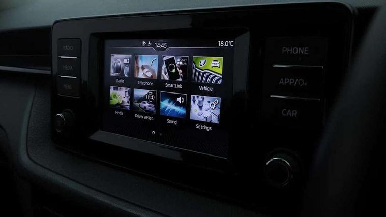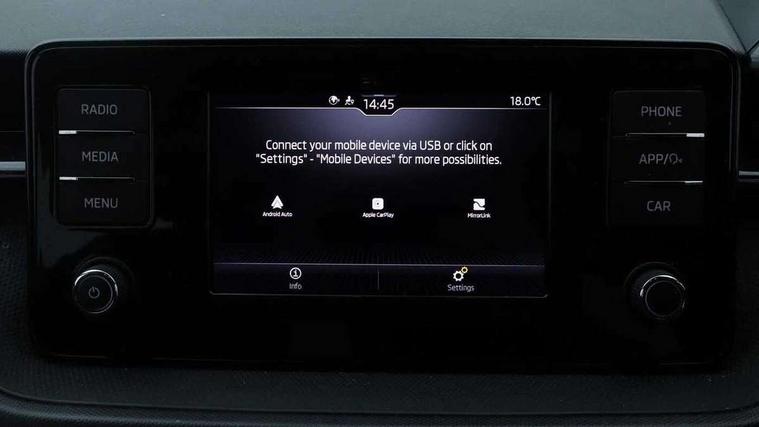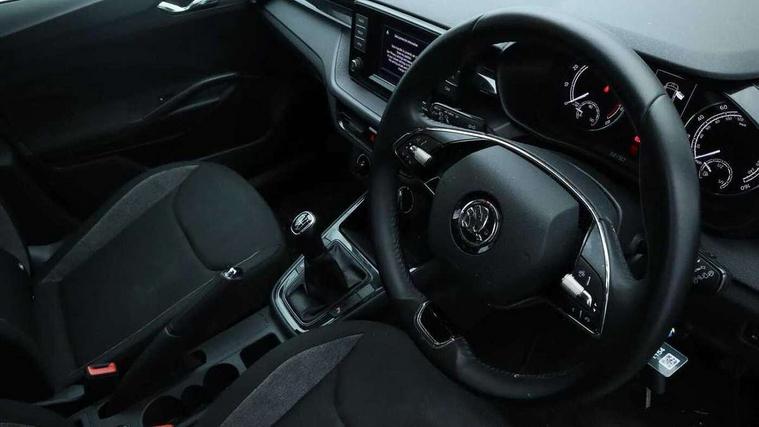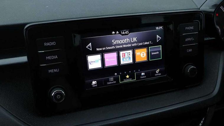 Bluetooth connection, Driver alert system - DAS, Electromechanical power steering, Exterior temperature gauge, Lane assist including road edge detection, Multifunction trip computer in black and white, Service interval indicator, Speed limiter, 2x USB-C in the front (for data transmission and charging), 4 speakers in front, Auxiliary socket for external MP3 player, DAB digital radio reception, Radio Swing with 6.5" colour display, Basic LED Headlights, Basic rear lights, Body colour door mirrors, Body coloured bumpers, Dimming rear view mirror with black frame, Door mirror integrated indicators, Electrically adjustable and heated door mirrors, Electrically adjustable front windows with function auto up/down, Front fog lights, Front window wiper intermittent control, Headlight range control - Automatic, Ice scraper in fuel cap, LED daytime running lights with coming and leaving home feature, Mechanical adjustable rear windows, Rain sensor, Rear LED fog light, Rear side wing doors, Rear window wiper with washing nozzles, Roof mounted spoiler, SKODA tailgate lettering in chrome, Third brake light, 2 reading lights in front and 2 reading lights in rear, 2 spoke leather multifunction steering wheel, 3 rear headrests, Backrest split and folding, Central console with fixed cup holder and storage box, Chrome handbrake release button, Fabric upholstery, Gearshift knob/handle in leather, Grain satin black interior door handles, Hand brake lever handle in leather, Height adjustable front headrests, Height adjustable front seats, Height adjustable steering wheel, ISOFIX and TopTether anchorage points to the outer rear seats, ISOFIX and TopTether on the front passenger seat, Luggage compartment lighting, Manual air conditioning, Manually adjustable lumbar support in front seats, Pollen filter, Rear seat bench unsplit, Single front passenger seat, Storm grey headlining, Sun visors with mirror and airbag label on passenger side, Ticket holder, 3-point height adjustable front seats belts with pretensioner and force limiter, Automatic warning lights in case of crash, Driver and passengers airbag with switch off function, e-Call+, ESC including ABS, MSR, ASR, EDS, HBA and XDS, Front and rear seat belt warning, FRONT ASSIST (AEB City and AEB Inter Urban), Front side airbags, Head airbags, One tone horn, Pedestrian protection, Three rear 3-points safety seat belts with pretensioner and force limiter including stop function for outer rear seat belts, Tyre pressure monitoring system, Anti-theft alarm system including immobiliser, interior monitoring, backup horn, and towing protection, Central locking with radio remote control, interior controls, SAFE function and 2 foldable keys, Black painted air vents, Glossy black decorative trim, Grain satin black central console cover, Grain satin black lower decorative trim, Satin black door and side trim panel in front, Anti-theft wheel bolts protection, Super-low rolling resistance tyres,