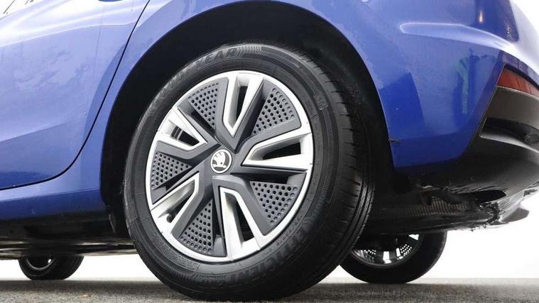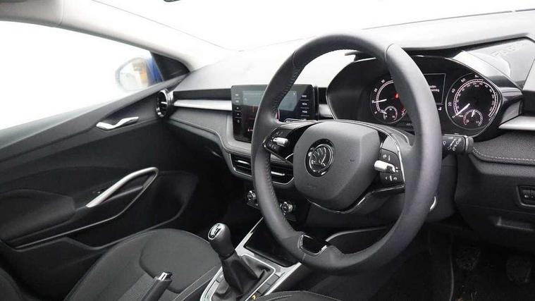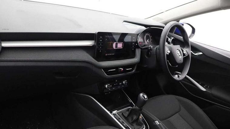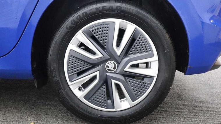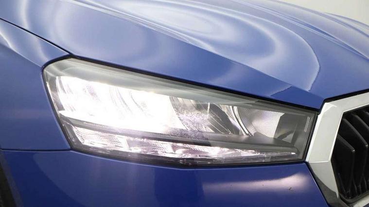 Bluetooth connection, Driver alert system - DAS, Electromechanical power steering, Exterior temperature gauge, Service interval indicator, 2x USB-C in the front (for data transmission and charging), 6 Speakers (4 in front and 2 in rear), Auxiliary socket for external MP3 player, DAB digital radio reception, Web radio, Auto dimming rear view mirror, Basic LED Headlights, Body colour door mirrors, Body coloured bumpers, Chrome window surround, Door mirror integrated indicators, Electrically adjustable and heated door mirrors, Front and rear electric windows, Front fog lights, Front window wiper intermittent control, Headlight range control - Automatic, Ice scraper in fuel cap, LED daytime running lights with coming and leaving home feature, Rain sensor, Rear LED fog light, Rear side wing doors, Rear window wiper with washing nozzles, Roof mounted spoiler, SKODA tailgate lettering in chrome, Third brake light, 3 rear headrests, Backrest split and folding, Central console with fixed cup holder and storage box, Chrome handbrake release button, Comfort seats, Fabric upholstery, Front centre armrest, Gearshift knob/handle in leather, Hand brake lever handle in leather, Height adjustable front headrests, Height adjustable front seats, Height adjustable steering wheel, ISOFIX and TopTether anchorage points to the outer rear seats, ISOFIX and TopTether on the front passenger seat, Luggage compartment lighting, Manually adjustable lumbar support in front seats, Pollen filter, Rear seat bench unsplit, Removable cup holder, Single front passenger seat, Storm grey headlining, Sun visors with mirror and airbag label on passenger side, Textile floor mats, Ticket holder, Umbrella in drivers door, 3-point height adjustable front seats belts with pretensioner and force limiter, Automatic warning lights in case of crash, Driver and passengers airbag with switch off function, e-Call+, ESC including ABS, MSR, ASR, EDS, HBA and XDS, Front and rear seat belt warning, FRONT ASSIST (AEB City and AEB Inter Urban), Front side airbags, Head airbags, One tone horn, Pedestrian protection, Three rear 3-points safety seat belts with pretensioner and force limiter including stop function for outer rear seat belts, Tyre pressure monitoring system, Anti-theft alarm system including immobiliser, interior monitoring, backup horn, and towing protection, Central locking with radio remote control, interior controls, SAFE function and 2 foldable keys, KESSY - Keyless engine start/stop, Chrome edged air vents, Satin black door and side trim panel in front, Anti-theft wheel bolts protection, Super-low rolling resistance tyres,