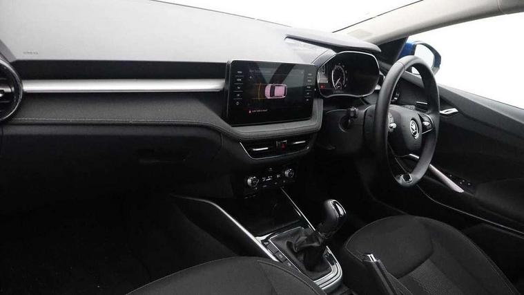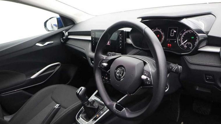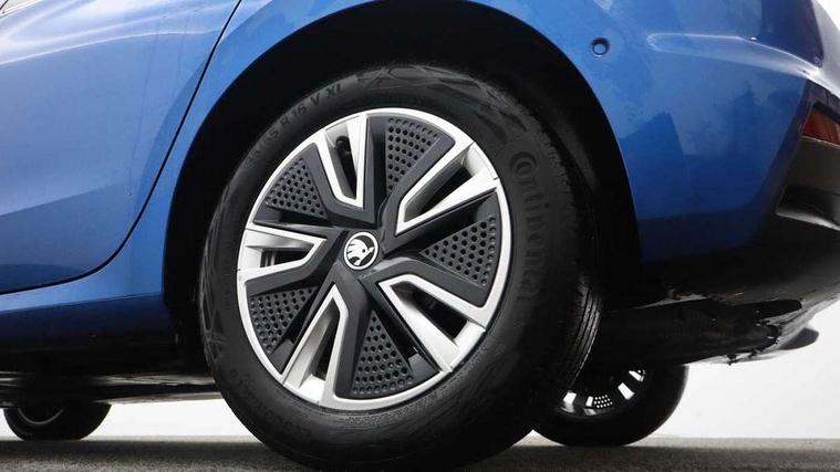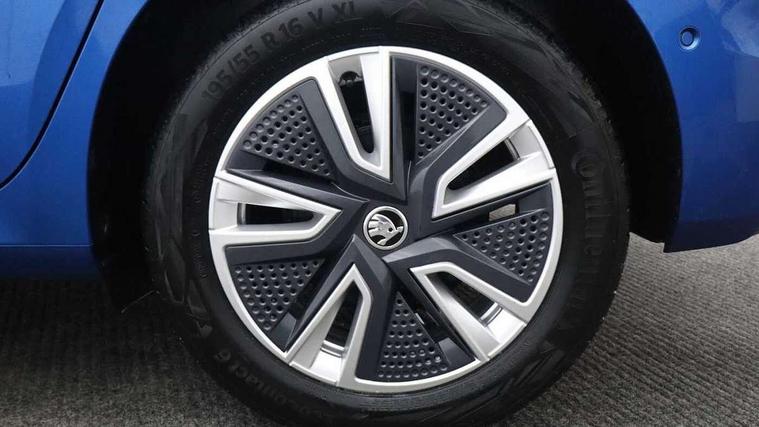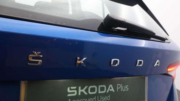 Bluetooth connection, Driver alert system - DAS, Electromechanical power steering, Exterior temperature gauge, Service interval indicator, 2x USB-C in the front (for data transmission and charging), 6 Speakers (4 in front and 2 in rear), Auxiliary socket for external MP3 player, DAB digital radio reception, Web radio, Auto dimming rear view mirror, Basic LED Headlights, Body colour door mirrors, Body coloured bumpers, Chrome window surround, Door mirror integrated indicators, Electrically adjustable and heated door mirrors, Front and rear electric windows, Front fog lights, Front window wiper intermittent control, Headlight range control - Automatic, Ice scraper in fuel cap, LED daytime running lights with coming and leaving home feature, Rain sensor, Rear LED fog light, Rear side wing doors, Rear window wiper with washing nozzles, Roof mounted spoiler, SKODA tailgate lettering in chrome, Third brake light, 3 rear headrests, Backrest split and folding, Central console with fixed cup holder and storage box, Chrome handbrake release button, Comfort seats, Fabric upholstery, Front centre armrest, Gearshift knob/handle in leather, Hand brake lever handle in leather, Height adjustable front headrests, Height adjustable front seats, Height adjustable steering wheel, ISOFIX and TopTether anchorage points to the outer rear seats, ISOFIX and TopTether on the front passenger seat, Luggage compartment lighting, Manually adjustable lumbar support in front seats, Pollen filter, Rear seat bench unsplit, Removable cup holder, Single front passenger seat, Storm grey headlining, Sun visors with mirror and airbag label on passenger side, Textile floor mats, Ticket holder, Umbrella in drivers door, 3-point height adjustable front seats belts with pretensioner and force limiter, Automatic warning lights in case of crash, Driver and passengers airbag with switch off function, e-Call+, ESC including ABS, MSR, ASR, EDS, HBA and XDS, Front and rear seat belt warning, FRONT ASSIST (AEB City and AEB Inter Urban), Front side airbags, Head airbags, Hill hold assist, One tone horn, Pedestrian protection, Three rear 3-points safety seat belts with pretensioner and force limiter including stop function for outer rear seat belts, Tyre pressure monitoring system, Anti-theft alarm system including immobiliser, interior monitoring, backup horn, and towing protection, Central locking with radio remote control, interior controls, SAFE function and 2 foldable keys, KESSY - Keyless engine start/stop, Chrome edged air vents, Satin black door and side trim panel in front, Anti-theft wheel bolts protection, Super-low rolling resistance tyres,