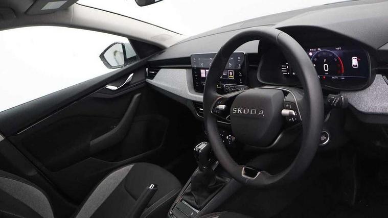 Advanced driver attention and drowsiness monitor, Bluetooth, e-Call (emergency call), Front assist system, PAS, Rear parking sensors, Rear view camera, Speed limiter, Tailgate, Traffic sign recognition, Virtual Cockpit - 10.25" digital display, Voice control system, Wireless smartlink, 4 USB C ports, 8 Speakers, 9.2" Skoda navigation display, DAB radio, Auto dimming rear view mirror, Automatic headlamp activation with Coming home and Leaving home feature, Automatic high/low beam, Body colour bumpers, Body colour door mirrors and handles, Chrome moulding around grille, Front and rear electric windows, Full LED headlights, Heated rear window, LED 3rd brake light, LED brake lights, LED daytime running lights, LED front turning lights, LED high beam, LED low beam, LED taillights, Rear LED fog light, Rear side wing doors, Rear wiper, Tinted windows, Unique dark chrome design logo on alloy wheels, 12V socket in luggage compartment, 3 seat bench in 2nd row, Black / Grey armrest stitching, Black hotstamping, Cargo elements, Chrome inner door handles, Door inserts in satin black, Driver and passenger sun visors with vanity mirror, Dual zone climate control, Front and rear roof lights, Front centre armrest, Front head restraints, Glasses storage in roof liner, Height adjustable driver seat, Height adjustable passenger seat, Ice scraper, Illuminated glove compartment, Inner circulation control with pollen filter, ISOFIX for front passenger seat, Isofix preparation for back seats, Leather gearknob and handbrake lever, Loft cloth upholstery, Luggage net under rear parcel shelf, Manual lumbar support for front seats, Net package and top tether hooks in boot space, Pearl grey ceiling, Pocket on the back of both front seats, incl. mobile phone pockets, Single front passenger seat, Skoda lettering on steering wheel, Textile floor mats, Third rear headrest, Ticket holder, Top tether for front passenger seat, Umbrella in driver's door, 3x3 point rear seatbelts, ABS, Child locks, Curtain airbags and front side airbags, Disc brakes, Driver and front passenger airbags, ESP, Hill hold control, Manual leather parking brake, One tone horn, Passenger airbag switch off function, Seatbelt reminder for driver and front passenger, Tyre pressure monitoring system, Anti theft alarm system with interior monitoring, backup horn and towing protection, Anti-theft wheel bolts, Remote central locking with 2 remote folding keys, SAFE function for remote central locking, Decord pad, door inserts Kota uni,