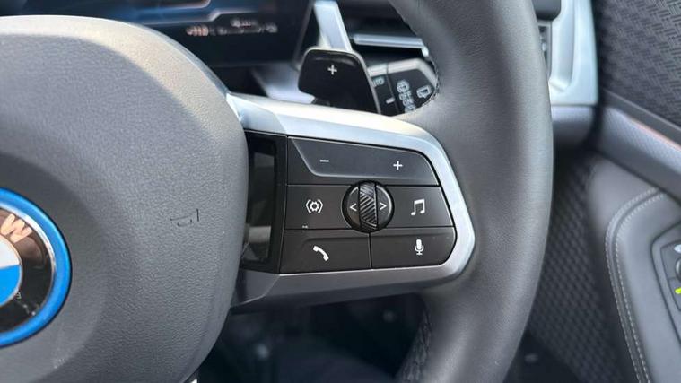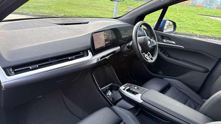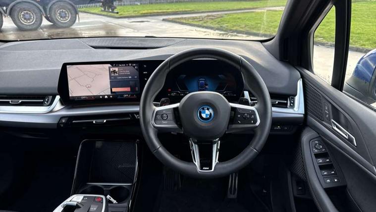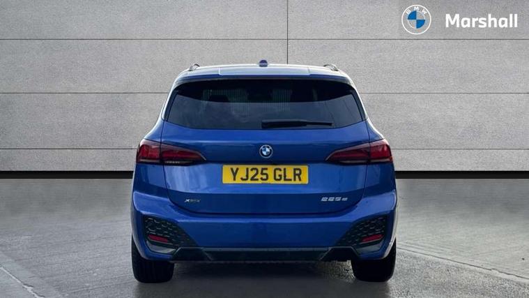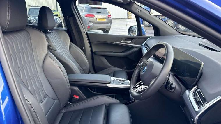 Active Guard, Attentiveness assist, Automatic powered tailgate, Automatic start/stop function, BMW Online services, BMW Operating system 9 with BMW Maps, real-time traffic information, in-car experiences, remote services and smartphone integration, BMW Teleservices, Brake pad wear indicator in front and rear, Condition based service, ConnectedDrive Services, Drive off assistant, Flat air vents on instrument panel in high gloss black, adjustable slats with elements in pearl chrome, iDrive controller, Instrument cluster with speedometer with miles per hour read out, tachometer and fuel gauge, Language version English, On board computer - average speed+fuel consumption, service interval, clock/date, odometer/trip meter, outside temperature display and ice warning, Parking assistant with active park distance control, reversing assistant, lateral parking aid and rear view camera, Servotronic variable electric power steering (EPS), Widescreen display, Wireless charging, 11kW AC charging, Drive performance control with ECO PRO comfort + sport mode, eDrive exterior sound, Gear selector switch with toggle operation, M Adaptive suspension, Mode 3 public charging cable, Performance Control, Petrol Particulate Filter, Steptronic transmission with double clutch and gear shift paddles, 1x USB Type C ports in rear centre console for charging, 2x USB Type C ports in front centre console for charging and data transfer, DAB Digital radio, Personal eSim, Welcome sound upon opening of the front driver or passenger door, Air inlet middle part on front apron in lines specific design with trim strip in satinised aluminium, Automatic headlights, Black rear bumper trim strip, BMW emblem, engine compartment lid and tailgate, Body colour roof mouldings, Body coloured door mirror caps, Contoured rear roof spoiler in vehicle colour with side aeroblades in black high-gloss, Courtesy lights in exterior mirror with BMW logo projection, Dynamic brake lights, Electric adjustable heated door mirrors, Electric windows - front and rear, with open/close fingertip control, anti-trap facility and comfort closing, Folding door handles integrated flush with surface, Front and rear windscreen wipers with heated front washer nozzles, Front bumper cover with independent design in body colour with inserts in black high gloss, Front bumper design elements in satinised aluminium, Front door exit lights, Front door sill finishers aluminium inserts with M inscription, Front entry sills with aluminium inserts + BMW inscription, Front oramental grille with radiator grille bars in satinised aluminium, Heated rear window, Hidden exhaust pipe, High gloss shadow line, High gloss shadowline roof rails, Home light, Key with M identification, LED Daytime running lights and parking lights with turn indicators, LED number plate light, LED rear lights, LED third brake light in rear spoiler, Manual headlight range control, Model inscription on right tailgate, Rain sensor, Rear bumper cover with independent design in body colour with inserts in black high gloss, Rear side wing doors, Shark fin antenna, Side sill covers with independent design in Body colour, Trailer stabilisation logic, Trims on front and rear bumper covers colour-coordinated with side window graphic, Visible VIN plate, Welcome lighting, Window washer nozzle for rear view camera, 12V socket in right side trim panel, 2 bag hooks in luggage compartment, 2 front reading lights, 2 open cup holders in front centre console, 2x 12V power socket in luggage compartment and front centre console, 3 seat bench in 2nd row, 40:20:40 split folding rear seat backrests, Additional under floor storage in luggage compartment, Ambient lighting front and rear, Automatic two zone climate control air conditioning, Bottle trays in all doors, Child seat ISOFIX attachment for two outer rear seats and front passenger seat with anchorage points, Driver and front passenger sports seats, Embellishers on steering wheel spokes in pearl chrome, Four grab handles integrated in roof lining, Front and rear door pockets, Front and rear footwell lighting, Front and rear side armrest integrated into door trim, Front centre console storage compartment, Front head restraints, Glovebox with light, Heated front seats, Height adjustable 3 rear head restraints, Illuminated wireless charging tray, Interior door handle recess light on all doors, Luggage compartment lighting on right side, M Anthracite headlining, M specific floor mats, M sport leather steering wheel, Map pockets, Mechanical rear seats with fore/aft adjustment, Middle centre console storage compartment, Multi-function controls for steering wheel, One piece parcel shelf opens together with tailgate and removable, Rear cloth hooks, Single front passenger seat, Stainless steel pedals, Steering wheel column manual adjustment, Storage compartment lighting in centre console and storage tray in centre stack, Storage compartment net in left side trim panel, Storage compartment with folding cover under centre console armrest cushion, Sunvisors with illuminated vanity mirrors, Tilt adjustment incl. cargo function of 2nd row of seats, 3 point seatbelts on all seats, front pyrotechnic belt tensioners, stopper and belt force limiters, rear coded belt buckles, Acoustic protection for pedestrians, Airbag - Front driver and passenger, front and rear head, front side, curtain head protection, manual deactivation of front passenger airbag possible, Anti lock braking system (ABS) with brake assist, Automatic hold function, BMW emergency call, Brake drying, Braking readiness, Child proof locking system in rear door, Cornering brake control, Crash Sensor - activates hazard/interior lighting + unlocks doors, DSC - Dynamic Stability Control, Dynamic brake control, Dynamic Traction Control - DTC, Electromechanical parking brake, Energy recovery system, Front disc brakes, Integrated braking system, PC iBrake PostCrash approach control warning with light braking function, Rear disc brakes,