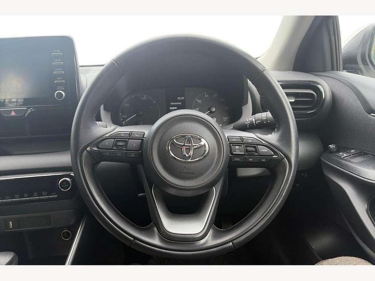 4.2" coloured TFT multi information display with analogue speedometer, Adaptive cruise control, Adjustable speed limit with speed warning, Bluetooth connectivity, E-call, Electric power steering, Hybrid energy display, Multi information display switches on steering wheel, Reversing camera, Smartphone integration with Apple CarPlay and Android auto, Smartphone integration with Apple CarPlay/Android Auto, Tailgate, Voice recognition, Vehicle Stability Control (VSC), 4 speakers, 9" Multimedia touch display, Toyota Touch 3 system with DAB radio, USB connection, Acoustic windscreen glass, Auto windscreen wipers, Automatic headlights, Body coloured door mirrors, Bulb indicators, Chequered front grille, Daytime running lights, Electric adjustable heated door mirrors, Follow me home headlights, Front auto power windows with anti jam protection, Front halogen fog lights, Halogen projector headlights, LED High mounted stop lamp, Manual headlight levelling, Rain sensor, Rear auto power windows with anti jam protection, Rear side wing doors, Rear spoiler, Rear wiper, Shark fin antenna, Turning signal integrated indicators in door mirrors, Variable front intermittent wipers, 3 adjustable rear headrests, 3 seat bench in 2nd row, 3 spoke leather steering wheel, 60/40 split folding rear seat, Active headrests, Adjustable boot height, Auto air conditioning, Coat hooks in rear grab handles, Cup holders (2 front & door), Data Communication Module (DCM) connected services, Fabric upholstery, Front armrest, Glovebox, Grey roof lining, Height adjustable driver's seat, Isofix seat fixing, Leather gearshift, Pollen filter, Shopping bag hooks, Single front passenger seat, Tilt/telescopic steering column, 3 point seatbelts on all rear seats, ABS+EBD+Brake assist, Electronic parking brake, Emergency brake light system (EBS), Front passenger airbag on/off switch, Front seatbelt reminder, Hill start assist control (HAC), Rear child proof door locks, Rear seat belt reminder, Supplemental Restraint System (SRS) 8 airbags: Driver & passenger's airbags, dual side curtain airbags, side impact airbags, front centre airbag, Toyota Safety Sense 3 with over the air updates, Tyre pressure warning system, 2x Master key, Alarm/immobiliser, Remote powered central double locking doors, Soft touch instrument panel, Space saver spare wheel,