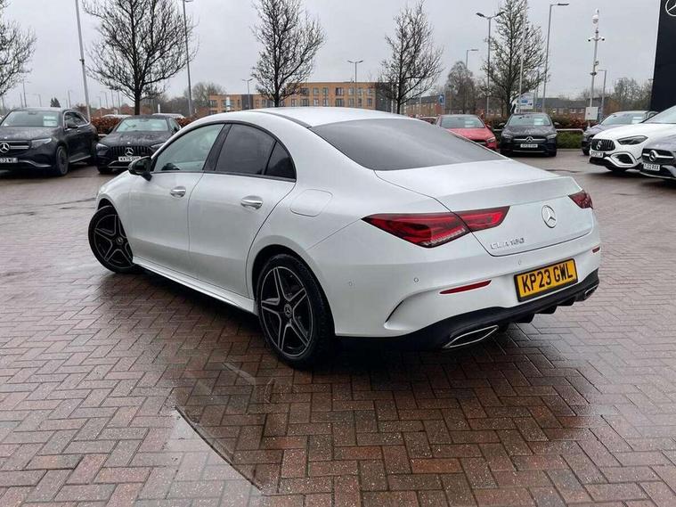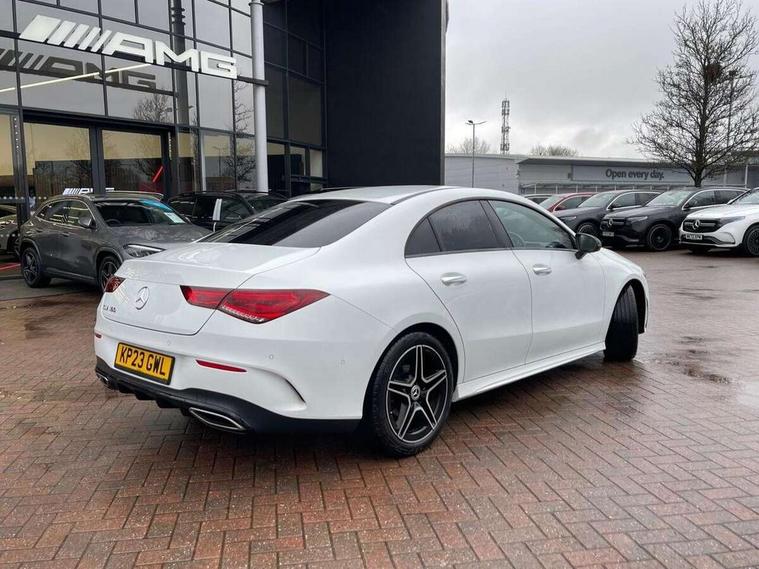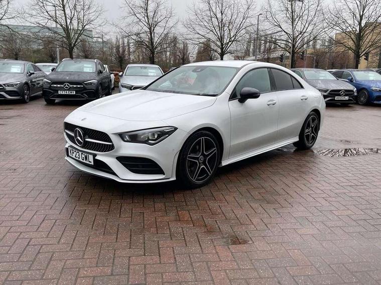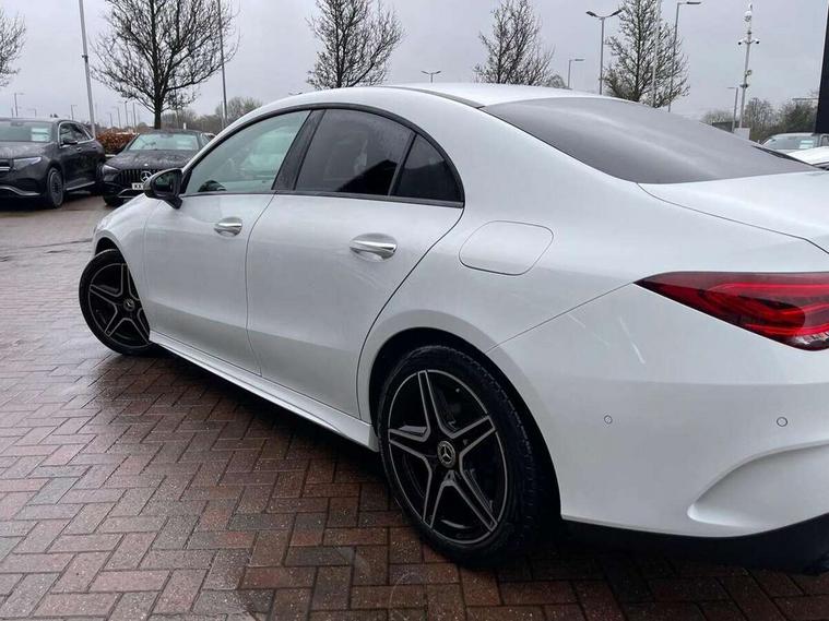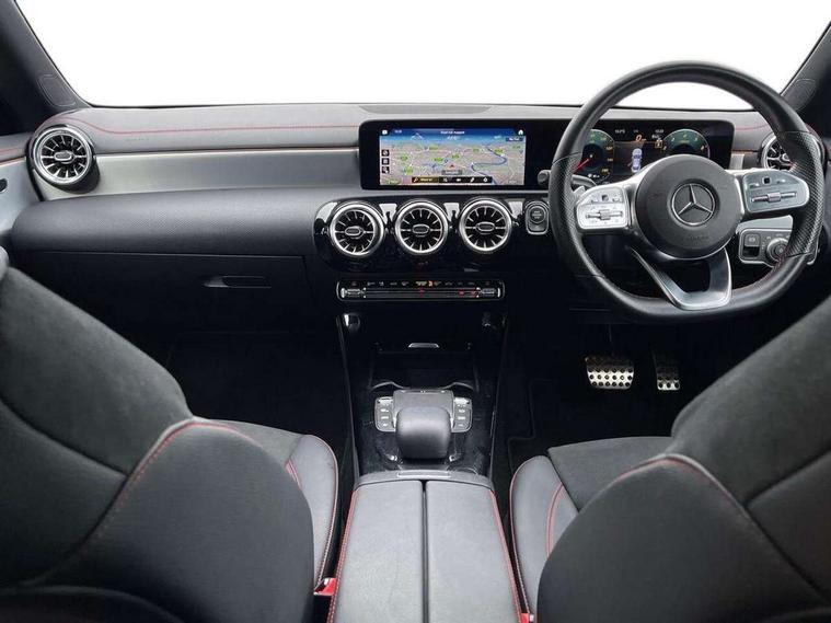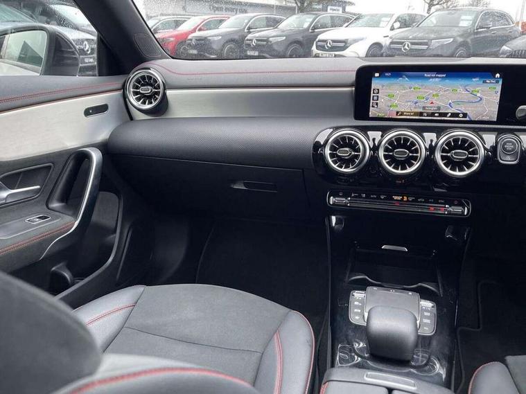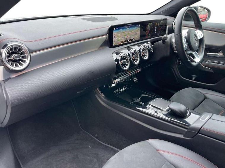 10.25 inch Instrument display with digital cockpit, 10.25 inch touchscreen central media display, Active lane keeping assist, Attention assist - Monitors steering behaviour and long journey fatigue, Bluetooth connection, Car wash mode, Cruise control with limiter, Direct steer system with speed sensitive power steering, DYNAMIC SELECT with a choice of driving modes (ECO, Comfort, Sport and Individual), ECO start/stop function, Fluid level warning indicator for fuel, oil, coolant and washer fluid, Hard-disk navigation, Hey Mercedes Voice activation, Lamp failure indicator, Mercedes me connect including emergency call system, accident recovery, breakdown and maintenance management, Mercedes me remote services, Outside temperature gauge, Owners manual and service booklet in English, Pre-installation of private car share, Preinstallation for Mercedes Benz link, Radio aerial integrated into front and rear windshields, Service indicator (ASSYST), Smartphone integration with Apple CarPlay and Android auto, Speed limit assist, Trip computer in multifunction display with current consumption indicator, Lowered comfort suspension, Rear axle multi-link, DAB digital radio tuner, MBUX multimedia system, Mid-range sound system, USB (type C) ports (2) in stowage compartment and 1 in front of centre console, Adaptive brake lights, AMG body styling with AMG front apron and rear apron and visible exhaust tailpipe in chrome trim elements, AMG bodystyling side skirts, Body colour bumpers, Body colour door handles, Chrome beltline strips, Diamond radiator grille pins in chrome, Electric windows, Electrically adjustable and heated door mirrors with integrated LED indicators, Exhaust system with 2 Visible tailpipe trim elements and rear apron with trim in chrome, Headlamp assist automatic headlamp activation, Heated glass rear windscreen + timer control, High level LED third brake light, Interior mirror with black reading lamps and frameless, LED high performance headlamps with integrated LED daytime running lights, LED tail lamp, Privacy glass with dark tinting on rear side windows and rear window, Rain sensing windscreen wipers with two sensitivity settings, Rear boot, Rear fog lamp, Rear side wing doors, Variable front intermittent wipers, Window line trim strip in chrome, 3 seat bench in 2nd row, 3 spoke flattened bottom nappa leather multifunction steering wheel with perforated leather in grip area, 40:20:40 split folding rear seat backrests, Air conditioning - Two zone thermotronic luxury automatic climate control with display, Air vents with surround in silver chrome, Artico man-made leather upholstery, Automatic child seat recognition sensor, Black roof lining, Brushed stainless steel sports pedals with rubber studs, Floor mats with stitched AMG lettering, Front centre armrest with stowage, Galvanished gear shift paddles on steering wheel, Heated front seats, Illuminated front door sills with changeable cover, Illuminated glove compartment stowage, Interior lighting - 64 colour Ambient lighting, Luggage net on driver/front passenger seat backrest, Manually adjustable front seats, Manually height and reach adjustable steering column, Rear armrest with two integral cup holders for drinks, Rear head restraints, Single front passenger seat, Sport seats with fixed head restraints, Stowage compartment in centre console with retractable cover, Sunvisors with illuminated vanity mirrors, Touchpad on center console, Twin front cupholders, Two outer rear seat isofix and top tether child seat fixing points, Keyless go comfort pack - CLA, Light and sight pack - CLA, Mirror pack - CLA, Night package - CLA, Parking package - CLA, Seat comfort pack - CLA, Active bonnet pedestrain safety measure which detects an impact and raises bonnet by 65mm, Active brake assist includes forward collision warning system with autonomous braking, Adaptive brake assist with hold function and hill start assist, Anti lock braking system (ABS) with brake assist, Black seat belts, Bonnet with power domes, Brake pad wear warning indicator, Childproof locks manually operated for rear doors and electrically operated for rear power windows, Crash responsive emergency lighting, Driver and front passenger head and sidebags, Driver and front passenger windowbags, Drivers knee airbag, Dual stage driver and front passenger airbags, Electric parking brake, Electronic stability programme with acceleration skid control, ESP curve dynamic assist, Front and rear seatbelt reminder, Front passenger seat occupancy sensor, Three point rear seat belts, Tyre pressure monitoring system, Warning triangle and first aid kit, Guard 360 degree guard vehicle protection system with immobiliser and interior protection, Remote central locking and crash sensor with emergency opening function, Light aluminium with longitudinal grain interior trim, 18" AMG 5 twin spoke light alloy wheels painted in black with high sheen finish, Summer tyres, Tirefit tyre sealant kit,