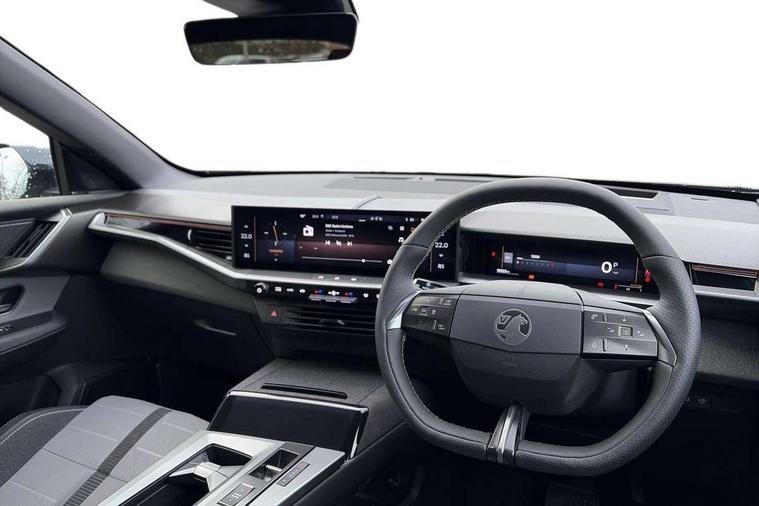 10" digital instrument cluster, 16" multimedia navigation with wireless Apple Carplay/Android auto, 360 degree surround camera, Anticipated intelligent speed adaptation, Central facia display with digital clock, outside air temperature and audio information, Curve speed adaptation, Digital fuel gauge with low fuel level warning light, Digital rev counter, Digital speedometer, Digital water temperature gauge with warning light, Drive mode selector (Eco, Normal, Sport), Driver information - Total mileage, service indicator, oil life, Electric power steering, Front and rear parking sensors, In-crash braking, Intelli-HUD (Extended heads up display), IntelliDrive 2.0 - Semi autonomous lane change assist with lane positioning assist, rear cross traffic alert and side long range blind spot detection, Lights on audible warning, Multi function trip computer - Trip odometer, vehicle range, average speed and fuel economy, instantaneous fuel economy and driving time, Power tailgate, Speed sign recognition, Start/stop system, Vauxhall connect including Emergency call (SOS e-call) and Breakdown call (b-call), Wireless charger for mobile devices, Anti-roll bars, Compound crank rear suspension with coil springs and gas pressure dampers, Independent decoupled MacPherson strut front suspension with gas pressure dampers and coil springs, anti-roll bar, Stability control, 2 rear USB-C sockets, AM/FM and DAB radio, Premium focal Hifi sound system includes 10 speakers and subwoofer, Radio controls on steering wheel, Acoustic windscreen, Auto headlights, Automatic headlight beam levelling, Black door mirrors, Black grained wheel arch claddings, Body colour door handles, Dark tinted rear windows, Electrically defrosting driver and passenger door mirrors, Electrochromic frameless rear view mirror, Front illuminated griffin, Front wiper system spraying directly from wipers, Grained lower door claddings, Heated windscreen, High gloss black front and rear bumpers, High gloss black roof spoiler, Illuminated rear Vauxhall, IntelliLux LED headlights with 3D illuminated vizor, welcome and farewell animation, 11 driving modes and adaptive high beam assist, Intermittent rear window wash/wipe, LED 3rd brake light, LED daytime running lights, LED tail lights, Magic wash, Panoramic opening glass roof, Power folding door mirrors with memory function and reverse mode, Power front and rear windows, Rain sensor windscreen wipers, Rear side wing doors, Rear wipers with camera cleaning, Two speed windscreen wipers with variable intermittent wipe, Welcome lighting, 10 way manual adjustable heated front seats with AGR approved with pneumatic lumbar support, cushion nose extension and power tilt, 2 cupholders with slider, 3 12V plugs, 3 bench rear seats in 2nd row, 3 spoke leather effect steering wheel with dimpling, 7 colour ambient lighting, Automatic air conditioning, Centre console armrest, Chrome effect interior door handles, Clean cabin system, Cooled glove box and central console storage with LED light, Dashboard and door panels polychromatic ambient lighting, Dual zone electronic climate control, Front door storage with 1.5 litre capacity, Front seat back storage pockets, Fully carpeted luggage area, Heated steering wheel, Height adjustable headrests, Illuminated vanity mirrors, Intelli air, Paddle shifts, Pixel storage, Rear armrest, Rear centre seat head restraint, Rear clothes hooks on B pillar trims, Single passenger seat, Sunglasses Box, Touch sensitive front and rear reading lights, Anti-lock braking system (ABS), Automatic emergency braking system, Child proof locks on rear doors, Deactivation switch for front passenger front and side impact airbags, Deflation detection system, Driver airbag, Dual seatbelt pretensioners on front seats, EBD - Electronic brakeforce distribution, Electronic parking brake, Front and rear ventilated discs, Front passenger airbag, Front seat side impact airbags, Full-size curtain airbags for driver and front passenger, Hill assist control, Hydraulic Brake Assist (HBA), Inertia reel lap and diagonal seatbelts for all seats, Load limiters on outer rear seatbelt retractors, Pretensioners on outer rear seatbelt retractors, Rear 3 point ISOFIX, Smart seatbelt reminder for front and rear seats, Tyre pressure monitoring system, Central locking, Deadlocking system, Electronically protected audio equipment, Engine deadlock immobiliser, Keyless entry and start, Locking wheel nuts, Remote security alarm system, Mistral dark ambience, 19" Diamond cut alloy wheels, Tyre repair kit,