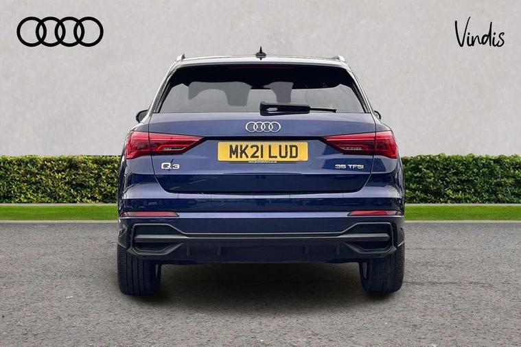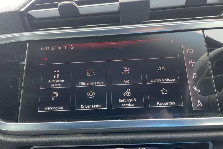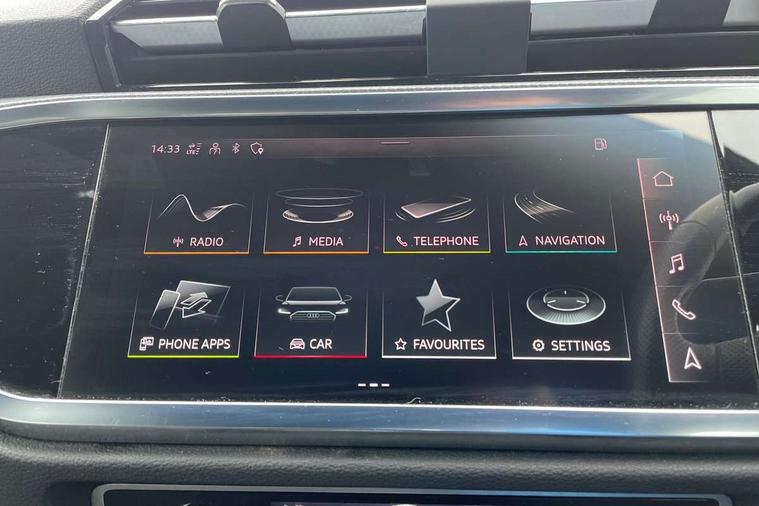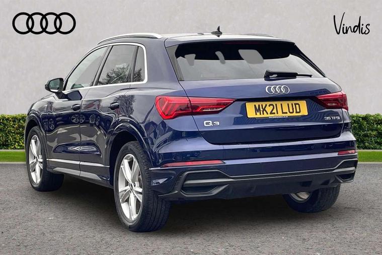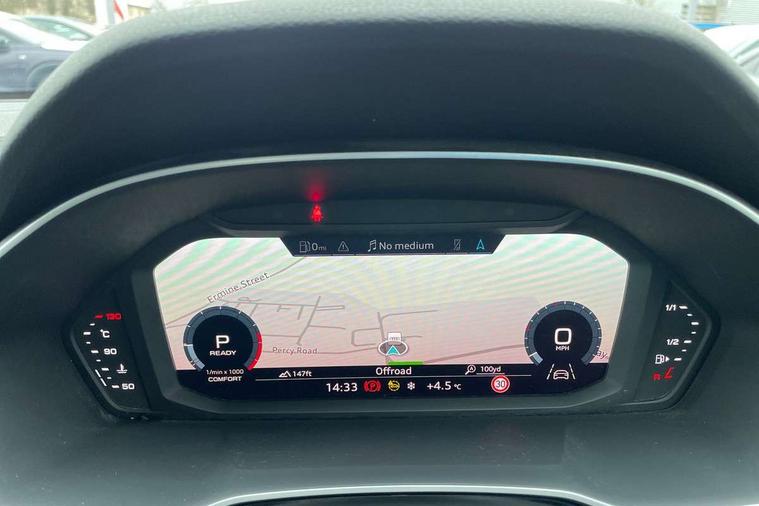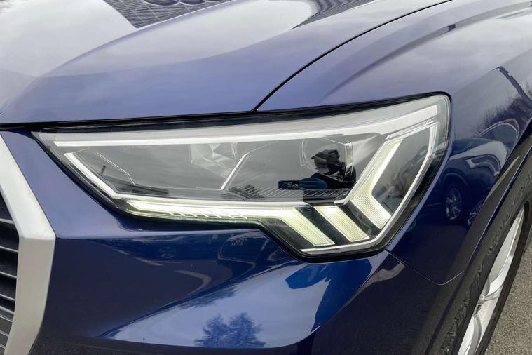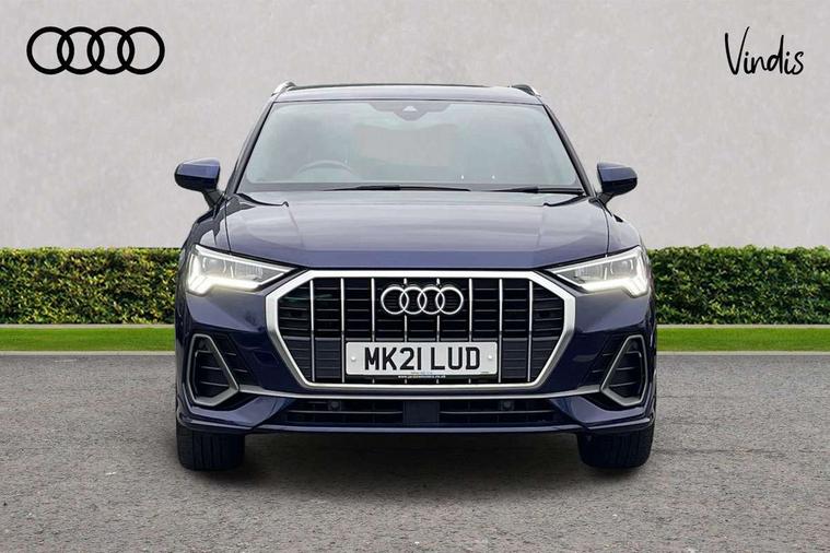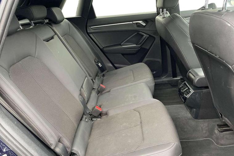 Audi connect safety and service (e-call), Audi drive select, Audi lane departure warning, Audi Virtual Cockpit - 10.25" display, Bluetooth interface, Camera based traffic sign recognition, MMI Navigation Plus with high resolution 10.1 inch touchscreen colour display, Power operated tailgate, Progressive steering, Service interval indicator, Smartphone interface includes wireless Apple carplay/Android Auto, Start stop system with recuperation, Voice control system with natural language interaction, 48V Mild hybrid technology, Sports suspension, 2 USB-C ports with charge and data functions, 6 passive loudspeakers, DAB digital radio module, Acoustic windscreen, Aluminium roof rails, Aluminium window trim, Auto dimming frameless rear view mirror, Body coloured bumpers, Electrically folding, adjustable and heated door mirrors with integrated LED side indicators and kerb view function for passenger side, Front and rear electric windows, Front fog lights, Front side air inlets in matt platinum grey, Front spoiler blade in matt platinum grey, Grille vertical bars in aluminium silver/Matt, High gloss black finish B and C pillars, LED headlights with LED daytime running lights and dynamic rear indicator, LED rear lights, Privacy glass dark tinted rear and rear-side windows (from B-pillar backwards), Rain and light sensors, Rear diffuser strip in matt titanium black, S line badges on front wings, S Line front and rear bumpers, Side skirt insert in matt Platinium grey, Silver chrome grille surround, Titanium black radiator grille, 12V socket in rear centre console, 40:20:40 folding with manual adjustment for 60:40 forwards/backwards position and backrest angle, Adjustable rear seat bench/backrest with centre armrest and cupholder, Black cloth headlining, Dual zone electronic climate control, Front and rear black floor mats with contrast stitching in rock grey, Front and rear headrests, Front and rear roof module including reading lights, Front centre armrest, Glove compartment lighting, Height and reach adjustable steering wheel, Illuminated door sill trims with S logo, ISOFIX child seat mounting for front passenger with airbag deactivation and outer rear seat including top tether attachment point for outer rear seats, Luggage compartment light, Manual front seats with height adjustment, Perforated leather gearknob, Stainless steel luggage compartment sill finisher, Stainless steel pedals, Non smoking pack - Q3, 3x3 point rear seatbelts, 6 airbags - Driver, front passenger, curtain and side windows, Audi pre-sense front with pedestrain and cyclist recognition, Electrically operated child locks on rear doors, Electromechanical parking brake, Electronic stabilisation control including ABS, ASR and EDL, Hill descent control, Hill hold assist, Pre sense basic, Seatbelt monitoring, Tyre pressure warning, Warning triangle and first aid kit, Anti theft alarm, Anti theft wheel bolts, Remote central locking, Dark matt brushed aluminium inlay, Detail dashboard around MMI touch colour display in glass look, black with surround in aluminium look, Leatherette door armrest, Tool kit, Tyre repair kit,