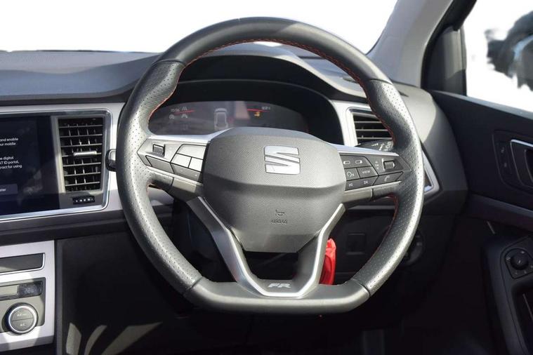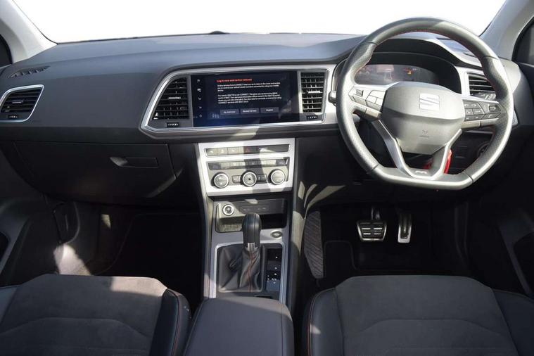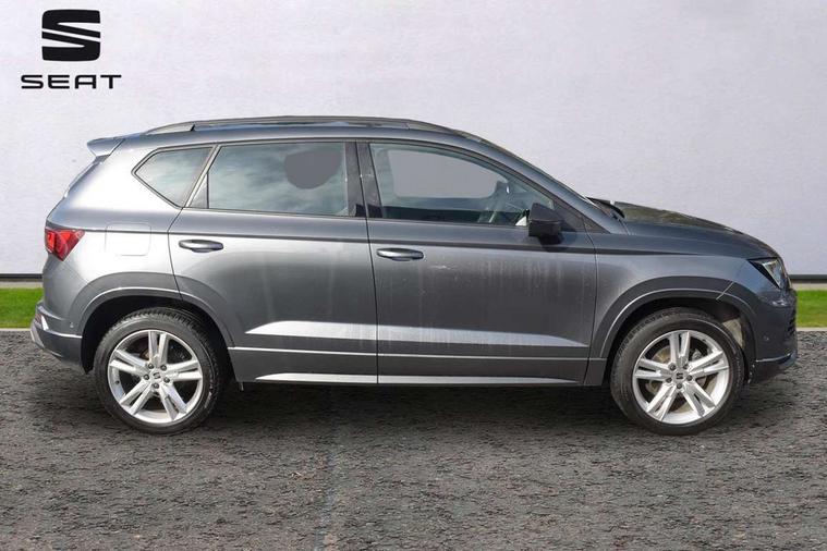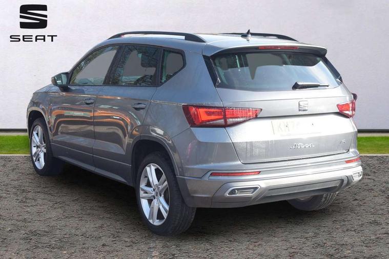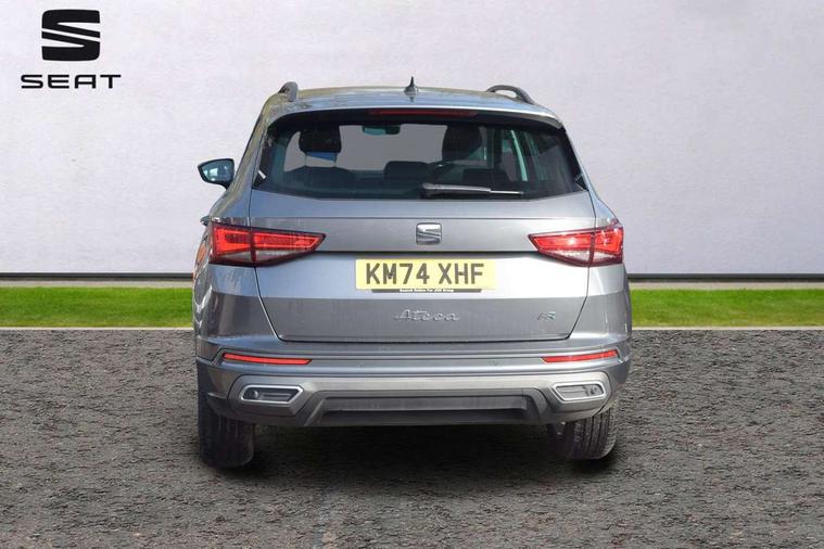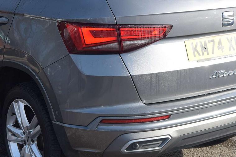 8" Digital cockpit, Colour multi-function on board computer display, Cruise control system with speed limiter, E-call, Outside temperature gauge, Progressive power assisted steering, SEAT drive profile with driving experience button - Normal, Sport, Eco and Individual mode, gearshift, steering and throttle response, Self parking functionality (includes front and rear parking sensors), Start/stop system, Tailgate, Trip computer, wired and wireless full link smartphone integration, Wireless phone charger, Steering wheel mounted audio/phone controls, Black roof rails, Black side window trim, Body colour bumpers, Body coloured wheel arch surrounds, Chrome front grille frame, Dark tinted rear windows, Daytime running lights, Door mirrors with welcome light silhouette, Dynamic headlight range control with self adjusting whilst driving, Electric adjustable/heated/folding door mirrors, Front and rear electric windows, Full LED headlamps with lens and LED front fog lamps with cornering function, Illuminated aluminium front door sill, LED 3rd brake light, LED rear tail lights with dynamic indicators, Rear exhaust tailpipe, Rear fog lights, Rear side wing doors, Rear wash/wipe, Roof spoiler, Variable front intermittent wipers, 12V socket in front, 3 seat bench in 2nd row, 60/40 split folding rear seat, Aluminium pedals, Dinamica upholstery with front comfort seats, Drawer under right front seat, Dual zone climate control, Front and rear head restraints, Front centre armrest, Front seat back storage pockets, Height adjustable driver and passenger seat with lumbar adjustment, ISOFIX points in outer rear seats with top tether anchorage points, Leather sports steering wheel and gear knob, Rear armrest and easy back seat release mechanism from boot, Single front passenger seat, Steering wheel mounted gearshift paddles, Convenience pack - Ateca, Interior lighting pack - Ateca, Navigation system pack with DAB - Ateca, Safety and driving pack with attention and drowsiness assist - Ateca, 3x3 point rear seatbelts, ABS, Traction control system (TCS), Electronic stability control (ESC) and Electronic differential lock system (XDS), Airbags - Driver and front passenger airbag with deactivation, front side, two curtain and driver's knee airbags, Electric parking brake with auto hold function, Front and rear seatbelt reminder, Front assist with autonomous emergency braking, Hill hold control, Manual rear child locks, Single tone horn, Tiredness recognition system, Tyre pressure monitoring system, Alarm, Keyless entry, Locking wheel bolts, Remote central locking, Chrome interior detailing, 18" Brillaint silver alloy wheels,