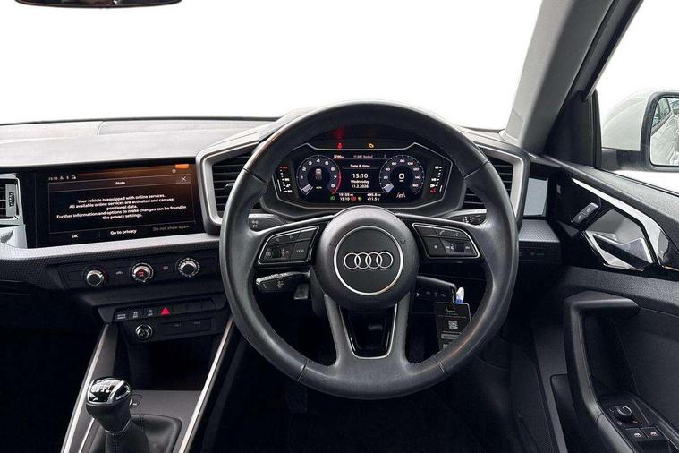10.25" Digital instrument cluster display classis style instrument dials + speed, odometer, time, outside temperature, telephone menu + fuel level warning, Audi drive select - power steering assistance + engine, Audi smartphone interface with connect compatible smartphone via USB directly MMI display + Nav, music, third party apps controlled via MMI controller, Automatic start/stop system, Bluetooth interface, Cruise control, Driver's information system, Electromechanical power steering, Emergency e-call, Lane departure warning system, Rear parking sensor, Service interval indicator, Speed limiter, Voice control system, Washer fluid level indicator, Dynamic suspension, 2 x USB type C connection points, 6 passive loudspeakers, DAB Digital radio, MMI radio plus with 10.1" colour MMI display screen and MMI touch, Auto dimming rear view mirror, Body coloured bumpers, Body coloured door mirrors, Electric front and rear windows, Electrically adjustable, heated, folding door mirrors with integrated LED side indicator, Front side air inlets in grained matt black and C frame in anthracite black, Heat insulating glass windscreen and side windows, Heated rear windscreen, High level LED brake light, LED headlights with LED rear lights + dynamic rear indicators + headlight adjustment and high beam, turning light + LED daytime running lights, Radiator grille and rear diffuser in matt anthracite black, Radiator protective grille frame in matt aluminium silver, Rain and light sensors, Rear fog lights, Rear side wing doors, Rear wiper, Side front spoiler lips in grained matt black, 12V socket in centre console with two cup holders, 3 rear seats with headrests, 3 seat bench in 2nd row, 3 spoke leather multifunction plus steering wheel, 40:60 Split folding rear seat or folded fully, Black front and rear floor mats, Door sill trims with aluminium inlay, Driver and passenger seat with manual height adjust with forward and backwards adjustment, Front head restraints, Front passenger seat, Grey cloth headlining, Height and reach adjustable steering wheel, ISOFIX child seat mounting for front passenger and outer rear seats including top tether attachment point of outer rear seats, Leather gear knob with aluminium trim, Leather handbrake grip, Luggage compartment light with front and rear reading lights, Manual air conditioning, Manually adjustable lumbar support in front seats, Novum cloth upholstery with front sport seats, Luggage compartment pack - A1, 3x3 point rear seatbelts, Audi pre-sense front with pedestrain and cyclist recognition, Brake assist function, Driver and front passenger airbag with front side and head airbags, Electronic Stability Control including ABS, EBD, ASR and EDL, Front passenger airbag deactivation switch, Hill hold assist, Manual rear child locks, Seatbelt height adjustment for front seats, Seatbelt monitoring, Tyre pressure warning light, Warning triangle and first aid kit, Anti theft alarm, Anti theft wheel bolts and loose wheel warning, Immobiliser, Remote central locking with 2 foldaway keys, Aluminium trim for control switches, air vents and digital instrument cluster, Black dashboard, Silver grey accent areas including air vents, door handle recesses and centre console in diamond paint finish, Slate grey inlays polygon structure in fine paint finish,
