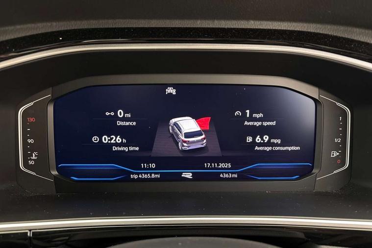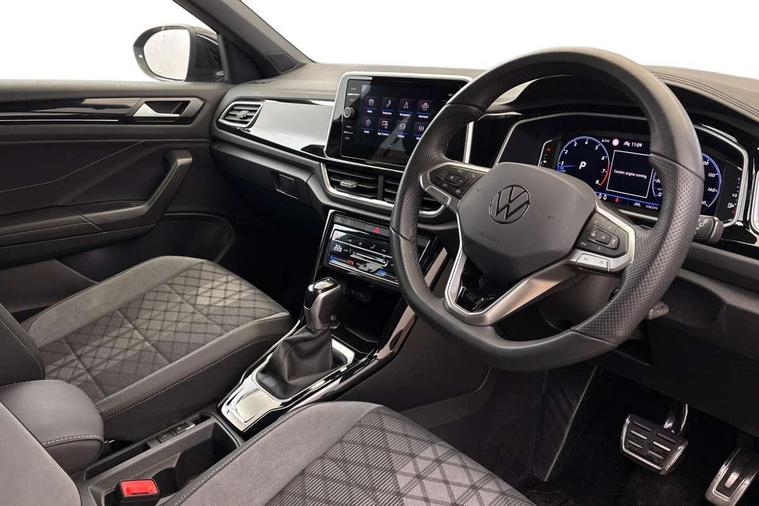 10.25" Digital cockpit pro, Advanced driver attention and drowsiness monitor, Emergency call service, Lane keeping system Lane Assist, Mobile phone interface, Modified key software - reduce switch off time for key status change to Long no motion, Online services, Park assist including front and rear parking sensors, Service interval indicator, Tailgate/trunk lid release from outside, Think blue trainer driver tips and journey analysis, Warning sound and light for front seatbelts unfastened, Wireless app connect, Battery regeneration during braking, Start/stop function with battery regeneration, DAB Digital radio, Diversity antenna for FM reception, Front and rear 6 speakers, Music playback - MP3, WMA and AAC files, Premium USB cable in choice of either Apple or Android smartphone compatibility, SD card slot, Simultaneous pairing of 2 compatible mobile devices, Title and cover art display, We Connect and We Connect Plus functionality, Auto dimming interior rear view mirror, Automatic hazard lights activation under emergency braking, Automatic headlight control with LED separate daytime running lights with coming/leaving home function, Body coloured exterior mirror housings and door handles, Electrically adjustable and heated door mirrors, Extended roof spoiler, Exterior mirrors aspherical on driver side, convex on front passenger side, External USB type C socket and charging sockets, Front windscreen wiper with intermittent wipe and 4 position delay, Heated rear window, LED 3rd brake light, LED rear combination lamps, LED rear number plate lights, Power windows with comfort operation and circuit breaker, Privacy glass for rear side windows and rear window, R-Line design body coloured bumpers, Rain sensor, Rear exhaust tailpipe, Rear fog light on one side and reversing lights on both sides, Rear side wing doors, Rear wash/wipe with intermittent wipe setting, Remote electrically foldable door mirrors, puddle lights and reverse activated passenger's door mirror, 12V power socket in centre console, 3 rear head restraints, 3 seat bench in 2nd row, 4 load lashing points in luggage compartment, Air care climatronic air conditoning system with active combination filter and 2-zone temperature control, Black roof lining, Chrome plated decorative trims, Chrome plated radiator grille inserts, air vent surrounds and light switch surrounds, Door and side trim panel with leatherette insert, Front + rear carpet mats, Front centre armrest, Front cupholders x 2, Front footwell illumination, Front reading light, Front scuff plates with R Line logo, Front seat back storage pockets, Glove compartment door with light, Instrument lighting, white adjustable panel illumination, Interior ambient lighting and surround lighting, Interior light delay, Isofix child seat preparation, Leather gearshift handle, Load-through provision with cup holder when folded down ('Unsplit rear seat bench, split folding backrest, with centre armrest), Luggage compartment lighting, Single front passenger seat, Stainless steel pedals, Storage compartment in left and right luggage area, Storage compartment in rear doors, Storage compartments in driver and front passenger doors, Sunvisors with illuminated vanity mirrors, Variable boot floor, height adjustable and removable, Driver assistance pack without proactive passenger protection - T-Roc, 3 point height adj front seatbelts + pretensioners, 3 point seatbelts in outer rear with ECE label, ABS, Child locks on rear doors, City emergency braking and pedestrian monitoring, Driver and front passenger airbag with front passenger airbag deactivation, Driver and front passenger safety-optimised head restraints, Drivers seatbelt reminder, Electronic parking brake, Electronic Stability Control (ESC) inc EDL (Electronic Differential Lock) and ASR (Traction Control), Front and rear passengers curtain airbag system including front side airbags, Hill start assist, Predictive pedestrian protection, Rear disc brakes, Two tone horn, Tyre pressure loss indicator, Volkswagen roadside assistance, Piano black decorative inserts in dashboard and front door trim panels, Trims for alloy wheels,
