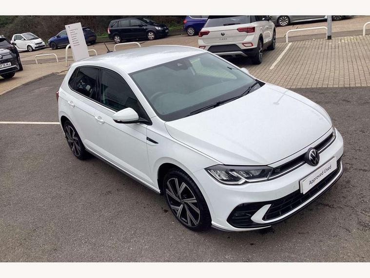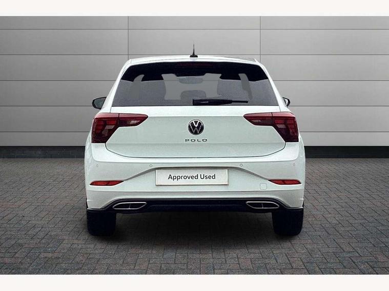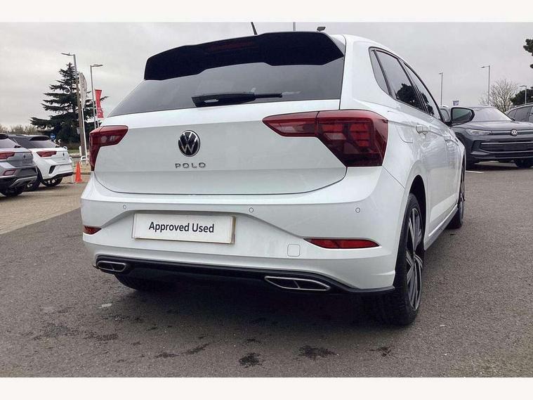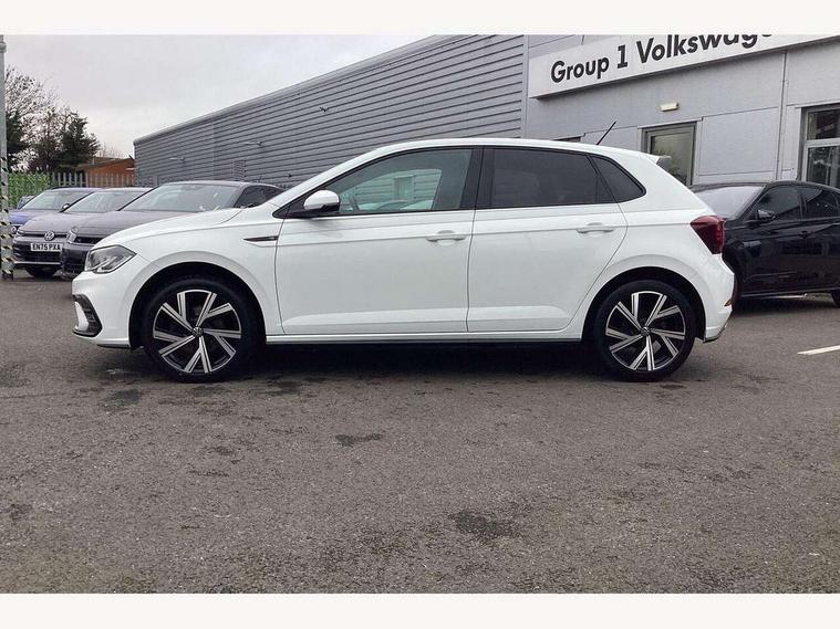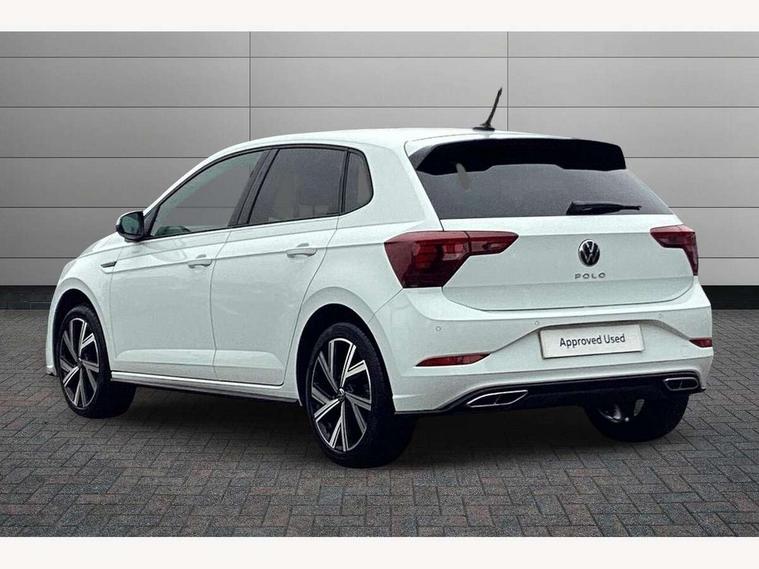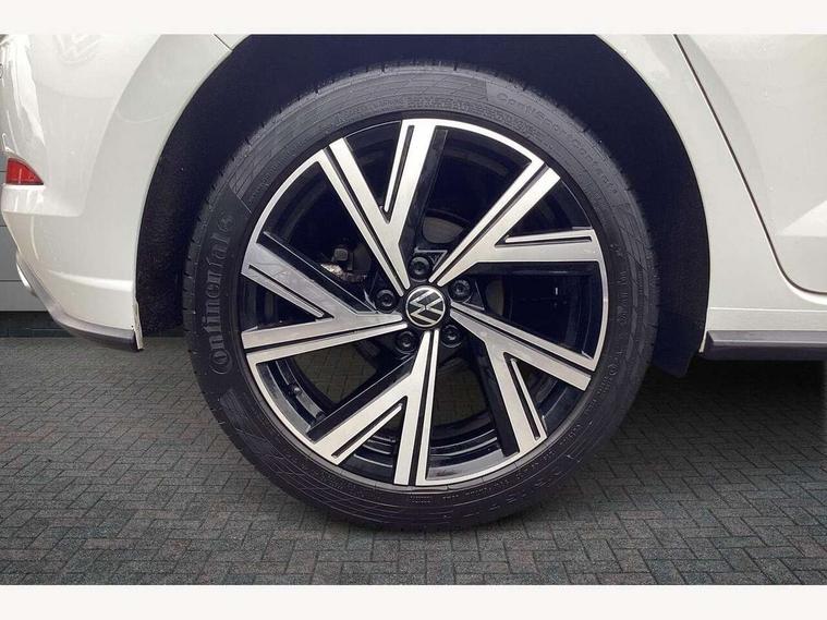 Adaptive cruise control with follow-to-stop and speed limiter, Bluetooth mobile phone interface, Digital Cockpit Pro with 10.25" Display, Driver alert system, Dynamic road sign display, Emergency call service, Power assisted speed sensitive steering, Preparation for We connect and We connect plus, Speedo and rev counter, electronic odometer, trip, service interval display and fuel gauge, Standard rear axle, Travel Assist - Lane keeping system and traffic jam assist, Travel assist including emergency assist, Trip computer, Warning signal and warning light for front and rear seatbelts not fastened, Washer fluid level indicator, Wireless app connect, Front wheel drive, Rear shock absorpion, Start-stop system with battery regeneration (recuperation - energy recovery during braking), DAB Digital radio, Diversity antenna for FM reception, Front and rear 6 speakers, Body colour bumpers, Body colour door handles, Electric front windows, Front scuff plates with R-Line logo, Heat insulating darkened glass in side and rear windows, Heat insulating glass windscreen, Power folding adjustable/heated exterior mirrors and front passenger exterior mirror lowering function, Rear electric windows, Rear fog light, Rear side wing doors, Rear windscreen washer and wiper with interval delay, Third brake light, 12V power socket in centre console, 2 USB-C ports in the front, 2 USB-C charging sockets on the center console in the rear, 3 rear head restraints, 60/40 split folding rear seat and rear seat bench not split, Air care climatronic air conditoning system with active combination filter and 2-zone temperature control, Black roof lining, Chrome plated radiator grille inserts, air vent surrounds and light switch surrounds, Door and side trim panel, Driver and front passenger seat height adjustment, Driver/passenger sunvisors with illuminated vanity mirrors, Front + rear carpet mats in recycled material, Front centre armrest, Front footwell illumination, Front seat backrest storage pockets, Front sports comfort seats, Handbrake lever handle in leather, Headliner in recycled material, Isofix child seat preparation easy-fit (for two outer rear seats, and front passenger seat) compatible with I-size, Karoso artvelours cloth upholstery, Leather trimmed gear knob, LED interior light with switch off delay and dimmer, 2 reading lights front and rear, Luggage compartment cover, Luggage compartment floor, Luggage compartment lighting, Lumbar adjustment for front seats, Single front passenger seat, Stainless steel pedals, Standard pedal cluster, Three spoke leather wrapped multifunction steering wheel with shifting paddles, Light and sight pack - Polo R-Line/Black Edition, 3 point height adj front seatbelts + pretensioners, 3x3 point rear seatbelts, ABS, Driver and front passenger airbag with front passenger airbag deactivation, Drivers and front passengers safety optimised head restraints, ESC (Electronic stability control) + EDL (Electronic Differntial lock) and ASR (Traction control), Extended and predictive pedestrian/ cyclist protection, Front curtain and side airbags with center airbag, Front/rear disc brakes, Hill hold control, Manual child lock in rear doors, Single tone horn, Tyre pressure loss indicator, Alarm with interior protection, Anti-theft alarm system with interior monitoring, backup horn, and towing protection, Anti-theft wheel bolts, Electronic engine immobiliser, Chrome applications on rotary light, mirror adjustment, window regulator switches, outlet with frame in black, Dark grey anodised matt decorative inserts in dash and front door panels, Low rolling resistance tyres,