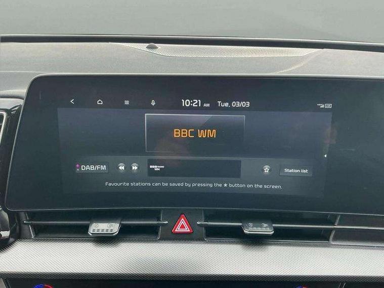12.3" Driver display screen, 12.3" Touchscreen navigation system, 2 rear USB-C ports, Apple car play/Android Auto, Drive mode selector, Driver attention warning, E-call, Emergency stop signalling system, Forward collision avoidance assist (FCA) - city/pedestrian/cyclist/junction covering, Front and rear parking sensors, Highway Driving Assist (HDA), Intelligent speed limit assist, Kia Connect (UVO), Lane Following Assist (LFA), Lane keep assist, Low washer fluid warning, Motor driven power steering, Rear view monitor, Reversing camera system integrated into centre fascia screen, Smart cruise control with stop and go functionality, Speed limiter, Tailgate, Trip computer, Windscreen washer level indicator, 1x USB-C port in front, 6 speaker audio system, Bluetooth audio streaming, DAB Radio with MP3, Steering wheel mounted audio controls, USB C type charging ports on centre console, USB port for connection of a media device, All round electric windows with drivers and front passenger auto up/down function, Auto dimming rear view mirror, Automatic headlight control system, Automatic window defogger, Black bumpers with silver accents, Black radiator grille with silver surround, Black side sill and wheel arch body mouldings, Body colour door mirrors, Body colour exterior door handles, Electrically adjustable/heated/folding door mirrors with LED indicators, Heated rear window, High beam assist, Interior electrochromic mirror, LED daytime running lights, LED front fog lamps, LED headlamps (low and high beam - MFR type), LED High mounted stop light, LED rear combination lamp, Rain sensing wipers with aero blades, Rear fog lamp, Rear privacy glass, Rear side wing doors, Rear spoiler, Rear wiper, Satin finished beltline, Silver front and rear skid plate, Silver roof rack, Silver window surround, Tinted rear glass, Trailer stability assist, 12V power socket in front centre fascia and luggage compartment, 2nd row personal lamps, 3 seat bench in 2nd row, 3 x passenger assist grips, 40/20/40 split folding rear seat, All-round height adjustable headrests, Automatic air conditioning, Centre console storage box, Cloth/artificial leather upholstery, Cupholders in rear armrest, Door courtesy lamps, Drink holder at centre armrest, Driver and front passenger side sunvisors with illuminated vanity mirrors, Drivers seat power lumbar support, Electric height adjustable front seats, Front and rear door storage, Front cabin, rear & luggage compartment lights, Front seat and rear pockets, Gear shift indicator, Glovebox illumination, Heated front and outer rear seats, Heated steering wheel, ISOFIX Child seat top tethers and anchor fixings outer rear seats, Leather steering wheel, Luggage area load cover, Luggage area parcel shelf, Luggage board, Luggage compartment under floor storage, Luggage net with hooks, Manual adjust steering wheel, Metal paint interior door handles, Overhead console lamp, Paddle shift controls, Rear air conditioning, Rear cabin light, Rear coat hooks, Single front passenger seat, Ventilation ducts to rear compartment, Active front headrests, All round 3-point seatbelts, Anti-lock braking system (ABS), Dual front side airbags, Dual horn, Dynamic brake control, Electronic parking brake with auto hold function, Electronic stability control with downhill brake control, Front passenger airbag cut-off switch, Front seatbelt pretensioners + load limiters, Height adjustable front seatbelts, Hill start assist control (HAC), Impact sensing auto door unlocking, Multi collision brake assist, Rear airbags, Rear door child safety locks, Rear seat alert system, Seatbelt reminder warning, Traction control, Twin curtain airbags, Twin front airbags, Tyre pressure monitoring system, Vehicle stability management, Customisable automatic door locking, Customisable automatic door unlocking, Door deadlocks, Engine Start/Stop Button with Smart Entry System, Locking wheel nuts, Smart key with motion sensor, Speed sensitive auto door locking, Thatcham category 2 security alarm and immobiliser, Visible vehicle identification number, Aluminium pattern finish centre fascia and door garnish, 18" Alloy wheels, Tyre mobility kit,