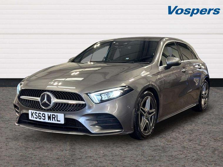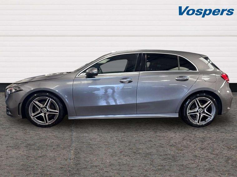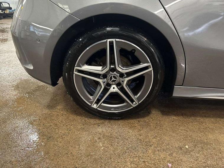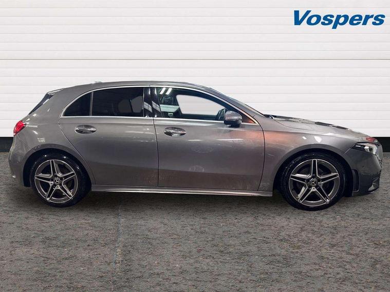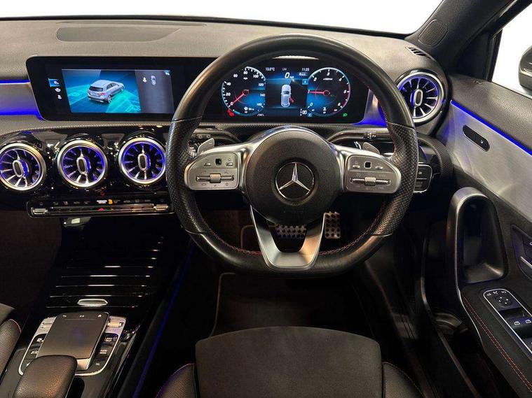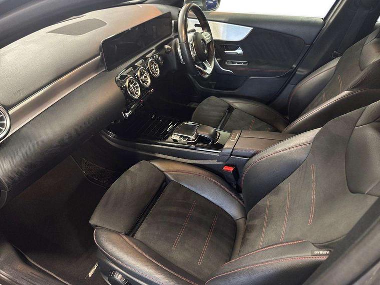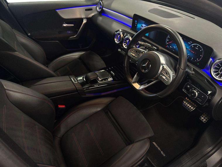 10.25" Digital instrument cluster display screen, 10.25" media display, 180 degree rear view camera with parking guidelines, Active lane keep assist, Active park assist with parktronic system including front and rear parking sensors, Attention assist, Brake pad wear indicator warning light, Cruise control + speed limiter, Direct steering, Dual bluetooth interfaces, DYNAMIC SELECT with a choice of driving modes (ECO, Comfort, Sport and Individual), ECO start/stop function, Fluid level warning indicator for fuel, oil, coolant and washer fluid, Hard-disk navigation, Hey Mercedes Voice activation, Lamp failure indicator, MBUX augmented reality for navigation, Mercedes me connect including emergency call system, accident recovery, breakdown management and maintenance, Outside temperature gauge, Owners manual in English, Pre-installation for car sharing, Pre-installation for Vehicle Monitoring, Pre-installation for Vehicle Setup, Preinstallation for Mercedes Benz link, Service indicator (ASSYST), Smartphone integration with Apple CarPlay and Android auto, Speed sensitive power steering, Trip computer, Wireless charging, Lowered comfort suspension, Rear axle torsion beam, 10 speakers, 2 USB ports (type C) in rear stowage compartment and one in front of center console, DAB Digital radio, MBUX multimedia system with DAB digital radio and touchpad including satellite navigation, Mercedes-Benz advanced sound system - 225W, 4 Electric Front and Rear windows, Adaptive brake lights, AMG bodystyling - Front apron with splitter in chrome, rear apron with chrome trim and chrome visible trim elements in tailpipe, Black weather strip, Body colour bumpers, Body colour door handles, Body colour side skirt, Body coloured door mirrors, Chrome beltline trim, Diamond radiator grille with chrome pins and silver louvre + chrome insert, Electric adjustable and heated door mirrors with integrated LED side indicators, Exhaust system - Twin visible tailpipes in polished stainless steel, Headlamp assist automatic headlamp activation, Heated glass rear windscreen + timer control, Illuminated front door sill panels with Mercedes-Benz lettering, LED high performance headlamps with integrated LED daytime running lights, LED tail lamp, LED third brake light, Privacy glass, Radio aerial, Rain sensing windscreen wipers with two sensitivity settings, Rear fog lights, Rear wiper, Window line trim strip in chrome, 3 Spoke flat bottom leather multi function steering wheel with perforated leather in grip area, 40:20:40 split folding rear seats, Artico man-made leather/Microfibre Dinamica upholstery with red contrast stitching, Auto Mercedes-Benz child seat recognition sensor, Black air vents with surround in silver chrome, Black roof lining, Brushed stainless steel sports pedals with rubber studs, Controller on centre console with chrome surround, Floor mats with stitched edging and AMG lettering, Front centre armrest with storage compartment, Front seat backs luggage nets, Front seat cushion length adjustment, Galvanished gear shift paddles on steering wheel, Heated front seats, Height/reach adjustable steering column, Interior lighting - 64 colour Ambient lighting, ISOFIX and top tether child seat fixing points in two outer rear seats, Manual height adjustable front seats, Rear armrest with 2 cupholders, Rear head restraints, Seat occupancy sensor for front passenger seat, Spectacles compartment for driver, Sports seats with integrated headrests, Stowage compartment in centre console with retractable cover, Sunvisors with illuminated vanity mirrors, Touchpad on center console, Twin front cupholders, Two zone thermotronic luxury automatic climate control, Light and sight pack - A Class, Mirror package - A Class, Seat comfort pack - A Class, 3 rear 3 point seatbelts, ABS with Brake Assist, Active bonnet, Active brake assist includes forward collision warning system with autonomous braking, Adaptive brake assist with hold function and hill start assist, Black seatbelts, Childproof locks manually operated for rear doors and electrically operated for rear power windows, Crash responsive emergency lighting, Driver and passenger head and side airbags, Drivers knee airbag, Dual stage driver/passenger airbags, Electronic parking brake, ESP curve dynamic assist, ESP with ASR, Front and rear seatbelt reminder, Front brake callipers with Mercedes Benz lettering, Tyre pressure monitoring system, Warning triangle and first aid kit, Window airbags, Alarm system/interior protection/immobiliser, Keyless entry lock/unlock, Keyless Go, Remote central locking and crash sensor with emergency opening function, Light aluminium with longitudinal grain interior trim, 18" AMG 5 twin spoke light alloy wheels in titanium grey with highsheen finish, Summer tyres, Tirefit sealant kit,