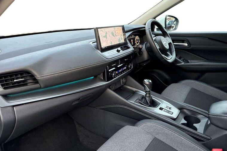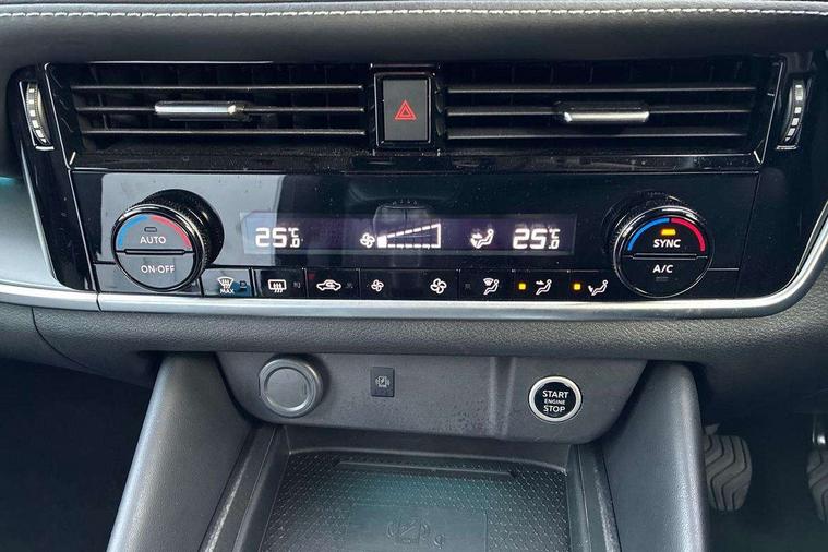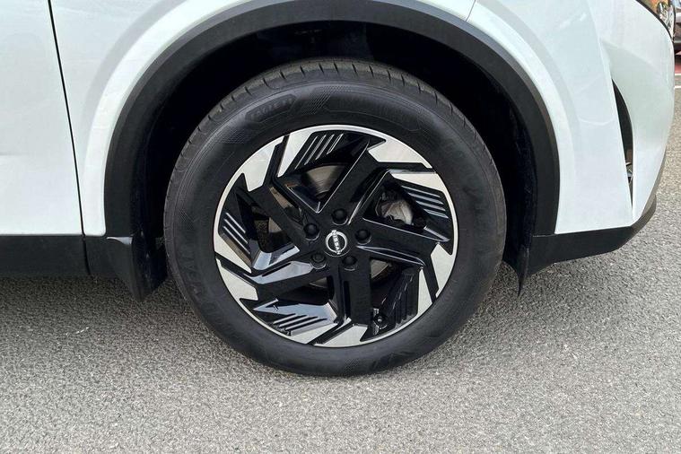 2 front USB-C ports, 2 rear USB-C ports, 360 degree Intelligent around view monitor with moving object detection, Blind spot intervention, Blind spot warning, Drive assist, Drive assist custom mode, Drive modes (sport, normal, eco), Driver drowsiness and attention warning, Electric speed sensitive power steering, Emergency and breakdown call, Emergency lane keep assist, Emergency Stop Signal (ESS), Engine start/stop button, Event data recorder, Front and rear parking sensors, Full Digital 12.3" TFT Digital Combimeter, Google virtual personal assistance, Idle stop/start system, In-car WIFI hotspot, Intelligent Cruise control (ICC), Intelligent forward collision warning, Intelligent speed assist, Lane departure warning system, Nissan connect 12.3 inch touchscreen infotainment system, Nissan connect navigation with google maps, Nissan connect services 2.0 (Google Automotive System), Outside temperature sensor, Rear cross traffic alert, Reversing detection, Wireless Apple CarPlay/Android Auto, Wireless charging pad, Limited slip differential, 6 speakers, AM/FM audio system with DAB, Bluetooth audio streaming, Auto rear wiper when reversing, Body colour mirror caps, Body coloured door handles, Bodyside mouldings, Chrome side window finisher, Electric auto folding door mirrors, Electrically adjustable and heated door mirrors with LED turn indicator, Follow me home headlights, High beam assist, Intelligent auto headlights, LED 3rd brake light, LED daytime running lights, LED Headlights, LED rear lights, One touch front and rear electric windows with remote opening and closing, One touch passenger window, Partially body coloured bumpers, Rear privacy glass, Rear roof spoiler, Rear side wing doors, Rear styling plate, Shark fin antenna, Splash free rain sensing wipers, Super UV and infrared cut glass, Three blink turn signal, 3 bench rear seats in 2nd row, 3 rear headrests, 60/40 split folding rear seat bench, Chrome interior door handles, Cloth upholstery, Dark headlining, Driver seat back pocket, Dual zone automatic climate control with pollen filter, Front door with bottle holders, Height adjustable front headrests, Leather shift knob, Luggage board system, Luggage space lighting, Multifunction steering wheel, Passenger seat back pocket, Rear door bottle holders, RGB ambient light (Full area coverage), Single front passenger seat, Smooth leather steering wheel, Tilt/telescopic adjustable steering wheel, Two rear isofix child seat anchorage points with top tether, 3x3 point rear seatbelt pretensioners + load limiters, Autonomous emergency braking, Child locks on rear doors, Curtain and front side, far side airbags, Driver and passenger airbags, Driver, passenger and 2nd row rear seat belt reminder, Electric handbrake with auto hold function, Front seatbelt pretensioners + load limiters, Height adjustable front seatbelts, Hill start assist, intelligent front emergency braking, Rear automatic braking, Tyre pressure monitoring system, Vehicle dynamic control, Engine immobiliser, Intelligent key with walk away lock and approach unlock functions, Remote central door locking with deadlocking, Thatcham alarm, 18" Diamond cut alloy wheels, Tyre puncture repair kit,