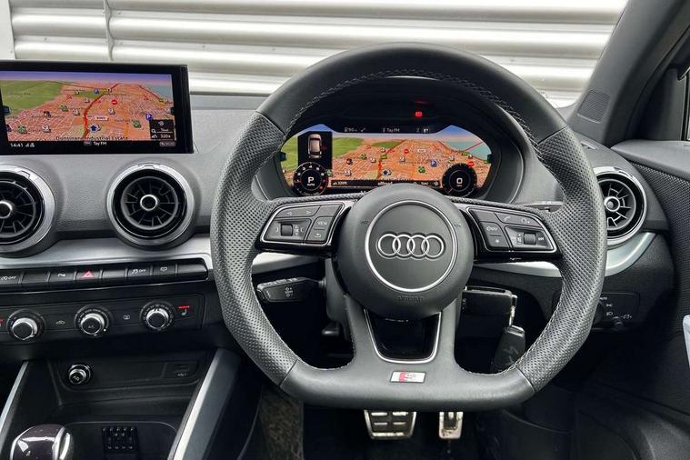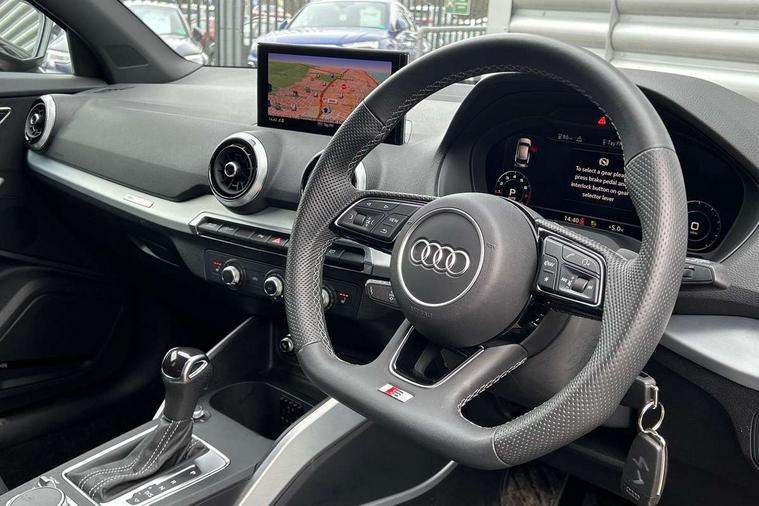 3D map display, Audi connect navigation and infotainment includes innovative services, Audi connect remote and control connects your vehicle to your smartphone, Audi drive select: S tronic - power steering assistance + engine + gearshift (modes: comfort, auto, dynamic, efficiency, individual), Audi smartphone interface - Apple carplay/Android Auto, USB connect, 2xSDXC card readers, voice control for navi, telephone, music and 3rd party apps, Audi virtual cockpit, Automatic start/stop system with recuperation, Cruise control, E-call, Jukebox hard drive memory for music (10GB), MMI navigation plus with 8.3" colour MMI screen and MMI touch, Natural voice recognition, Power operated tailgate, Progressive steering, Sport suspension, DAB Digital radio, Audi beam, Auto dimming rear view mirror, Black window trims, Bumper in full body colour paint finish, Electrically adjustable, folding, auto dimming and heated door mirrors with integrated LED side indicators, Front windscreen with grey tinted sunband, LED daytime running lights, LED headlights with dipped beam, high beam, position lights, indicators, LED rear lights, LED third brake light, Privacy glass - dark tinted rear and rear side windows from B-pillar backwards, Rear side wing doors, Rear wiper, Variable front intermittent wipers, Wheel arch trims in manhattan grey, 12V socket in front, 3 seat bench in 2nd row, 3 spoke flat bottomed multi-function leather sport steering wheel with gear shift paddles, 4-way electric lumbar support for front seats including manual seat height adjustment for both front seats, 60/40 split folding rear seat bench, Black carpets, Black cloth headlining, Front and rear head restraints, Front centre armrest, Front sport seats, Front/rear floor mats, Height/reach adjust steering wheel, Illuminated door sill trims with S logo, ISOFIX child seat mounting in front passenger and rear outer seats, Single front passenger seat, Stainless steel pedals, Black styling pack - Q2, Technology Pro pack - Q2, 3x3 point rear seatbelts, 6 airbags - Front, curtain and front side airbags, Electromechanical parking brake, Electronic stabilisation control including ABS, ASR and EDL, Front passenger airbag deactivation, Hill hold assist, Pre-sense front with pedestrian recognition, Seatbelt monitoring, Tyre pressure warning light with visual and acoustic warning, Warning triangle and first aid kit, Anti theft alarm, Anti theft wheel bolts, Electronically operated child locks, Remote central door locking, Aluminium interior element, Black dashboard, Matt brushed aluminium trim inlays, Tool kit,