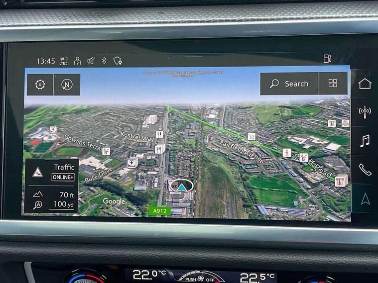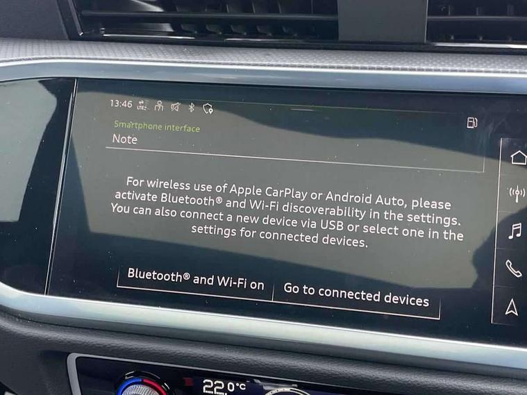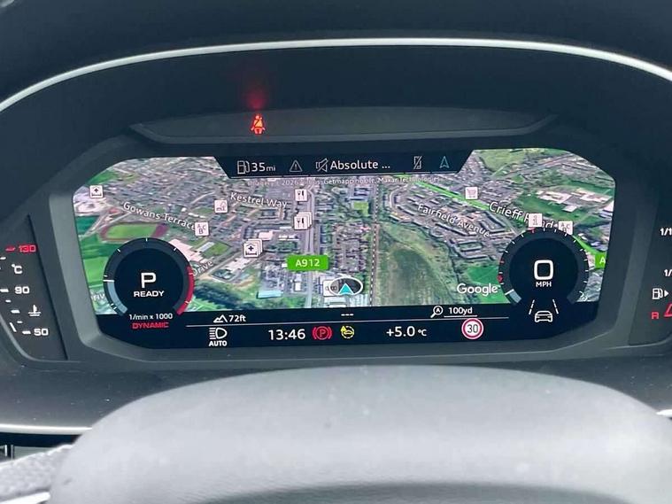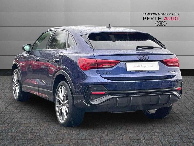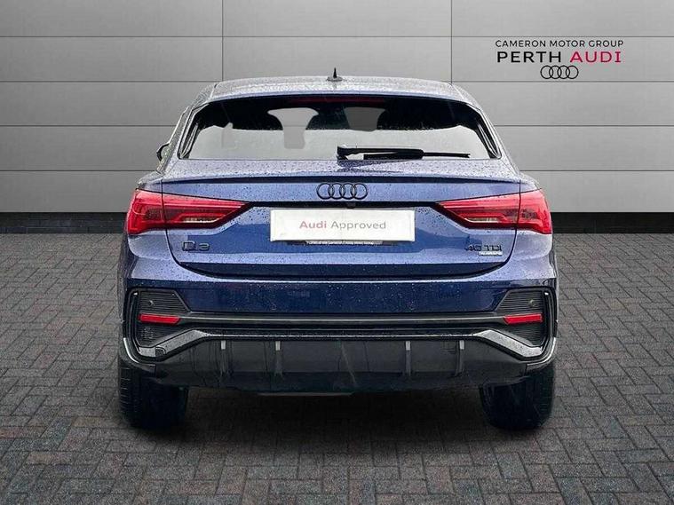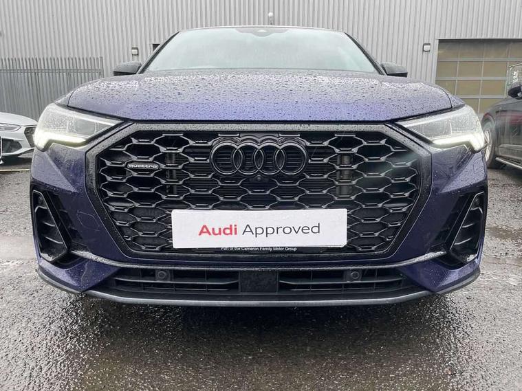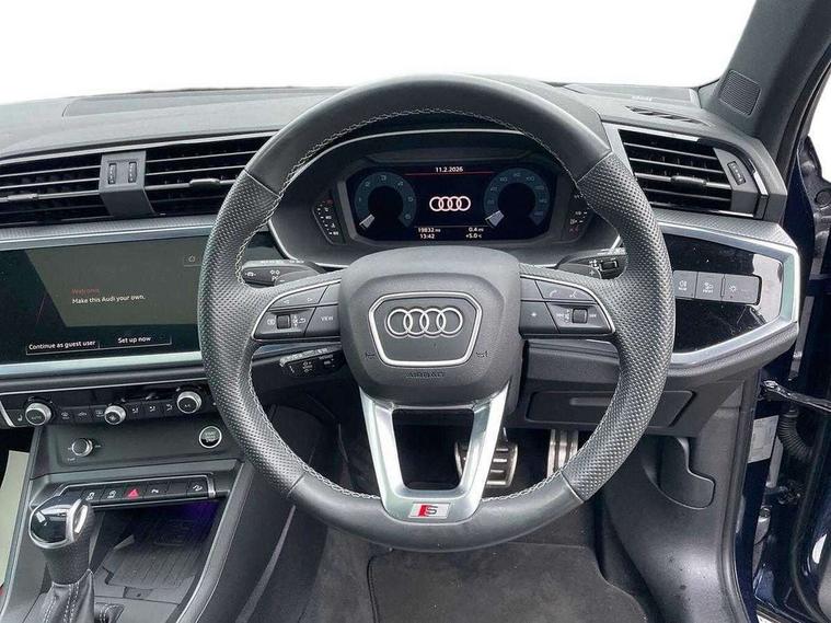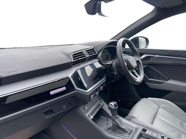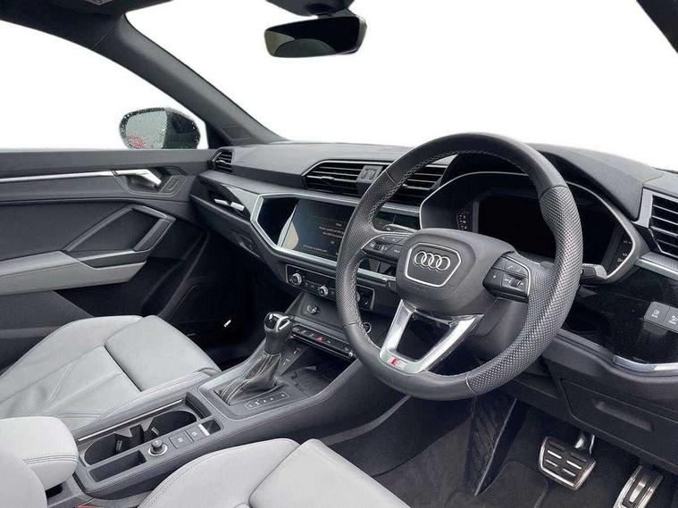 Audi drive select, Audi lane departure warning, Audi Virtual Cockpit - 10.25" display, Bluetooth interface, Camera based traffic sign recognition, Legal emergency call, MMI Navigation Plus with high resolution 10.1 inch touchscreen colour display, Power operated tailgate, Progressive steering, Service interval indicator, Smartphone interface includes wireless Apple carplay/Android Auto, Start stop system with recuperation, Voice control system with natural language interaction, Diesel particulate filter, Sports suspension, 2 USB-C ports with charge and data functions, 6 passive loudspeakers, DAB digital radio module, Acoustic windscreen, Auto dimming frameless rear view mirror, Diffuser grille in grained matt black, Diffuser trim in selenite silver, Electrically folding, adjustable and heated door mirrors with integrated LED side indicators and kerb view function for passenger side, Front and rear electric windows, Front fog lights, Front underbody protection in manhattan grey paint finish, High gloss black finish B and C pillars, LED Dynamic rear indicators, LED headlights with LED daytime running lights, LED rear lights, LED third brake light, Privacy glass dark tinted rear and rear-side windows (from B-pillar backwards), Rain and light sensors, Rear side wing doors, Rear underbody protection in matt black, Rear wiper, Variable front intermittent wipers, 12V socket in rear centre console, 3 seat bench in 2nd row, 40:20:40 folding with manual adjustment for 60:40 forwards/backwards position and backrest angle, Adjustable rear seat bench/backrest with centre armrest and cupholder, Black cloth headlining, Dual zone electronic climate control, Front and rear black floor mats with contrast stitching, Front and rear headrests, Front and rear roof module including reading lights, Front centre armrest, Glove compartment lighting, Height and reach adjustable steering wheel, Illuminated door sill trims with S logo, ISOFIX child seat mounting for front passenger with airbag deactivation and outer rear seat including top tether attachment point for outer rear seats, Luggage compartment light right in white, Luggage compartment sill protection in stainless steel, Manual front seats with height adjustment, Perforated leather gearknob, Single front passenger seat, Stainless steel pedals, Ambient lighting pack - Q3, Black styling pack - Q3, Non smoking pack - Q3, 3x3 point rear seatbelts, 6 airbags - Driver, front passenger, curtain and side windows, Audi pre-sense front with pedestrain and cyclist recognition, Electrically operated child locks on rear doors, Electromechanical parking brake, Electronic stabilisation control including ABS, ASR and EDL, Front seatbelt reminder, Hill descent control, Hill hold assist, Pre sense basic, Seatbelt monitoring, Tyre pressure warning, Warning triangle and first aid kit, Anti theft alarm, Anti theft wheel bolts, Immobiliser, Remote central locking, Aluminium look interior elements, Black dashboard, Detail dashboard around MMI touch colour display in glass look, black with surround in aluminium look, Leatherette door armrest, Piano black inlay, 19" 5 twin arm design diamond cut audi sport alloy wheels in matt grey look,