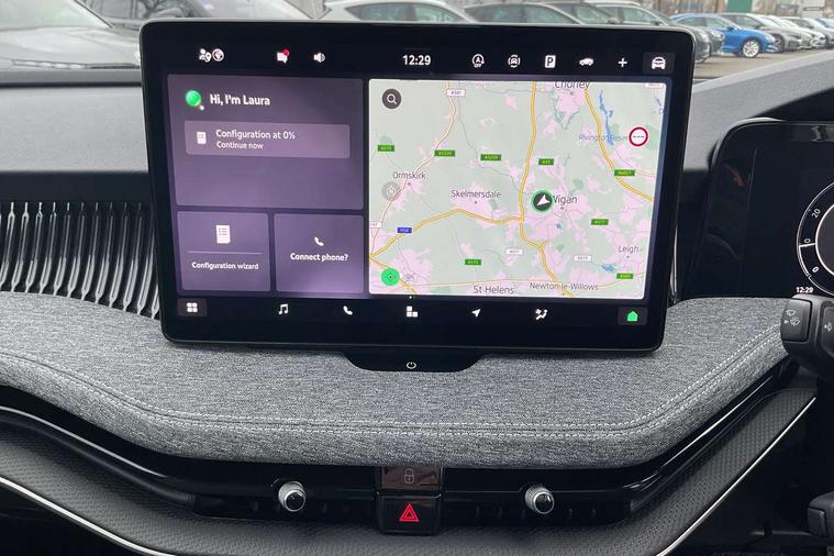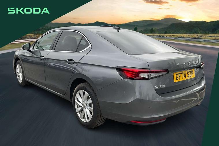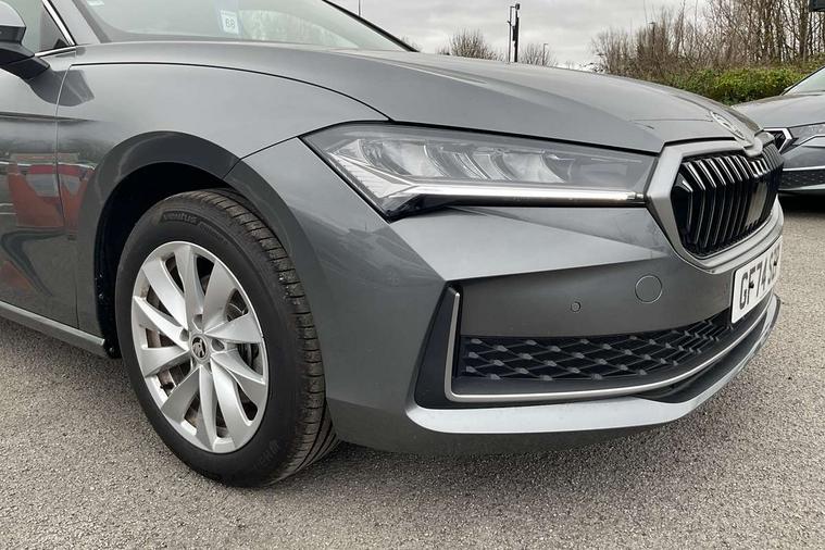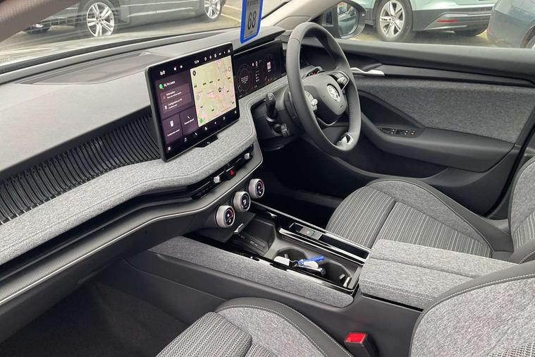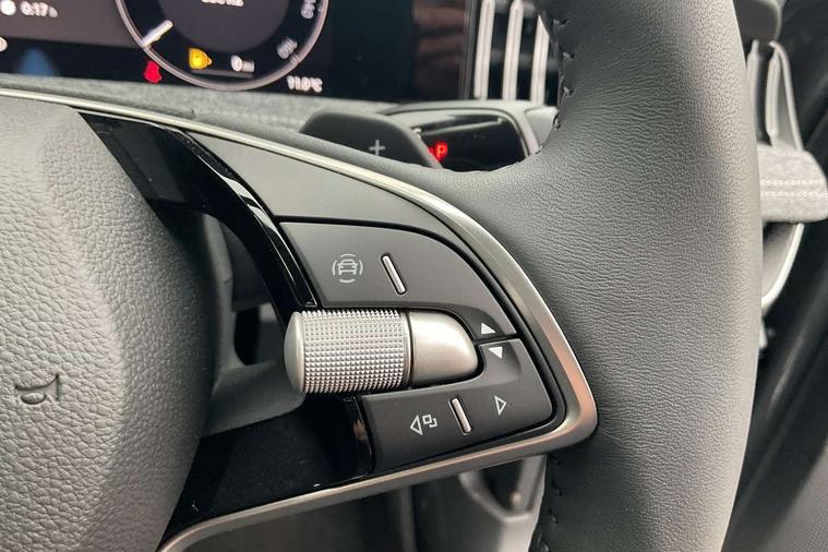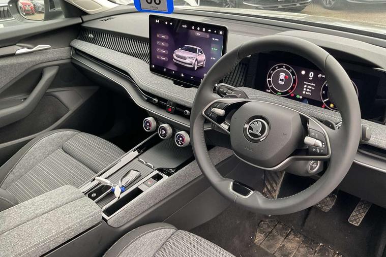 13" touchscreen display with satellite navigation, 4x USB-C ports (2x in front centre console and 2x in rear) (45W), Adaptive cruise control with speed assist, lane assist plus and traffic tram assist, Blind spot detection with door exit warning, Bluetooth system, CareConnect and Emergency Call, ChatGPT functionality, Driver fatigue sensor, Front assist with extended predictive pedestrian protection, Front cross traffic assist, PAS, Quick start all heating software functionality, Rear view camera with washer, Stop/start engine system, Traffic sign recognition, Turn assist with evasive assistance, Virtual Cockpit - 10.25" digital display, Voice control system, Wireless charging for one smartphone (15W) with cooling function, Wireless smartlink apple carplay, SmartLink+ android auto, 8 Speakers, DAB Digital radio, Display cleaner, FM radio connection, Web radio connection, Acoustic side windows and interior noise suppression, Backdrop lighting, Body colour door handles, Body coloured door mirrors, Chrome window surround, Electrically adjustable, heated, folding and driver side auto-dimming door mirrors with integrated indicators and logo projection, Frameless auto-dimming rear view mirror with USB-C, Front windscreen with heat-insulating glass, Ice scraper in fuel tank cap, LED 3rd brake light, Light assist with High beam control, Light assistant (coming/leaving home/tunnel light), Privacy glass, Rear fog light (x1), Rear side wing doors, Tow bar preparation, Unique dark chrome design logo on alloy wheels, Unique dark chrome grille surround with dark chrome rib elements, Windscreen wipers with rain sensor, 12V socket 1x centre console 1x boot, 12V socket and 2x cargo elements in boot, 2 spoke multifunction steering wheel with DSG paddles, 3 seat bench in 2nd row, 60:40 Split folding rear seats, Bottle holders in the front doors 1.5 litre bottle and rear 1.5 litre bottle, Cup holder in front with easy open mat, Front and rear footwell illumination, Front armrest with storage box, Front comfort seats, Heated front seats, Height adjustable driver and front passenger seats with 2-way electric tilt, 4-way pneumatic lumbar support, and extendable thigh support, Height adjustable front and rear head restraints, Height adjustable front passenger seat, Illuminated glovebox, Interior lights with control switches, Isofix child seat fittings in outer rear and front passenger seats, LED front and rear reading lights, Massage function for front seats, Single front passenger seat, Skoda lettering on steering wheel, Storage pockets on back of front seats, Sun visors with illuminated vanity mirrors, Ticket holder on A Pillar, Tri zone climate control, Umbrella in driver's door, 3 rear seatbelts, 8 Airbags - Front driver and passenger, front side driver and passenger, centre, curtain front and rear, drivers knee, Crew protect assist, Driver and passenger seatbelts with warning light, Electronic parking brake, ESC including ABS, EBV, MSR, ASR, EDS, HBA, DSR, RBS, CBC, multi-collision brake (MKB) and Auto hold, Hill hold assist, Power operated child lock in rear doors, Alarm with interior monitoring tilt sensor and back up horn, Backrest remote release from trunk, Electronic engine immobiliser, Keyless start/stop, Remote central locking with SAFE system, Third key, Decorative front door sills,