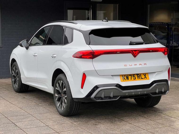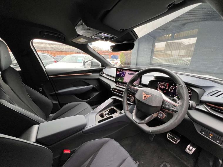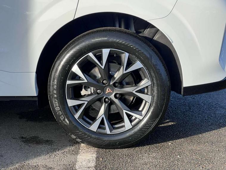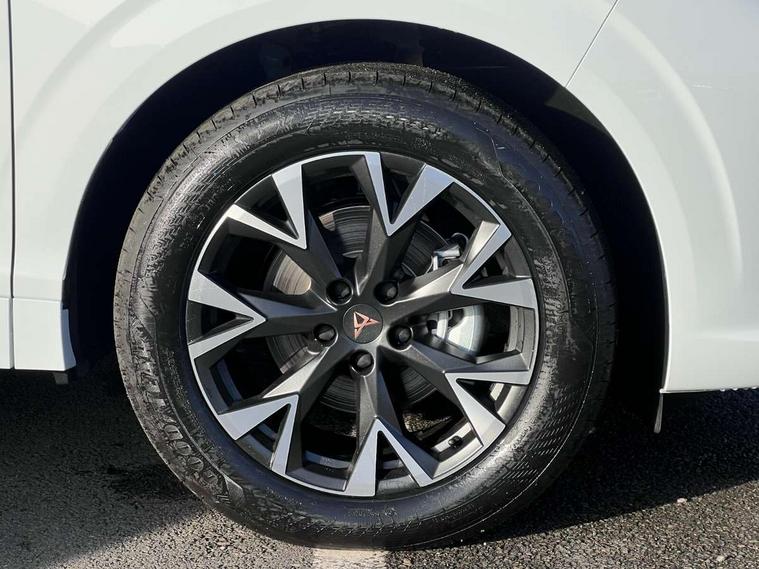 10.25" digital cockpit, Adaptive cruise control with follow-to-stop and speed limiter, Advanced driver alert system, Driving profile selection and conventional shock absorber, Dynamic road sign display, E-call, Electric tailgate with virtual pedal, Emergency steering support with turn assist, Four x USB Type C ports (2 in front and 2 in rear), Front and rear parking sensors, Front assist (Forward collision warning with automatic braking) with multifunction camera and front cross traffic assist, Lane assist, Media system with Nav - 12.9" touch display, voice control, full link phone (wired/wireless), DAB and Steering wheel mounted controls, Rear view camera, Speed sensitive power steering, Start/stop system with regenerative braking, Wireless phone charger, 8+1 Speakers, Auto dimming rear view mirror, Black roof rails, CUPRA 3D rear lights with ceremony & swiping indicator and illuminated logo, Dark tinted rear windows, Daytime running lights with automatic headlight control and Coming and Leaving home function, Dynamic headlight range control, Electric front/rear windows, Electrically adjustable, heated and folding door mirrors, Front fog lamps with cornering function, Heat reflecting windscreen, LED headlamps with signature "CUPRA LED", Rain sensing wipers, Rear fog light on one side, back up light on both sides, Rear side wing doors, Rear wash/wipe, Third brake light, Welcome lights (within exterior mirror housing), 3 seat bench in 2nd row, Black roof lining, Cloth upholstery, Cupra sports pedals, Driver and passenger seat with manual height and lumbar adjustment, Front and rear head restraints, Front and rear reading lights X 4, Front centre armrest, Heated leather wrapped multi function sports steering wheel with tiptronic, Illuminated interior front door sills, Interior ambient lighting, Isofix, Operating voltage 12V, Single front passenger seat, Sunvisors with illuminated mirror, Three zone climate control with control panel in rear, Unsplit rear seat bench, split folding backrest, with centre armrest, Variable luggage/load compartment floor, 3 point seatbelts on all rear seats, Brake control system - ESC and brake booster, Child proof door locks, Driver and front passenger airbags, Electronic parking brake, Front and rear disc brakes, Front interaction airbag, Front passenger airbag deactivation switch, Front side airbags with curtain airbags, Tyre pressure monitoring system, Visual and acoustic seat belt reminder, electric contact in front and rear, Anti theft alarm, Keyless locking and starting system with keyless access, Locking wheel bolts, Black decorative trims, Chrome interior detailing, 18" Atomic alloy wheels, Tool kit,