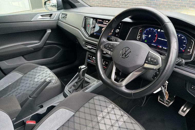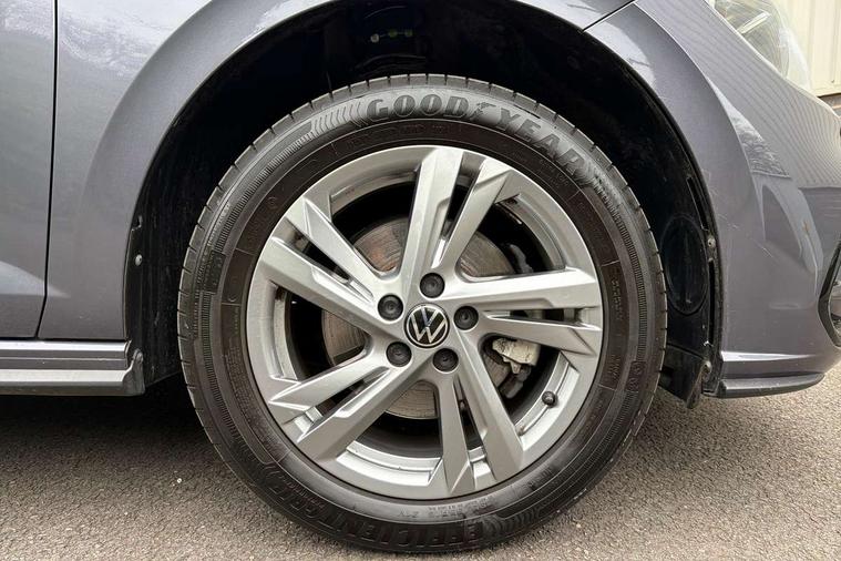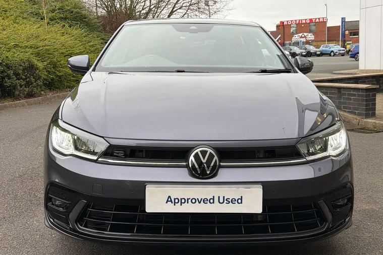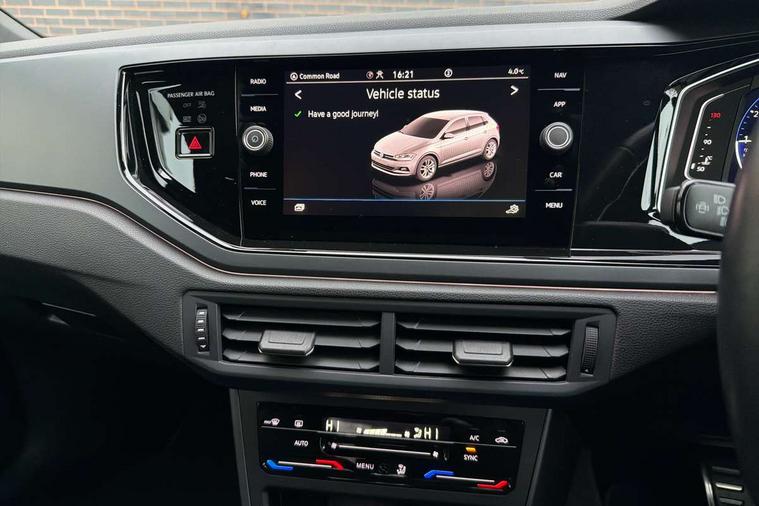 Adaptive cruise control with follow-to-stop and speed limiter, Advanced driver attention and drowsiness monitor, Bluetooth mobile phone interface, Digital Cockpit Pro with 10.25" Display, Dynamic road sign display, Emergency call service, Multifunction camera, Power assisted speed sensitive steering, Preparation for We connect and We connect plus, Speedo and rev counter, electronic odometer, trip, service interval display and fuel gauge, Standard rear axle, Travel Assist - Lane keeping system and traffic jam assist, Travel assist including emergency assist, Trip computer, Warning signal and warning light for front and rear seatbelts not fastened, Washer fluid level indicator, Wireless app connect, Front wheel drive, Rear shock absorpion, Start-stop system with battery regeneration (recuperation - energy recovery during braking), DAB Digital radio, Diversity antenna for FM reception, Front and rear 6 speakers, Body colour bumpers, Body colour door handles, Electric front windows, Front scuff plates with R-Line logo, Heat insulating glass windscreen, Power folding adjustable/heated exterior mirrors and front passenger exterior mirror lowering function, Rear electric windows, Rear fog light, Rear side wing doors, Rear windscreen washer and wiper with interval delay, Third brake light, 12V power socket in centre console, 2 USB-C ports in the front, 2 USB-C charging sockets on the center console in the rear, 3 rear head restraints, 60/40 split folding rear seat and rear seat bench not split, Air care climatronic air conditoning system with active combination filter and 2-zone temperature control, Black roof lining, Carpet mats, front and rear, Chrome plated radiator grille inserts, air vent surrounds and light switch surrounds, Door and side trim panel, Driver and front passenger seat height adjustment, Driver/passenger sunvisors with illuminated vanity mirrors, Front centre armrest, Front footwell illumination, Front seat backrest storage pockets, Front sports comfort seats, Handbrake lever handle in leather, Headliner in recycled material, Isofix child seat preparation easy-fit (for two outer rear seats, and front passenger seat) compatible with I-size, Karoso artvelours cloth upholstery, Leather trimmed gear knob, LED interior light with switch off delay and dimmer, 2 reading lights front and rear, Luggage compartment cover, Luggage compartment floor, Luggage compartment lighting, Lumbar adjustment for front seats, Single front passenger seat, Stainless steel pedals, Standard pedal cluster, Three spoke leather wrapped multifunction steering wheel with shifting paddles, Light and sight pack - Polo R-Line/Black Edition, 3 point height adj front seatbelts + pretensioners, 3x3 point rear seatbelts, ABS, Driver and front passenger airbag with front passenger airbag deactivation, Drivers and front passengers safety optimised head restraints, ESC (Electronic stability control) + EDL (Electronic Differntial lock) and ASR (Traction control), Extended and predictive pedestrian/ cyclist protection, Front curtain and side airbags with center airbag, Front/rear disc brakes, Hill hold control, Manual child lock in rear doors, Single tone horn, Tyre pressure loss indicator, Alarm with interior protection, Anti-theft alarm system with interior monitoring, backup horn, and towing protection, Anti-theft wheel bolts, Electronic engine immobiliser, Chrome applications on rotary light, mirror adjustment, window regulator switches, outlet with frame in black, Dark grey anodised matt decorative inserts in dash and front door panels, 16" Coventry alloy wheels, Low rolling resistance tyres,