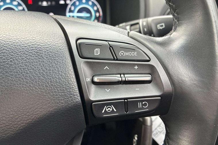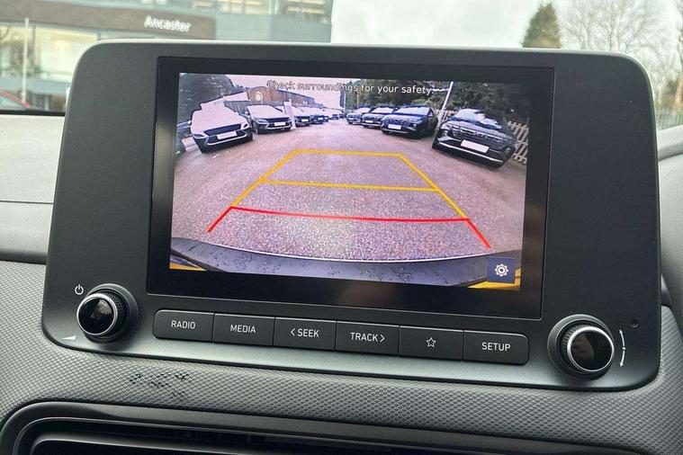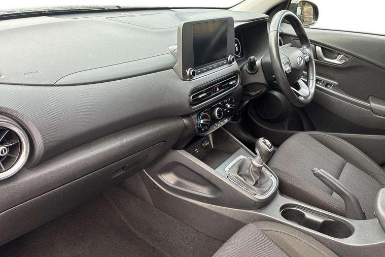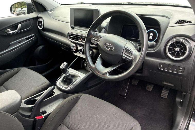 8" Touchscreen display audio + smart device integration, Bluetooth connectivity, Cruise control + speed limiter, Digital clock, Driver attention warning, Driver supervision instrument cluster with 10.25" LCD display, eCall emergency call system, Forward collision avoidance assist with pedestrian detection, Lane follow assist, Lane keep assist, Leading vehicle departure alert (LVDA), Parking system with rear camera and guidance system, PAS, Phone connection with apple carPlay and android auto, Rear parking sensor, Roadside assistance, Windscreen washer fluid sensor and warning indicator, 6 speakers (2 front, 2 tweeters, 2 rear), Front USB ports, RDS and Digital DAB, Steering wheel mounted audio/phone controls, Automatic headlights with dusk sensor, Body colour door mirrors and handles, Door mirror integrated indicators, Electric front/rear windows with drivers one touch/anti-trap, Electrically adjustable and heated door mirrors, Halogen headlights, Halogen rear lights, LED daytime running lights, Positioning Lights - LED, Rear spoiler with integrated LED brake light, Rear wiper, Roof rails, Tinted glass with front door glass and windscreen with shade band, 12V power outlet in front console, 60/40 split folding rear seat, Adjustable head restraints, Air conditioning, Centre interior light, Cloth upholstery, Door scuff plate, Driver's seat height adjustment, Driver/passenger sunvisors and illuminated vanity mirrors, Front interior light, Front passenger seat manual adjustments, Height/reach adjustable steering column, Isofix rear child seat fastenings, Leather wrapped steering wheel and gear knob, Luggage compartment lighting, Luggage hooks, Metal paint effect interior door handles, Parcel shelf, Rear centre console with air vents, Sunglasses holder, Vertical adjustment rear head restraints, Trailer wiring package - Kona, Airbags - front, front side and curtain airbags, Anti-lock brake system, Childproof rear door locks, Downhill brake control, EBD + Brake Assist, Electronic stability control, Fasten seatbelt reminder, Fixed 3 point for second row centre passenger seatbelt, Front seatbelt pretensioners, Height adjustable front seatbelts, Hill start assist control (HAC), Manual parking brake, Passenger airbag deactivate switch, Rear seat alert, Traction control, Tyre pressure monitoring system, Alarm/immobiliser, Deadlocks, Folding key, Locking wheel nuts, Remote central locking, 17" alloy wheels,