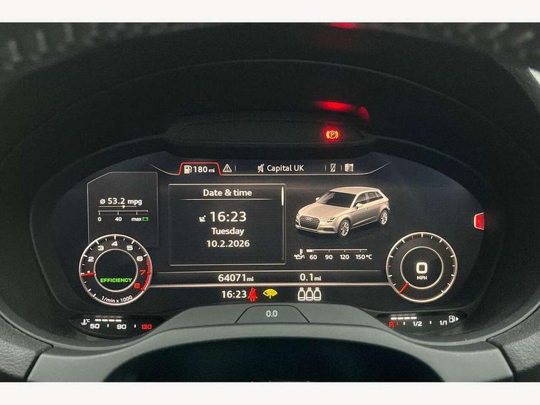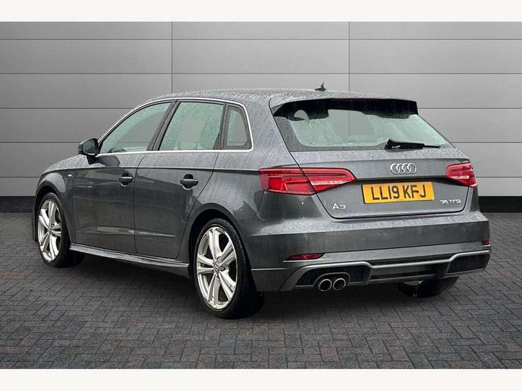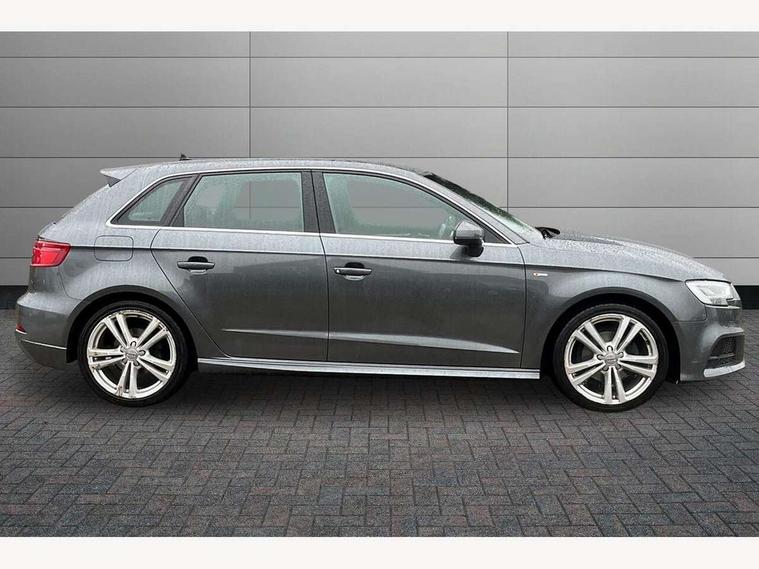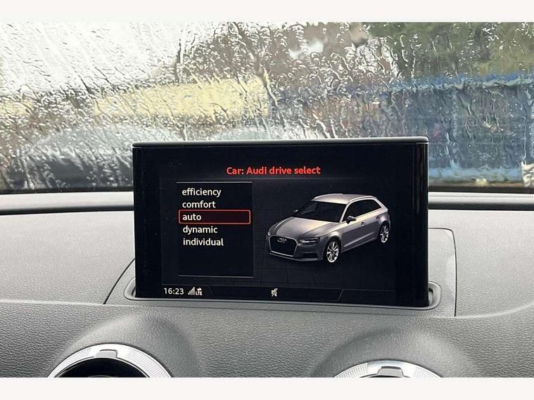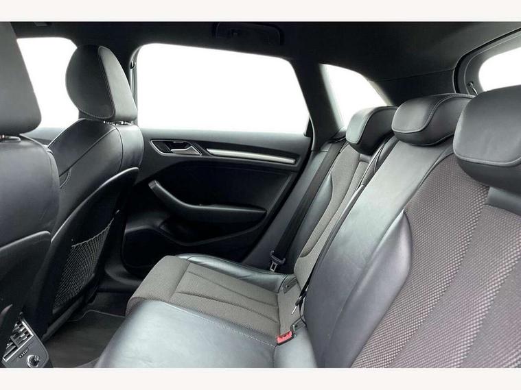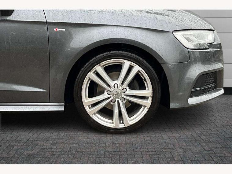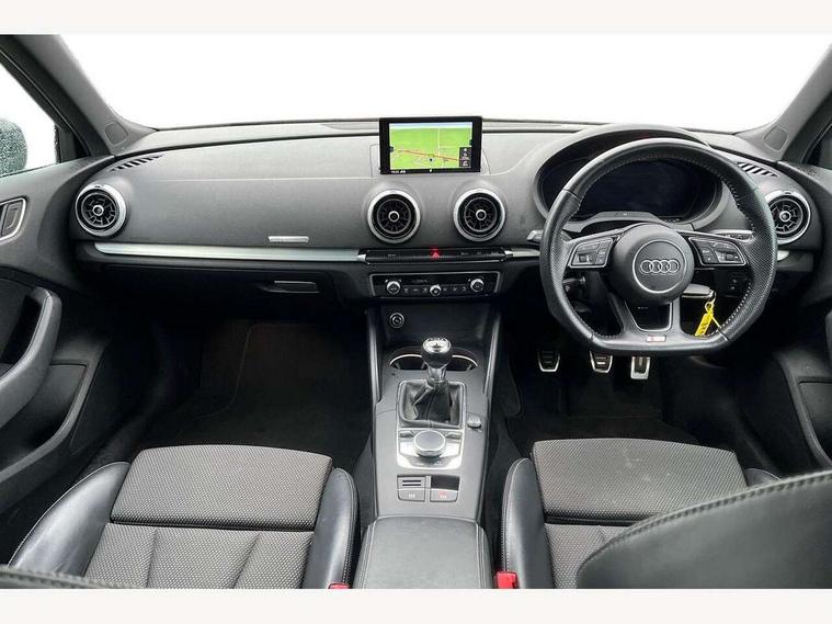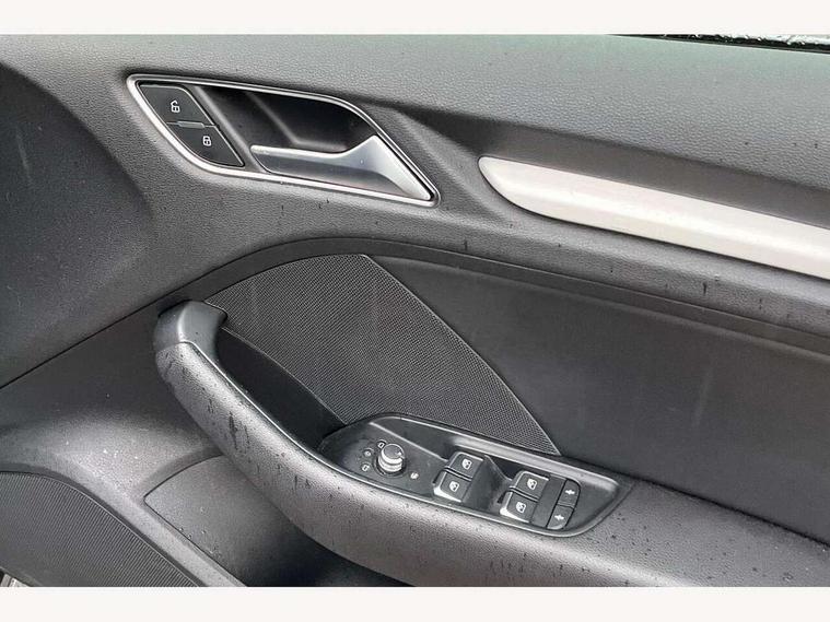 Audi connect, Audi drive select, Audi smartphone interface, Automatic start/stop system, Colour driver's information system display, Electro - mechanical power assisted steering, Mobile telephone preparation - bluetooth interface, SD card based satellite navigation system, Service interval indicator, Speed limit display, Voice control system, Voice recognition for navigation system, 2 USB interfaces and Aux-In jack, Audi music interface, CD player, DAB Digital radio, MMI radio plus with 7" colour MMI screen and MMI controller, Aluminium window trim, Auto dimming rear view mirror with light and rain sensors, Body colour door mirrors, Chrome exhaust tailpipes, Electric front windows, Electric rear windows, Electrically adjustable and heated door mirrors with integrated LED side indicators, Heated windscreen washer jets, LED daytime running lights, Matt black radiator grille, Rear wiper, S line badges on front wings, S Line body styling with front & rear bumpers and side skirts, radiator grille and rear diffuser insert, roof spoiler, Sport specific side air inlet grille and diffuser insert, 3 adjustable rear headrests, 3 spoke flat bottomed multi-function leather sport steering wheel, 4 lashing points to secure luggage, Adjustable front centre armrest, Black cloth headlining, Dual zone electronic climate control, Front and rear interior lights with delay, Front/rear floor mats, Glovebox light, Height and reach adjustable steering wheel, Illuminated door sill trims with S logo, Isofix child seat preparation for front passenger/outer rear seats inc passenger airbag deactivation, Stainless steel pedals, Storage compartments in doors side trims, centre console and under front drivers seat, LED interior light pack - A3/RS3, Non smoking pack - A3, Storage and luggage pack - A3/RS3, 3 point seatbelts on all seats, ABS/EBD, Active bonnet, Active front headrests, Airbags - front driver/passenger, front & rear side, curtain, drivers knee, ASR, EDL, Electromechanical parking brake, ESC - Electronic Stability Control + traction control, Front passenger airbag deactivation, Hill hold assist, Manual rear child locks, Multi-Collision braking, Seatbelt warning, Tyre pressure warning, Warning triangle and first aid kit, Anti theft alarm, Anti-theft wheel bolts, Remote control central locking, Thatcham category 1 alarm + immobiliser, Aluminium air vent surrounds, Aluminium trim elements, Matt brushed aluminium inlays, Tool kit, Tyre repair kit,