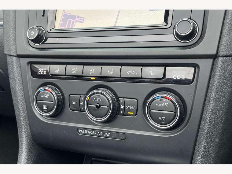 'Lights On' Reminder warning buzzer, Bluetooth Telephone preparation, Cruise control, Exterior temperature gauge, Flat tyre indicator, Multifunction computer - Highline, PAS - speed related, Rev counter, Trip and service interval display, Warning buzzer and light for front seatbelts unfastened, Diesel particulate filter, Lowered sports suspension, USB/iPod connection, Auto dimming rear view mirror, Automatic coming/leaving home lighting function, Body colour bumpers, Body colour door handles, Body colour door mirrors with integral indicators, Chrome trimmed front fog light surrounds, Cornering front fog lights, Daytime running lights, Dusk sensor + auto driving lights, Electric windows, Electrically adjustable and heated door mirrors, Fully automatic electrically operated hood, Green tinted heat insulating glass, Heated rear windscreen, High beam assist, Rain sensor, Range adjustable headlights, Twin exhaust tailpipe, Wind deflector, Windscreen wipers/ intermittent wipe + 4 position delay, 12V Accessory socket, 12V socket in luggage compartment, 2 rear head restraints, 3 spoke multi-function leather steering wheel, 50/50 split folding rear seat backrest, Air conditioning - 2 zone electronic climate control, Aluminium pedals, Chrome-plated electric mirror adjustment switch surround, Chrome-plated electric window button surround, Coat hooks, Courtesy light delay, Dust/pollen filter, Easy entry slide seats (access to rear seats), Front centre armrest with storage box and rear air vents, Front cupholders x 2, Front footwell illumination, Front reading lights, Front seat and rear pockets, Front sport seats with height/lumbar adjust, Height/reach adjust steering wheel, Isofix preparation for 2 rear child seats, Lockable, illuminated, cooled glovebox, Luggage compartment lighting, Storage compartments in doors, Storage tray + 12V socket in centre console, Vanity mirrors, White adjustable panel illumination, 2 rear seatbelts, 3 point height adj front seatbelts + pretensioners, ABS, Door open warning reflectors, Driver/Front Passenger airbags, Driver/Passenger whiplash optimised head restraints, Drivers knee airbag, ESP with EDL + ASR, Front passenger airbag deactivation, Front side airbags, Hill hold function, Hydraulic Brake Assist (HBA), Tyre pressure warning, Alarm with interior protection, Electronic engine immobiliser, Remote central locking with 2 remote folding keys, Chrome-plated light switch surround, Edge interior trim, 18" Charleston alloy wheels with anti-theft wheel bolts, Steel space saver spare wheel,