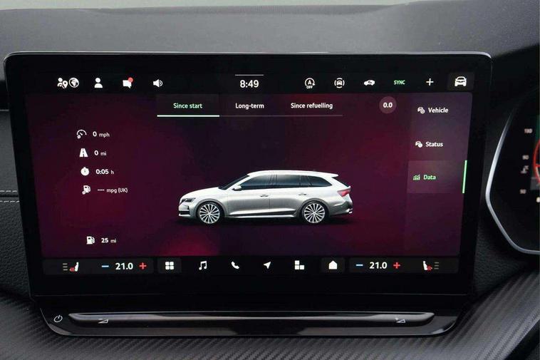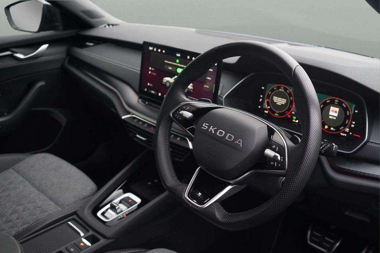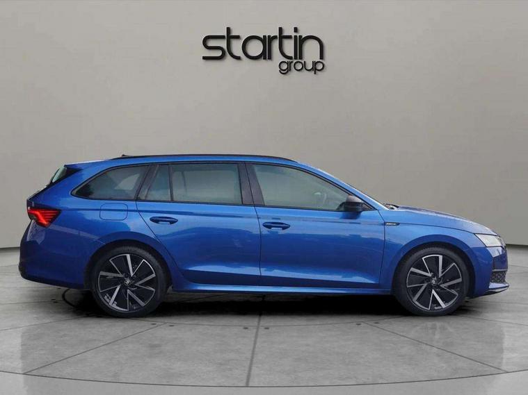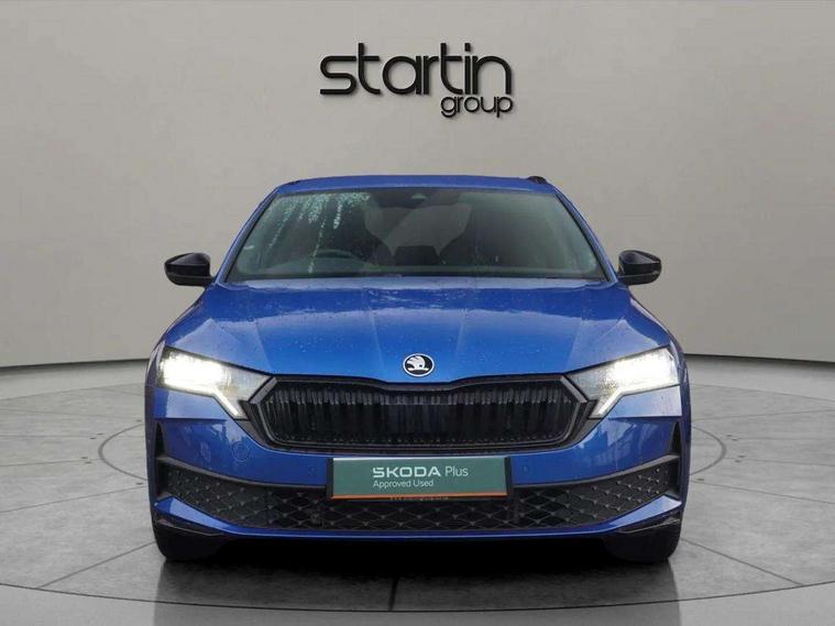 1x USB Typc C port in rear view mirror, 4x USB Type C ports - 2x in front centre console and 2x in rear (45W), Drive mode selection, Driver fatigue sensor, eCall emergency system, Front assist system, Progressive dynamic steering, Traffic sign recognition, Turn Assist, Virtual Cockpit - 10.25" digital display, Voice control system, Wireless charging (15W) with cooling function, Wireless SmartLink for Apple CarPlay and Android Auto, Sports suspension with 15mm lower, 13" touchscreen display with navigation, DAB Digital radio, Aero front windscreen wipers with intermittent function, Auto dimming rear view mirror, Body colour bumpers, Body colour door handles, Electric front and rear windows, Exterior gloss black sports styling including front grille, window surrounds, door mirrors and badging, Gloss black diffuser, Gloss black roof rails, Gloss black spoiler, Heated rear windscreen, High beam control, High level third brake light, Ice scraper in fuel cap, LED daytime running lights, Logo projection in front doors, Rain and light sensors, Rear fog light on one side, Rear privacy glass, Rear side wing doors, Rear window wiper, 12 volt socket in boot, 3 rear headrests, 3 seat bench in 2nd row, 4 foldable roof handles, Aluminium pedals, Front head restraints, Front sport seats, Heated front seats, Illuminated glovebox, Interior door handles in dark chrome, Jumbo Box storage, Luggage compartment lighting x2 lights, Mechanical rear seat release from boot, Single front passenger seat, Steering wheel in black leather with black stitching, Storage compartments in left and right of boot, Sun visors with mirrors, Sunglasses storage, Ticket holder, Umbrella in door panel, Unsplit rear bench seat, split folding backrest with centre armrest with cupholder, SportLine Design Selection pack - Octavia, 3x3 point rear seat belts, Alarm with interior monitoring, tilt sensor and back up horn, Curtain airbags and front side airbags, Driver and front passenger airbags, Drivers knee airbag, Electronic parking brake, ESC including ABS, EBV, MSR, ASR, EDS, HBA, DSR, Front central airbag, Hill hold assist, ISOFIX on front passenger seat and outer rear seats, Passenger airbag deactivate switch, Three point seat belts in front and rear, Two tone horn, Tyre pressure monitor, Visual and acoustic seat belt reminder, Warning reflectors in front door, Anti-theft wheel bolts, Keyless start/stop, Remote central locking, Gloss black air vent surrounds,