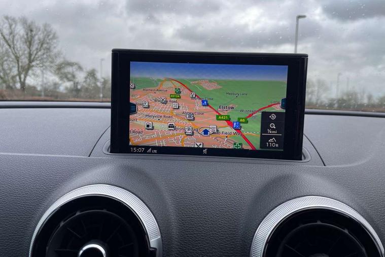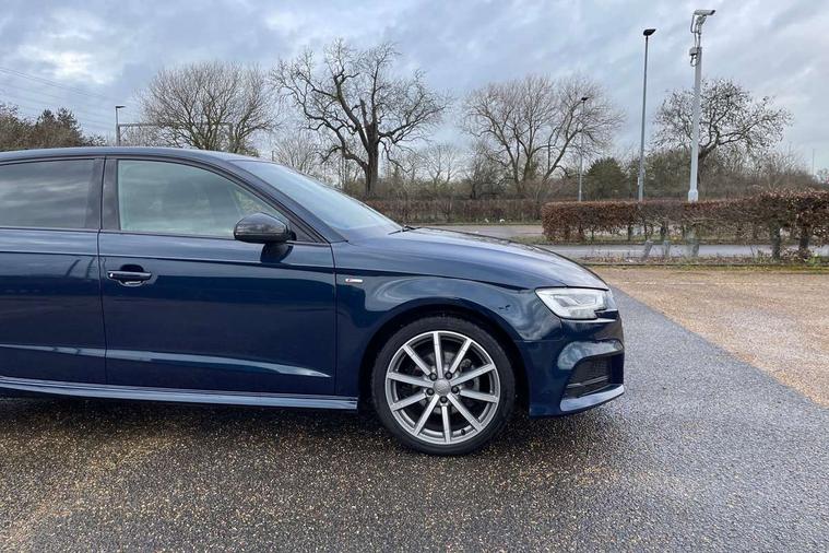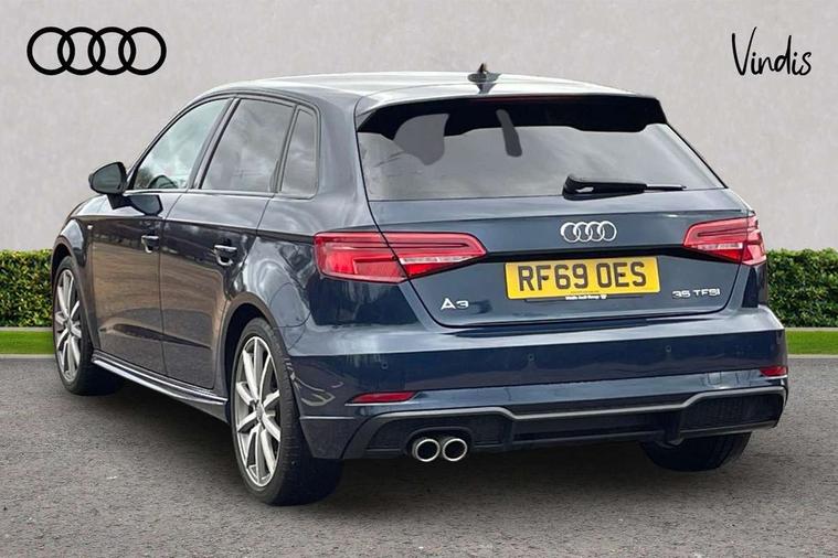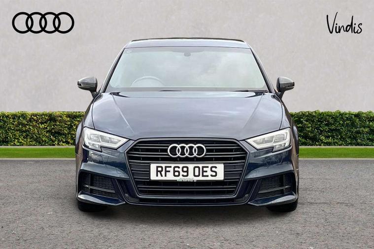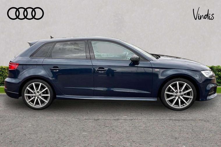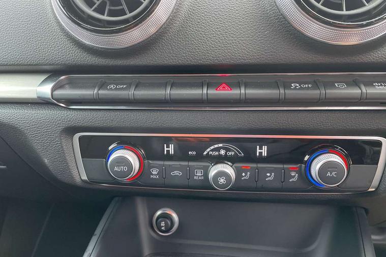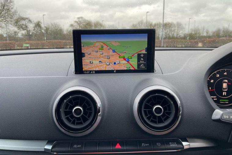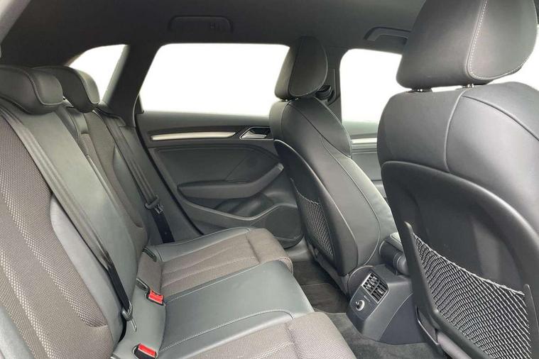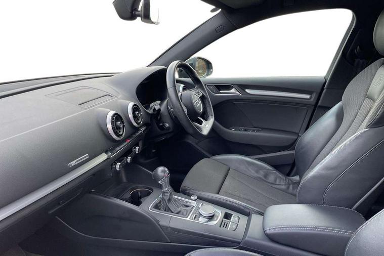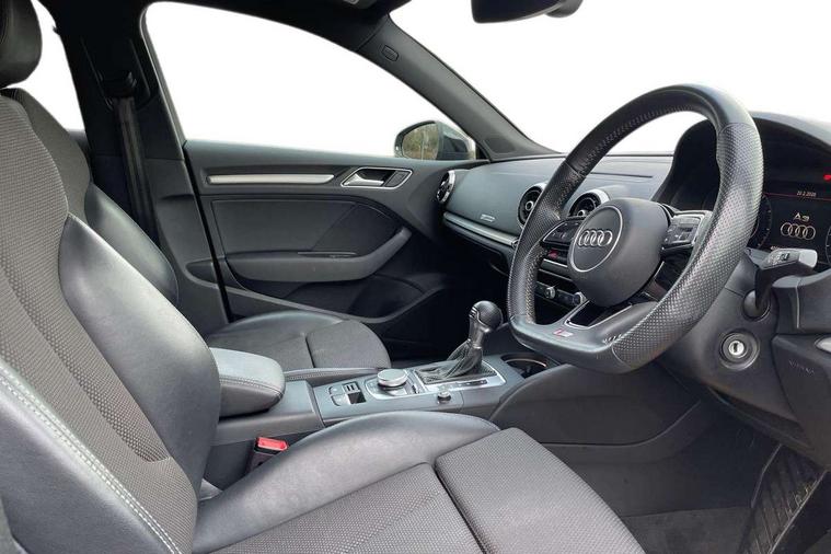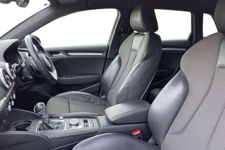 Aluminium air vent surrounds, Aluminium trim elements, Matt brushed aluminium inlays, Black styling pack - A3/S3, LED interior light pack - A3/RS3, Non smoking pack - A3, Storage and luggage pack - A3/RS3, 18" 10 spoke design alloy wheels in matt titanium look with diamond cut finish, Tyre repair kit, Anti theft alarm, Anti-theft wheel bolts, Remote control central locking, Thatcham category 1 alarm + immobiliser, 2 USB interfaces and Aux-In jack, Audi music interface, CD player, DAB Digital radio, MMI radio plus with 7" colour MMI screen and MMI controller, Online entertainment, 3 point seatbelts on all seats, ABS/EBD, Active bonnet, Active front headrests, Airbags - front driver/passenger, front & rear side, curtain, drivers knee, ASR, EDL, Electromechanical parking brake, ESC - Electronic Stability Control + traction control, Front passenger airbag deactivation, Hill hold assist, Manual rear child locks, Multi-Collision braking, Seatbelt warning, Tyre pressure warning, Warning triangle and first aid kit, Auto dimming interior rear view mirror, Body colour roof spoiler with aerodynamic inserts in high gloss black, Chrome exhaust tailpipes, Electric front windows, Electric rear windows, Electrically adjustable and heated door mirrors with integrated LED side indicators, Heated windscreen washer jets, LED daytime running lights, Light and rain sensors, Privacy glass - dark tinted rear and rear side windows from B-pillar backwards, Rear wiper, Sport specific side air inlet grille and diffuser insert, 3 adjustable rear headrests, 3 spoke leather multifunction sports steering wheel with paddle shift gear change controls, 60/40 split folding rear seat, Adjustable front centre armrest, Black cloth headlining, Dual zone electronic climate control, Front and rear interior lights with delay, Front/rear floor mats, Height and reach adjustable steering wheel, Illuminated door sill trims with S logo, Isofix child seat preparation for front passenger/outer rear seats inc passenger airbag deactivation including top tether, Lashing point in luggage compartment, Manual height adjustable front seats, Stainless steel pedals, Storage compartments in doors side trims, centre console and under front drivers seat, Tool kit, Audi drive select, Audi smartphone interface, Automatic start/stop system, Colour driver's information system display, Electro - mechanical power assisted steering, Mobile telephone preparation - bluetooth interface, SD card based MMI navigation, Service interval indicator, Speed limit display, Voice control system, Voice recognition for navigation system, Sports suspension,