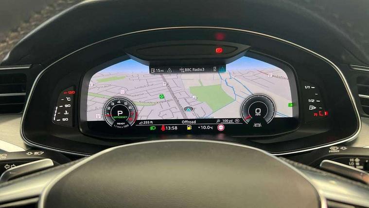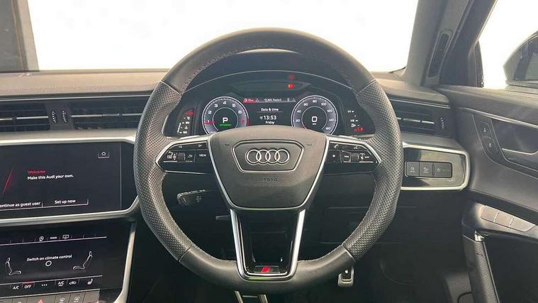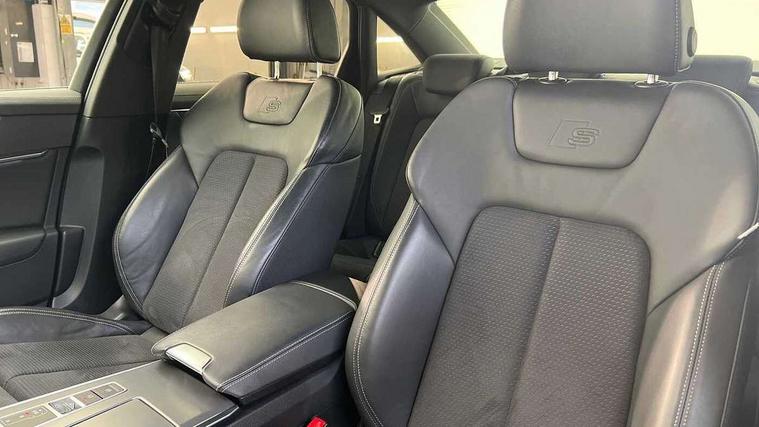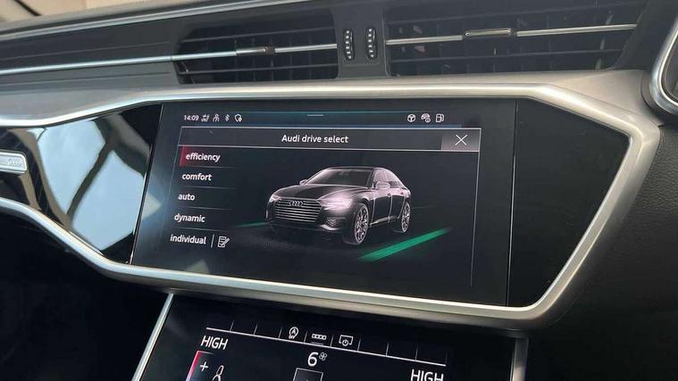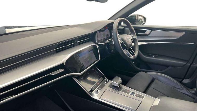 Audi connect safety and service (e-call), Audi connect with Amazon Alexa Integration, Audi drive select, Audi parking system plus - acoustic and visual park assist system for front and rear, Audi virtual cockpit, Automatic start/stop system with coasting functionality, Bluetooth interface, Camera based traffic sign recognition, Electric boot lid release, Lane departure warning system, MMI navigation plus with 10.1" and 8.6" touch screens, Progressive steering, Rear view camera, Service interval indicator, Smartphone interface includes wireless Apple carplay/Android Auto, Voice control system, Sports suspension, Audi front music interface, Audi sound system, Auxiliary input socket, DAB Digital radio, USB connection, Body coloured door mirrors, Electric front/rear windows, Electrically adjustable heated and folding + automatically dimming exterior mirrors with memory function, Frameless auto dimming interior rear view mirror, Front intermittent wipers, Heat insulating darkened glass in side and rear windows, Heat insulating glass in windshield, LED rear lights with dynamic indicators, LED signature front daytime running light, LED third brake light, Matrix LED headlights, Matt black rear diffuser with diffuser strip and tailpipes in chrome, Matt black side air intake grille with inlay in matt aluminium, Privacy glass, Radiator grille in anthracite black matt, single frame in chrome and horizontal struts in matt aluminium silver, Rain and light sensors, Rear boot, Rear side wing doors, 2 zone deluxe electronic climate control, 3 spoke high multi-function perforated leather steering wheel with contrast stitching and shift paddles, 40/20/40 split folding 3 rear seat bench in 3 parts with rear centre armrest, Audi phone box light, Black cloth headlining, Electrically adjustable front seats including seat height, fore/aft position, backrest angle and 4-way lumbar with memory for driver's seat, Front and rear floor mats, Front centre armrest, Front head restraints, Heated front seats, Height/reach adjust steering wheel, Illuminated door sill trims with S logo, Illuminated sun visors with vanity mirrors, Leather gear knob, Rear headrests, Single front passenger seat, Stainless steel pedals and foot rest, Tool kit and car jack, LED Interior Ambient Lighting Pack - A6, Non smoking pack - A6, S line exterior style pack - A6, 3 point seatbelts on all seats, Airbags - Front side, front and rear including head, Audi pre-sense front, EBD - Electronic brakeforce distribution, Electromechanical parking brake, Electronic Stability Control (ESC) including ABS, ASR and EDL, Extended pedestrian protection measures, ISOFIX child seat mounting for front passenger seat and ISOFIX child seat mounting with Top Tether for outer rear seats, Manual child proof rear door locks, Seatbelt monitoring, Tyre pressure warning light, Warning triangle and first aid kit, Anti theft alarm with tow away protection, Anti-theft wheel bolts and wheel loosening detection, Immobiliser, Keyless Go, Remote central locking, Matt brushed aluminium inlays,